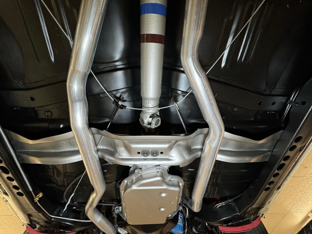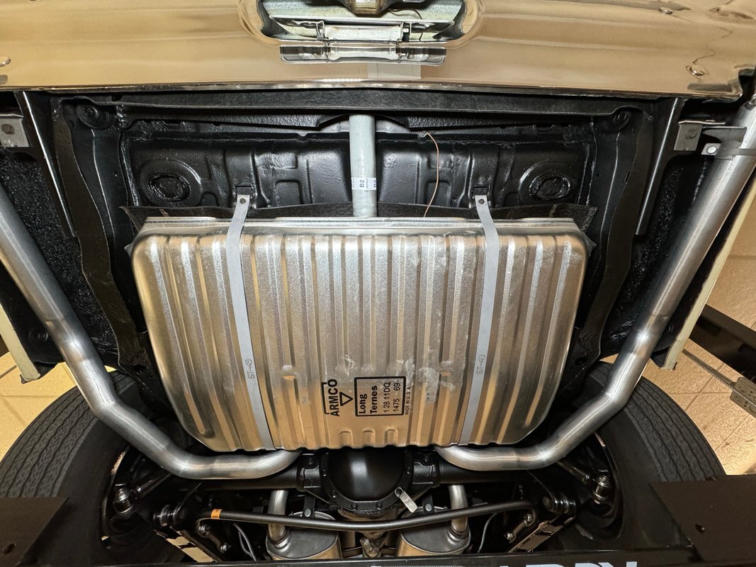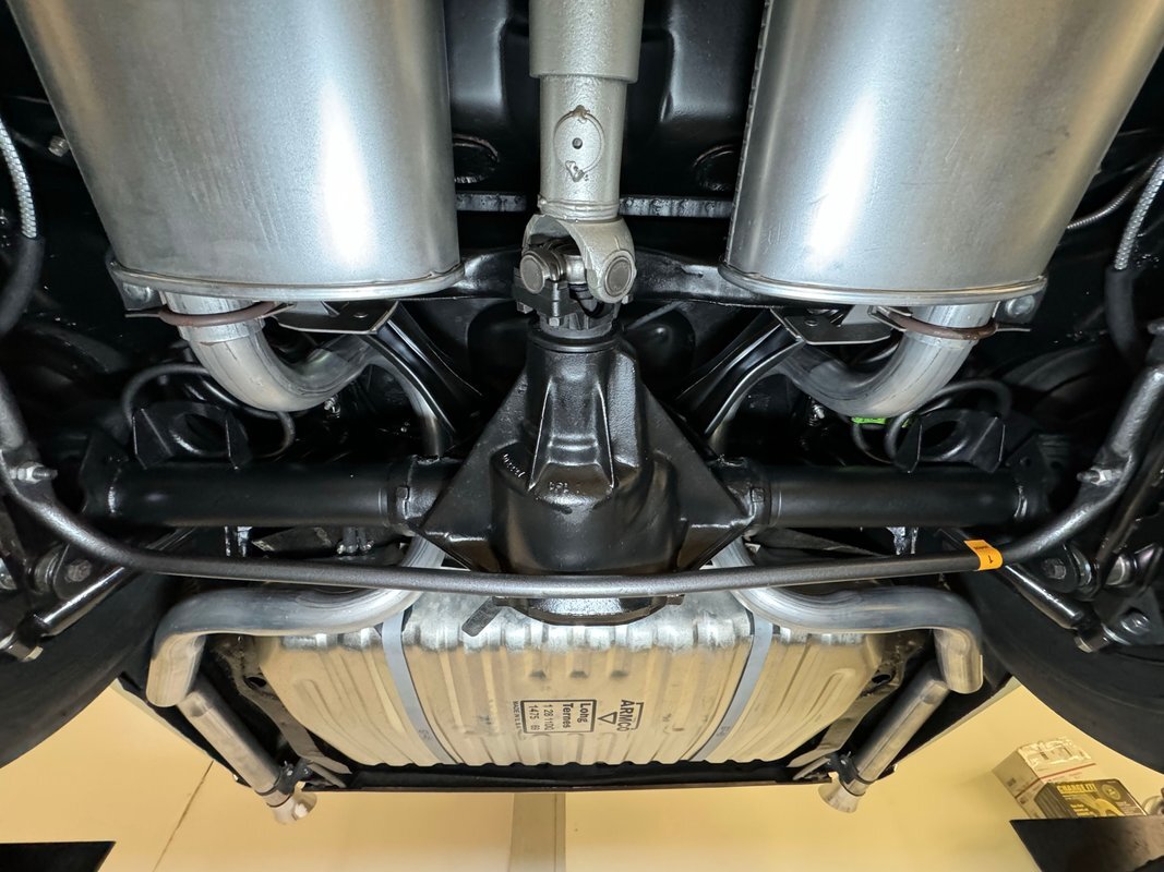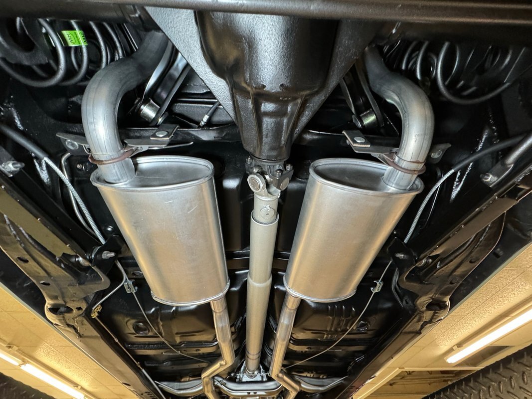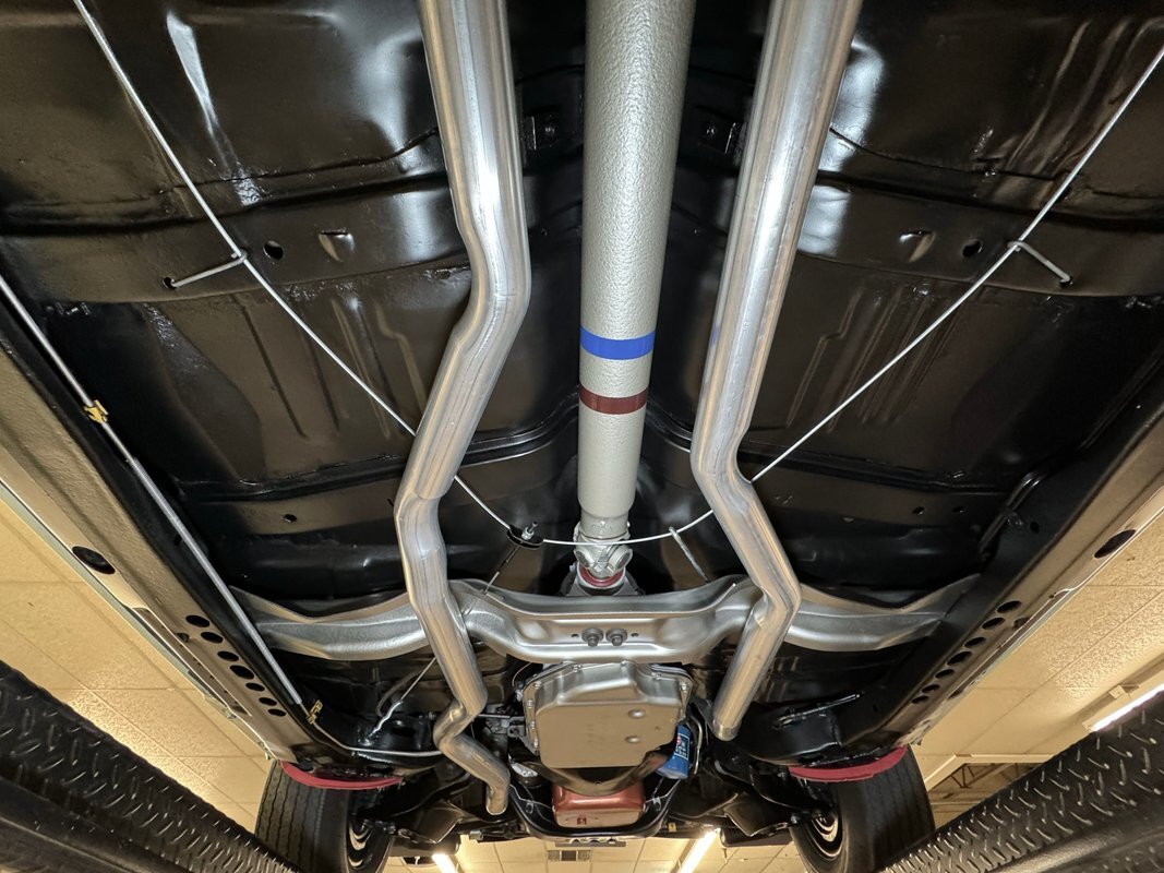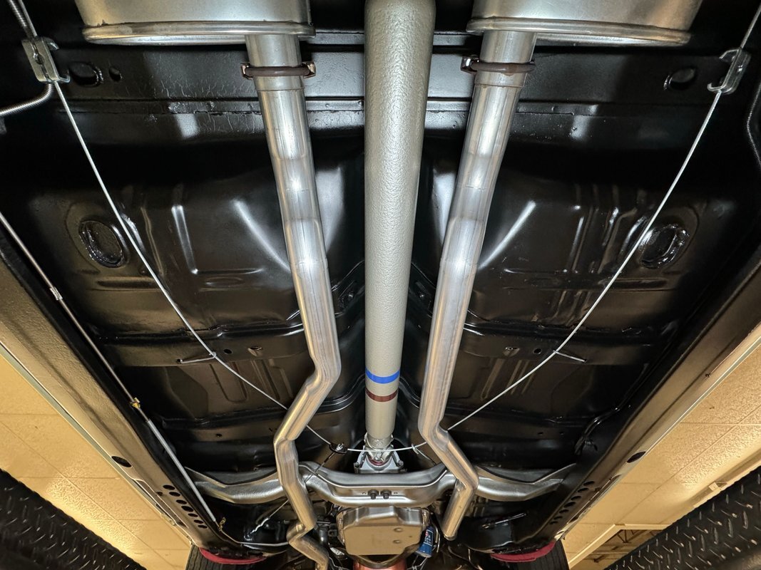 This ranks as one of the cleanest undersides we've had the honor to review and photograph and frankly mirrors should be added at any show to display the beauty underneath. Dual exhaust travels from the engine, meets up with stock style mufflers, and then exits via characteristic fluted exhaust tips. FE2 independent suspension with coil springs is in the front and a 4 link with coil springs is out back.