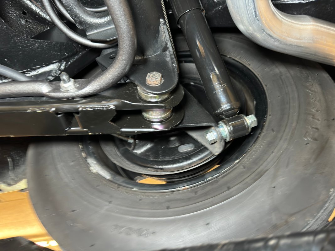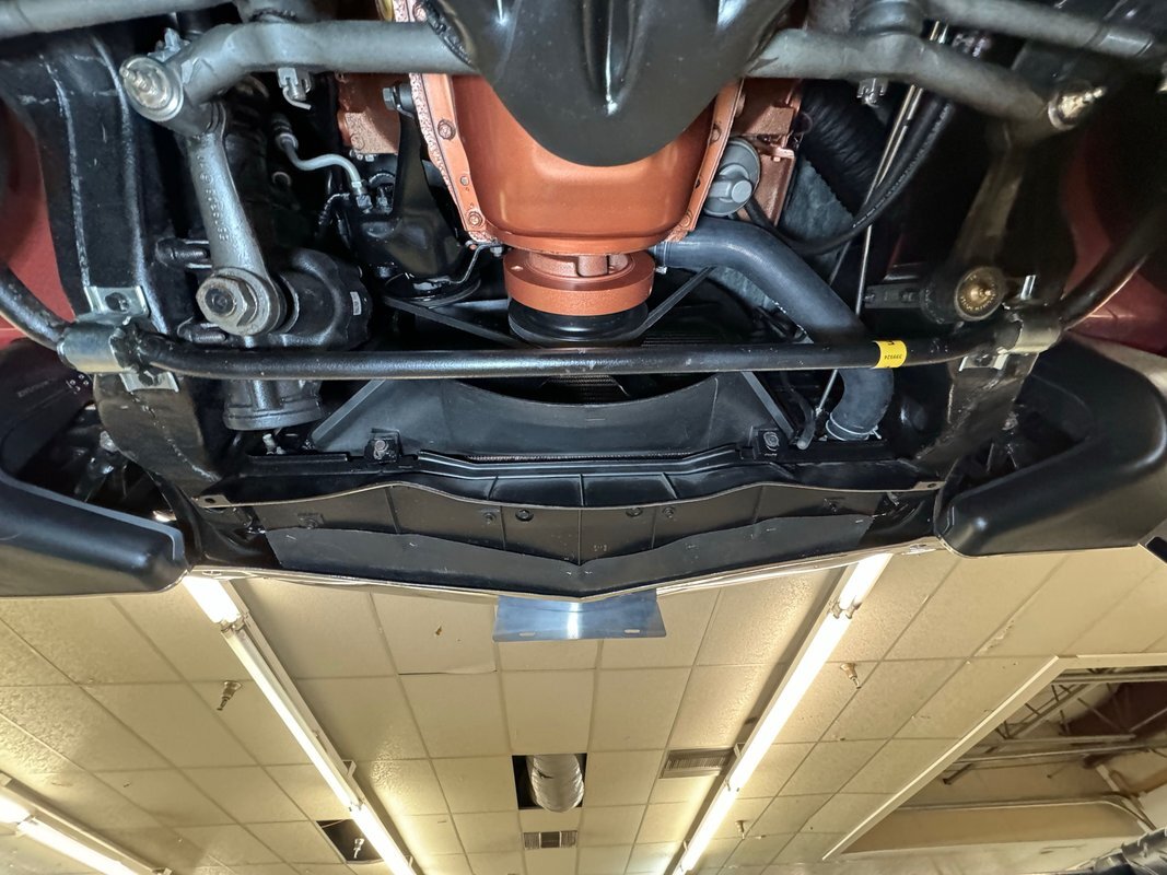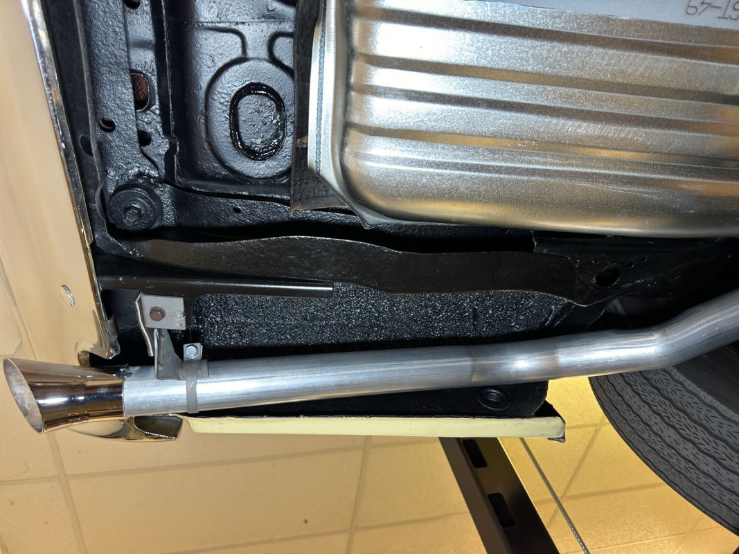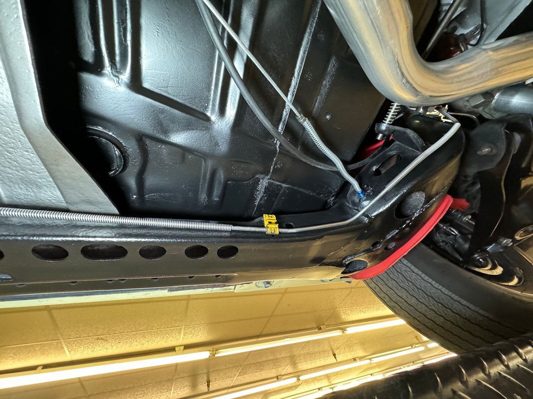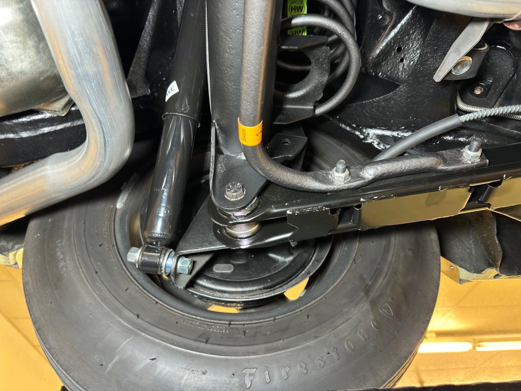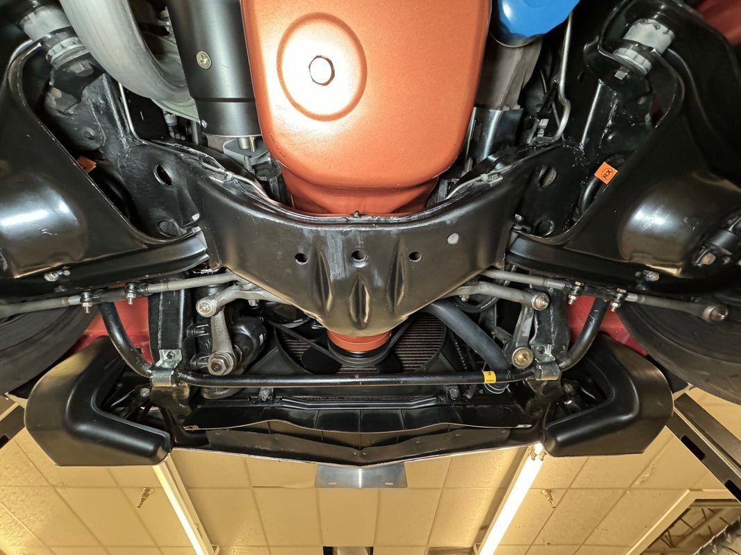 This ranks as one of the cleanest undersides we've had the honor to review and photograph and frankly mirrors should be added at any show to display the beauty underneath. Dual exhaust travels from the engine, meets up with stock style mufflers, and then exits via characteristic fluted exhaust tips. FE2 independent suspension with coil springs is in the front and a 4 link with coil springs is out back.