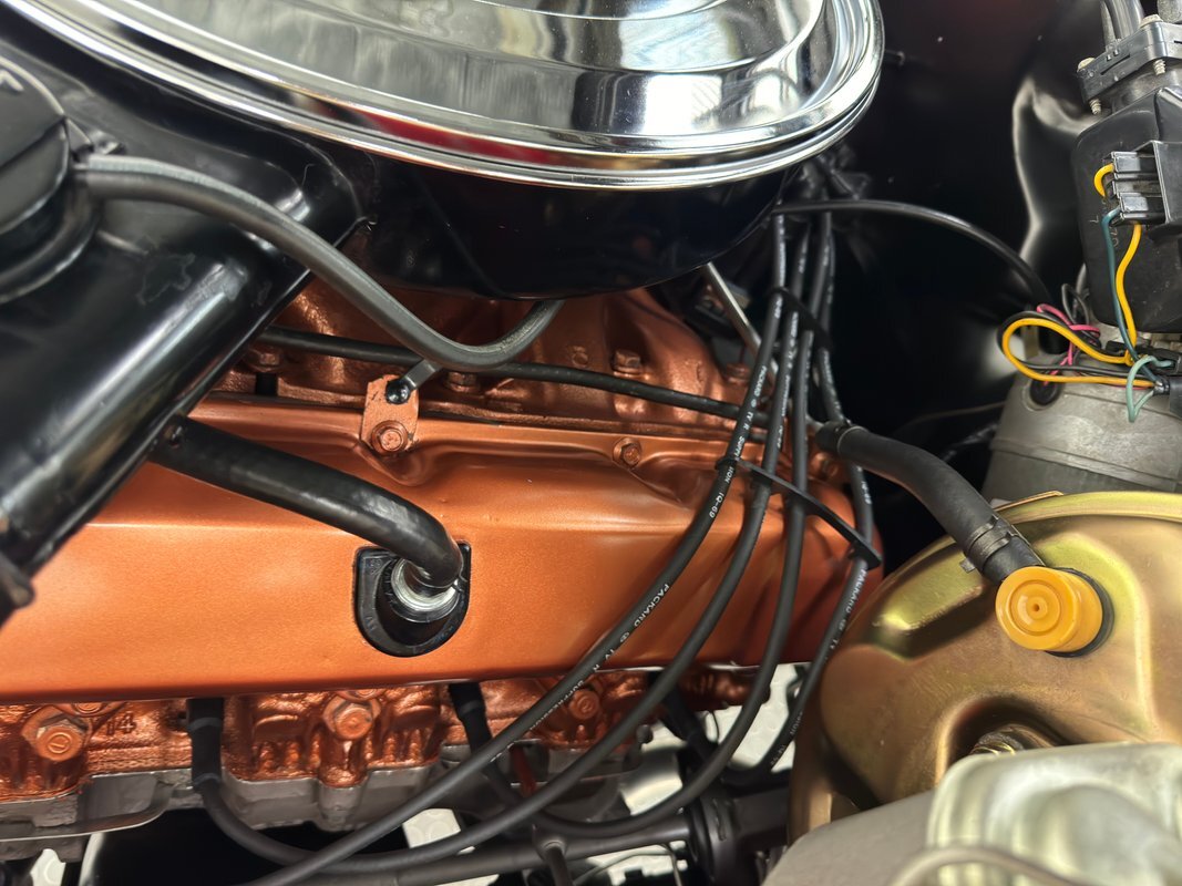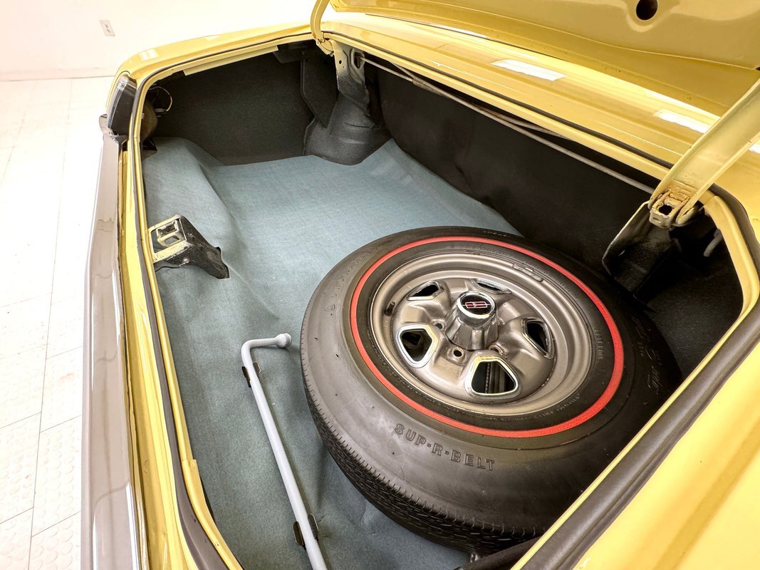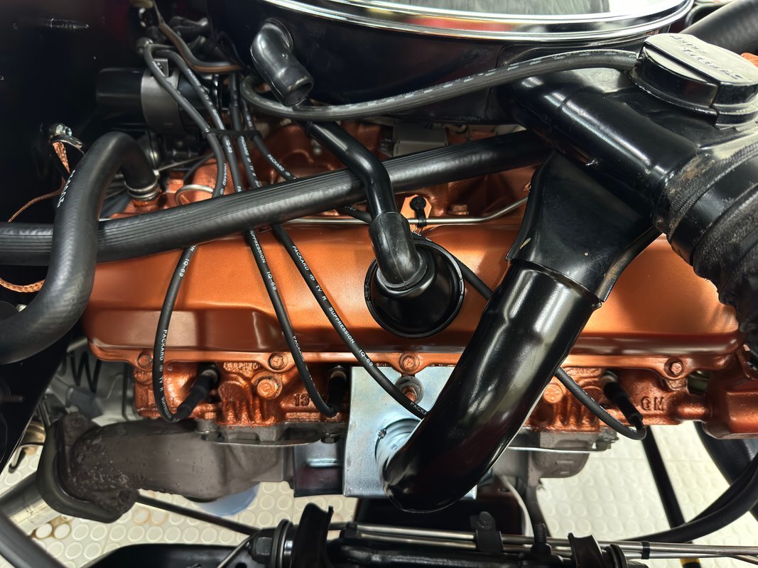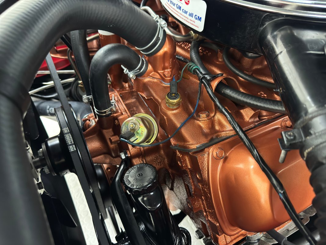 A rebuilt dealership service replacement 400ci V8 is sitting between the red W-30 inner fender liners. It is topped with correct D-code cylinder heads and is fed by a correct 4-barrel Quadrajet carburetor to produce 360hp. Bolted to the back is a numbers matching TH400 automatic transmission that is retaining its OW stamped tag. A TO stamped 12 bolt rear axle turns the rear tires via a 3.91 AntiSpin gear set. The engine bay is spotless and presents with the correct "HD" water pump, correct "KA" water pump pulley, NOS fuel pump and NOS oil sending unit. We also see the correct W-30 distributor, and correct W-30 date coded alternator. Power brakes have been added to the car on the correct and restored master cylinder and drum brakes are equipped on all 4 corners.