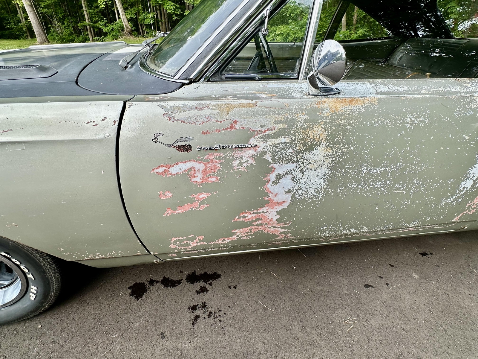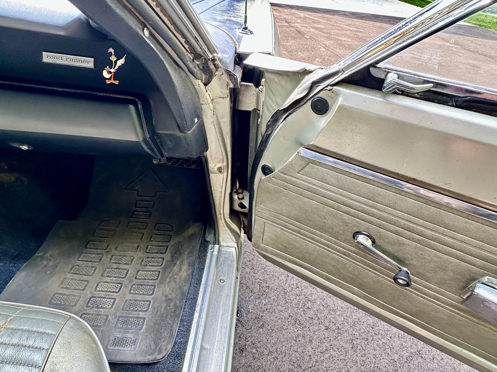 - **Interior**: Original with 4spd on the floor, AM Radio, A87 Road Runner Decor Package, and rear armrest