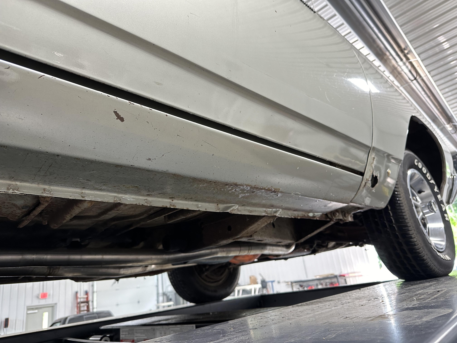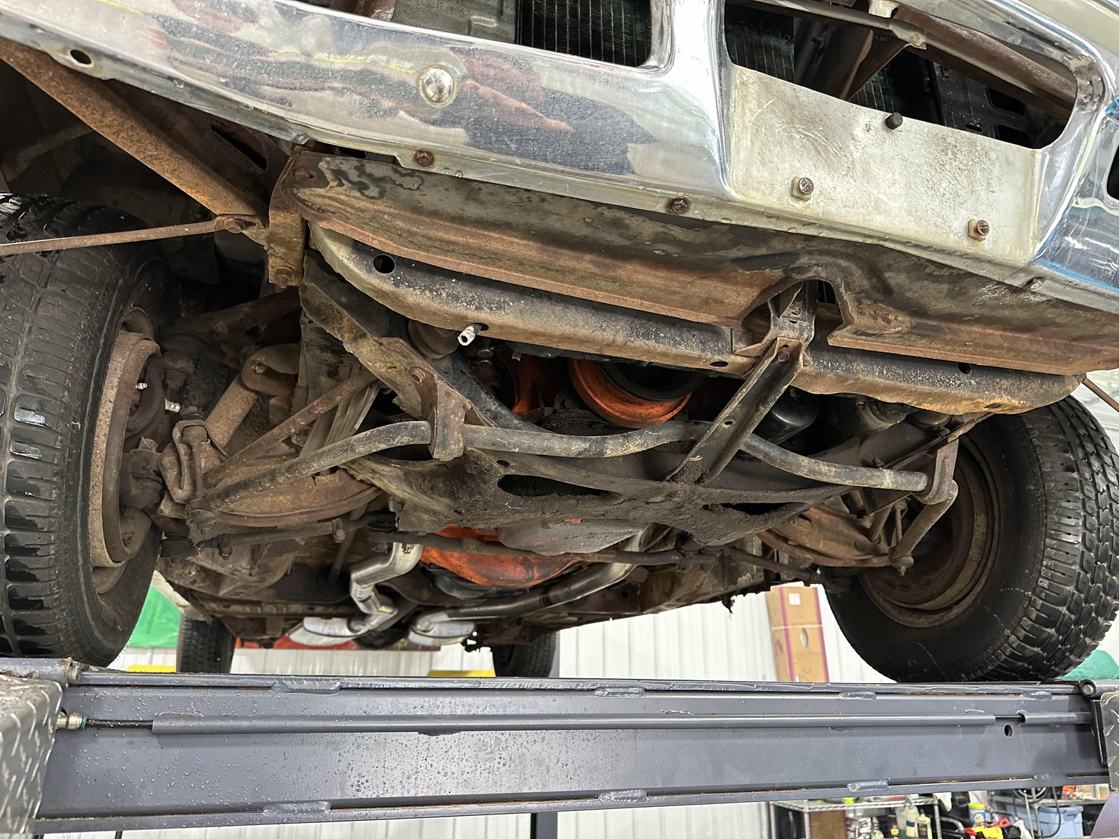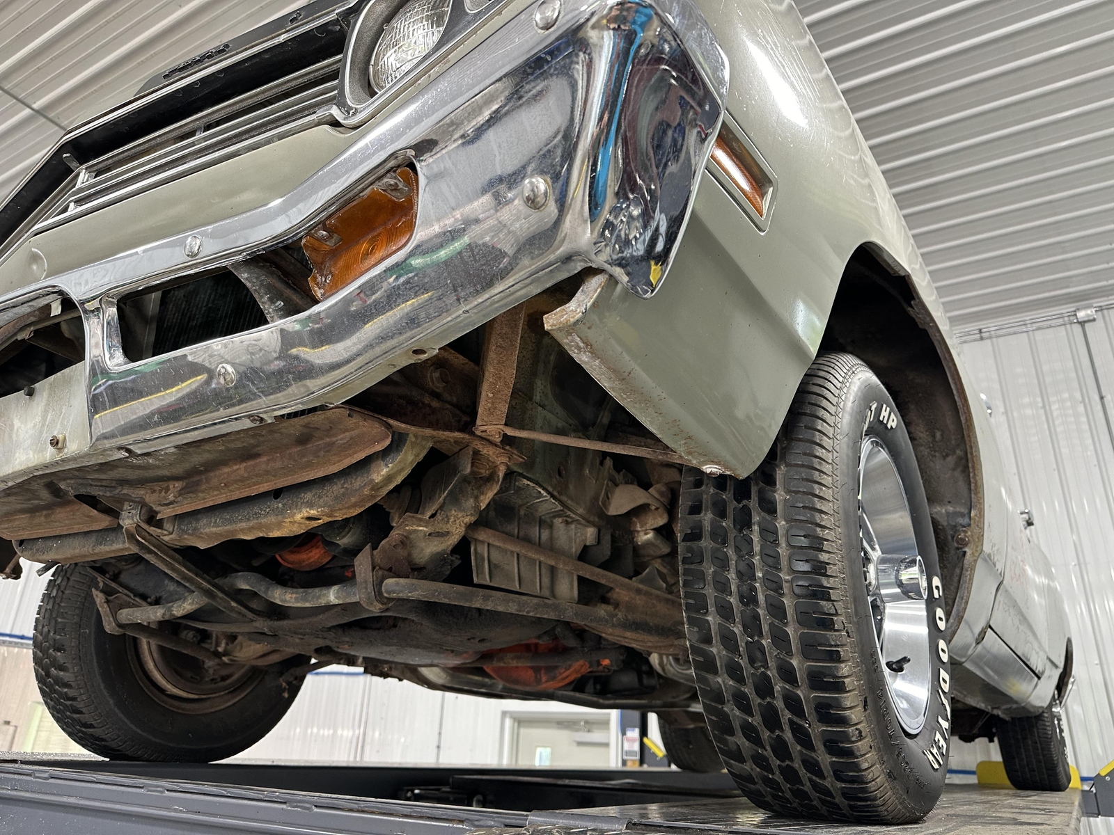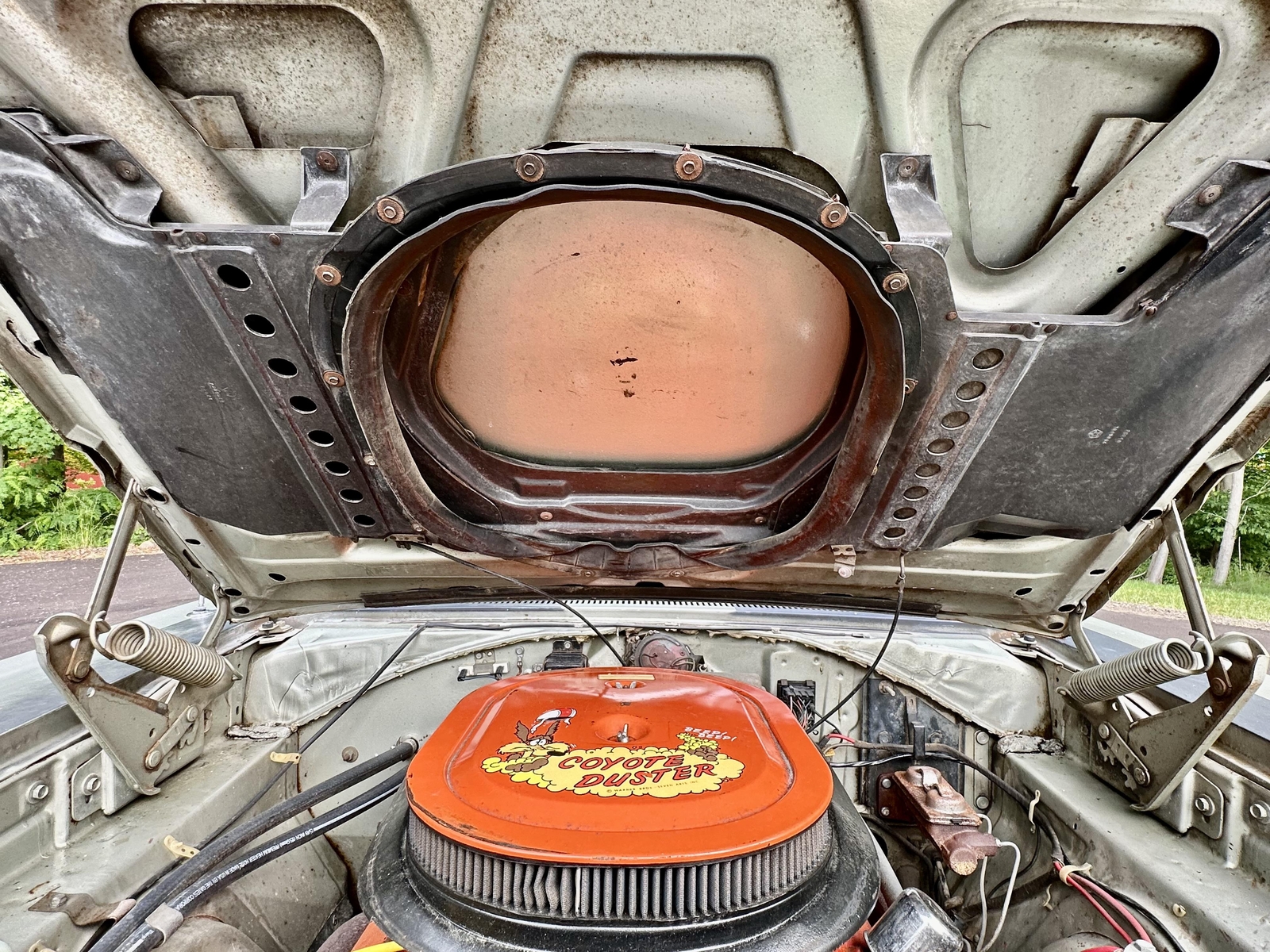 Under the hood sits the numbers-matching original 383 HP V8, mated to the original 4 Speed Transmission. The intake and carburetor have been swapped, but the originals are included with the car. The original air box is complete and fully functional, feeding air from the factory-optioned Air Grabber hood. The underside of the car is largely original, with a newer exhaust installed a few years back. The frame is straight and dry, and the suspension is intact. The braking system was fully serviced in 2017.