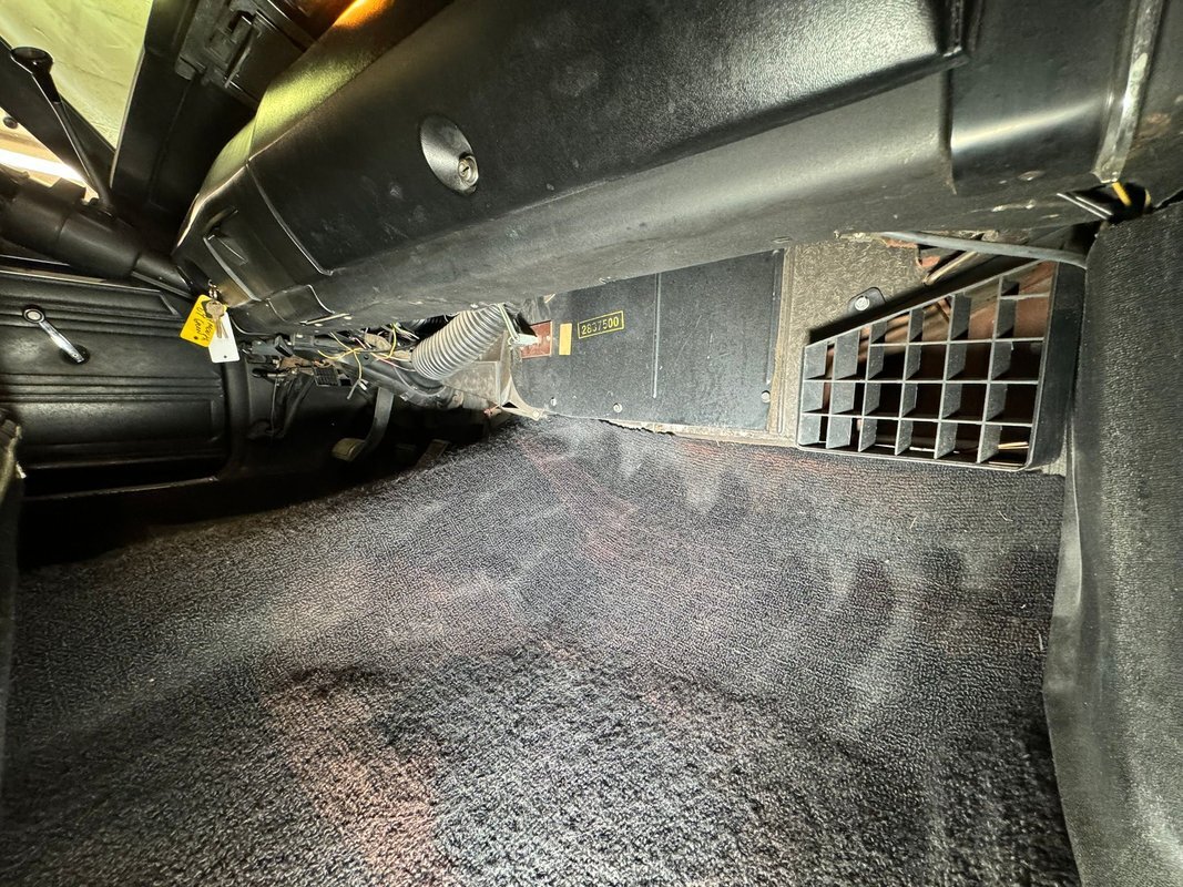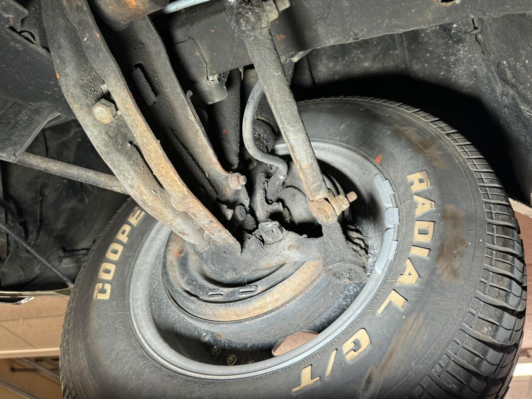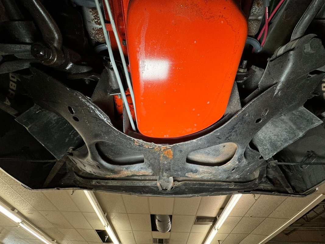 Some light spotty surface rust, mostly unremarkable shows up underneath but it's mostly black painted framing and suspension we look at. Speaking of which, is an independent front torsion bar arrangement and for the back leaf springs. Drum brakes are on all 4 corners.