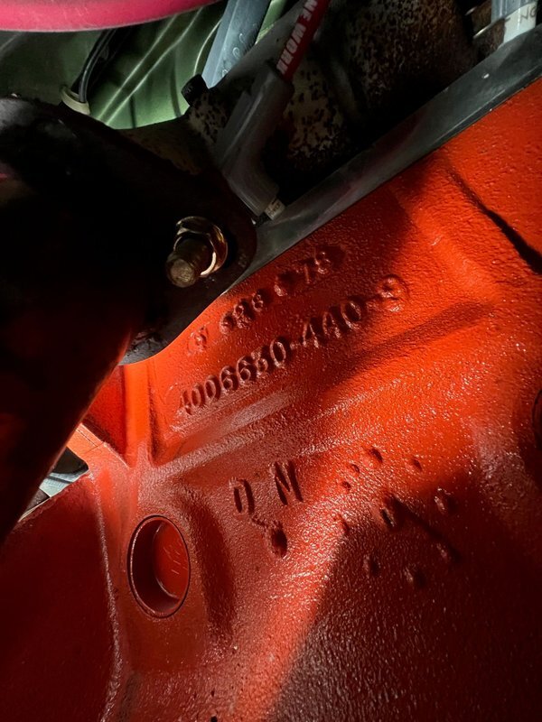 Under that menacing black scooped hood that exudes that don't "eff" with me look, we see the reason why. It shows and growls in the likeness of a 440ci V8 which is a rebuilt engine with receipts and is a 1978 casting. It has aftermarket aluminum heads and Holley Sniper EFI to feed its fossils. On the back is a rebuilt A727 Torqueflite 3-speed automatic transmission. An 8-3/4 inch rear axle is on to turn the big back tires into smoke. Dual exhaust uses Pypes mufflers to make the sound and provide the exhale. The engine bay looks clean and green...literally!
