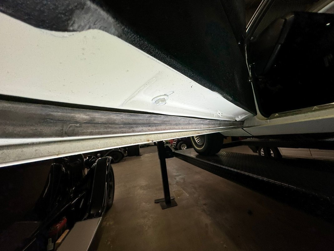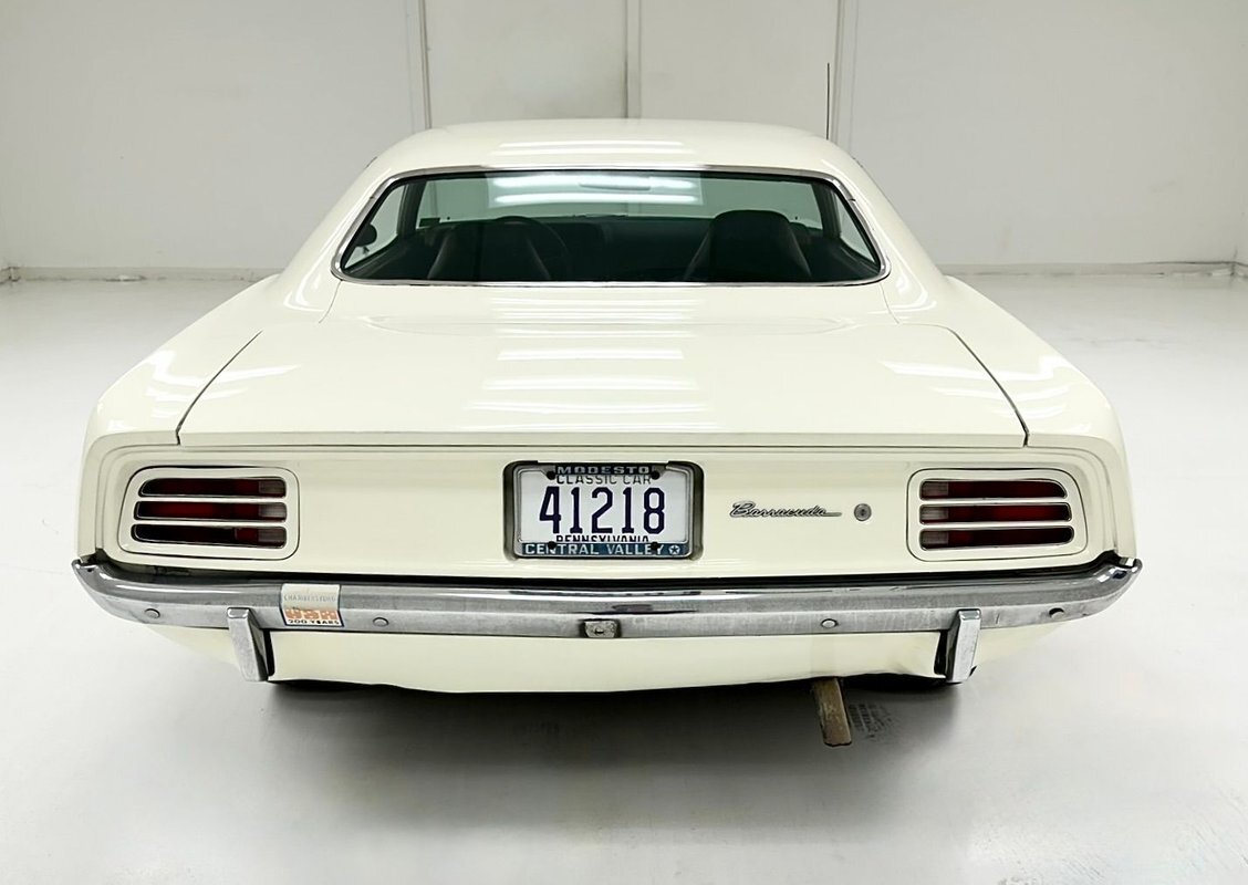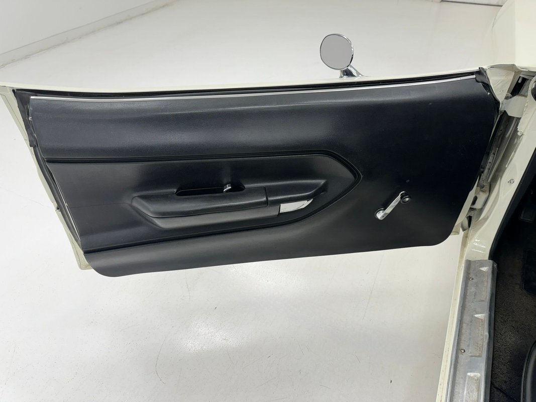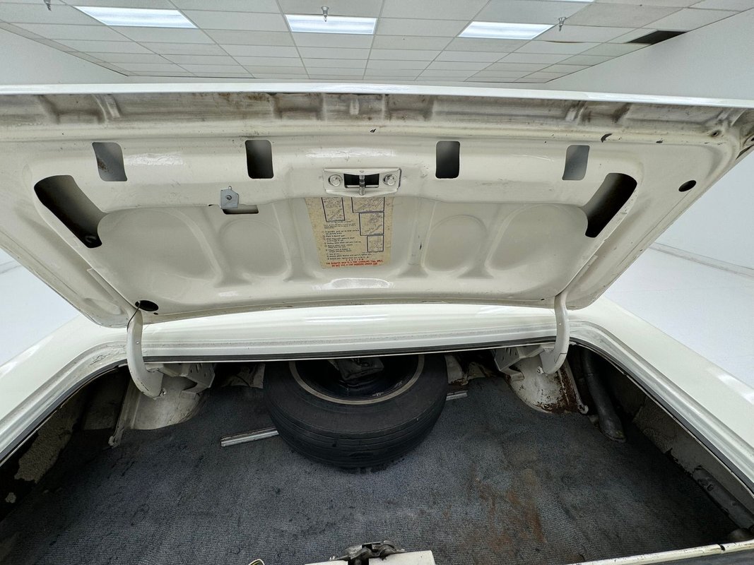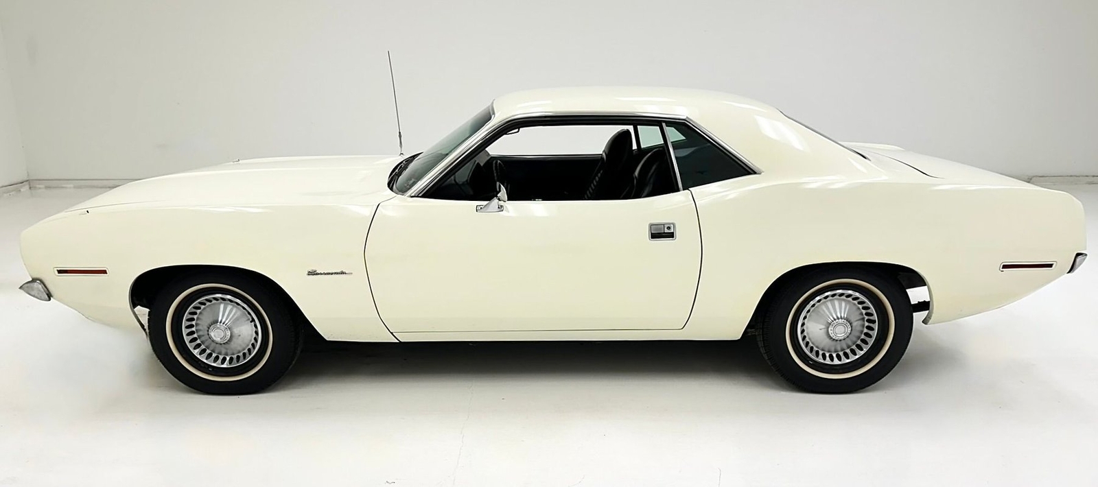 At the front of the car, a traditional satin silver split grille with argent surrounds with single satin silver bezel headlights flanking on either side lead the way. Top mounted signal markers hover on the tops of the quarters and a mustache thin bumper in chrome is just below to frame the grille bottom. A non scooped, non striped steel hood runs from the grille rearward to a pristine stainless framed windshield. Inset chromed door handles are all mounted nicely in the field of white. Moving to the rear quarter on our way we note extremely well minded gaps, and all straight worry free steel, and pure Alpine White paint, no decals just simple straight steel. There are a few chips and dents and dings on this car along with a few drips on the lower painted surfaces. The white paint which also covers the quarter sides and doors continues rust free, and at the back of the car, a traditional white painted valence housing the iconic Plymouth 3 bar tail lights, and a chromed Barracuda badge. The rear showroom quality bumper hangs below the valance, and has a nice inset line. A single standard exhaust plays downward to the road surface on the passengers side only. No dual loud exhaust, just the mile exhale of the 318 cubes. On all 4 corners are standard Plymouth factory hub caps covering 14-inch wheels and wrapped by 205/75R14 thin whitewall rubber from the 15th week of 2010. What a breath of pure fresh air.