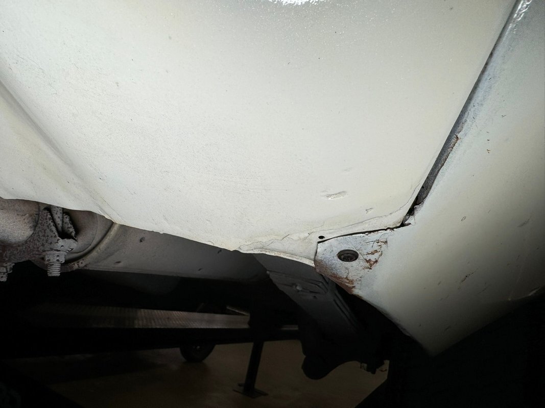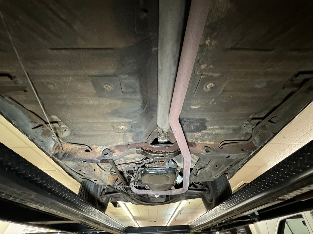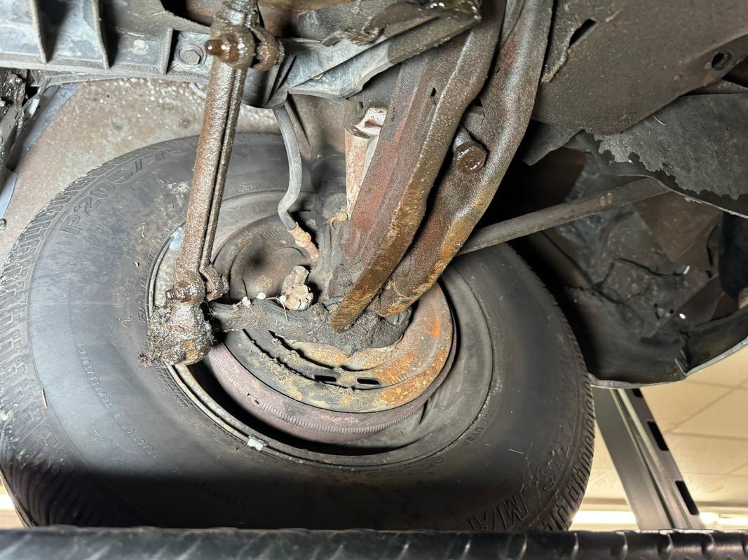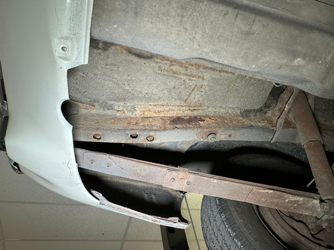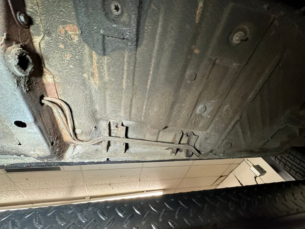 The underside is similar to the engine bay in that it has some road dirt, surface rust and still remains solid. Front independent torsion bars are in and on back leaf springs. Drum brakes are on all 4's.