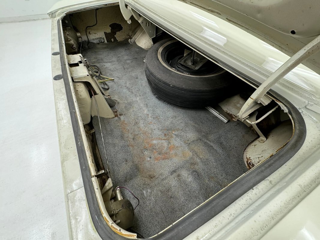 A flip of the hood and within an unrestored engine bay we see an aged look to the numbers matching 318ci V8. It is topped with a 2-barrel carburetor, and has a factory numbers matching A904 3-speed automatic transmission open bank with 7-1/4 inch rear axle. Stock single exhaust is installed.