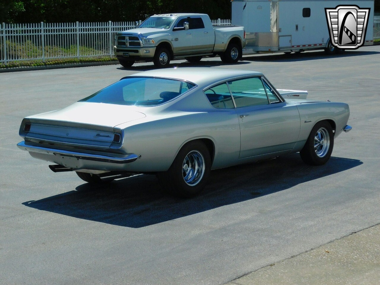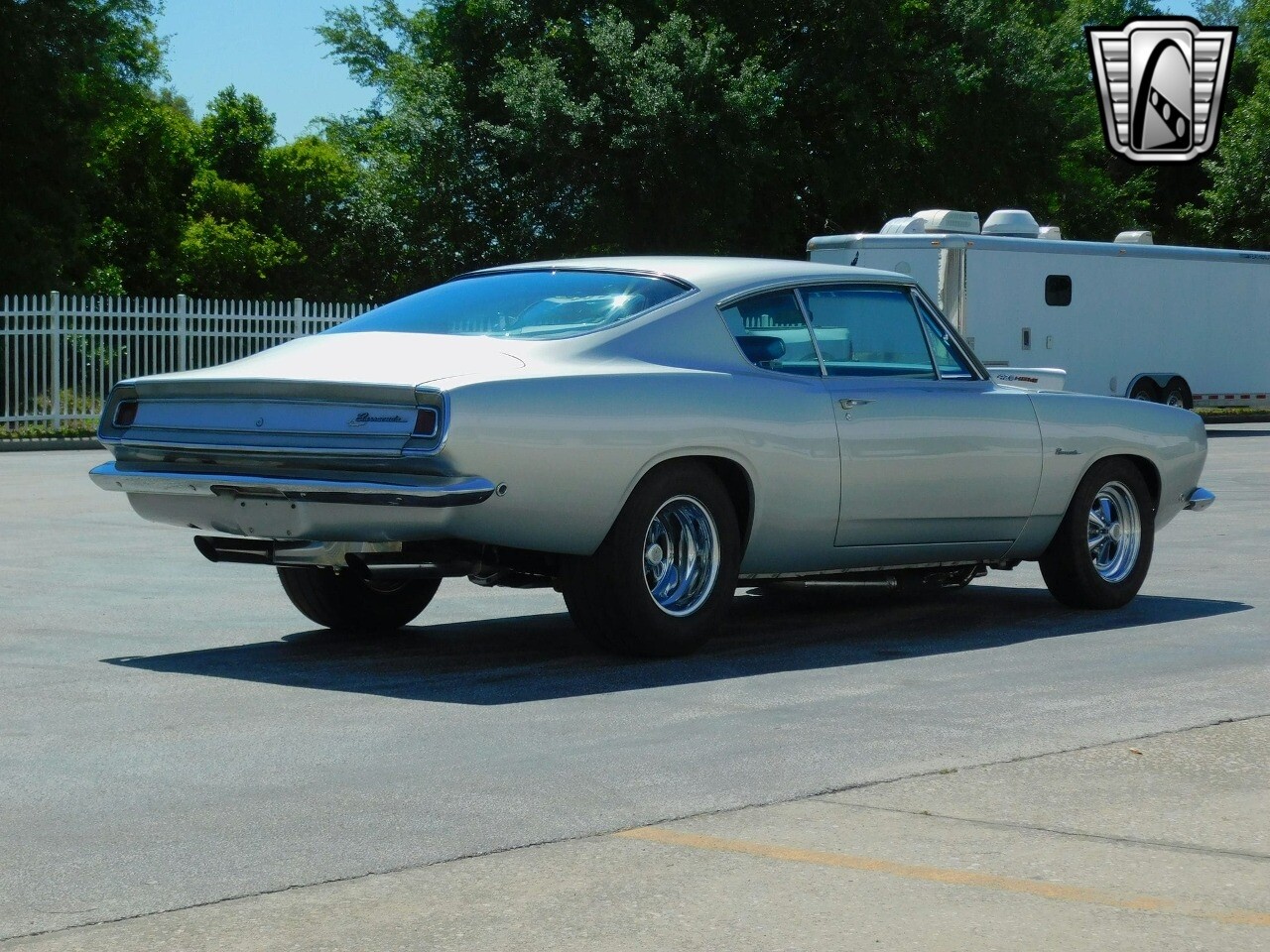 The exterior paint on this Barracuda is stunning with multiple layers of Billet Silver paint applied by Rick Perry's Custom Paints. Equally impressive is the interior with a vibrant blue crushed pile carpet and tweed interior that creates a striking contrast to the dazzling Billet Silver exterior.