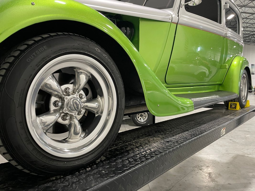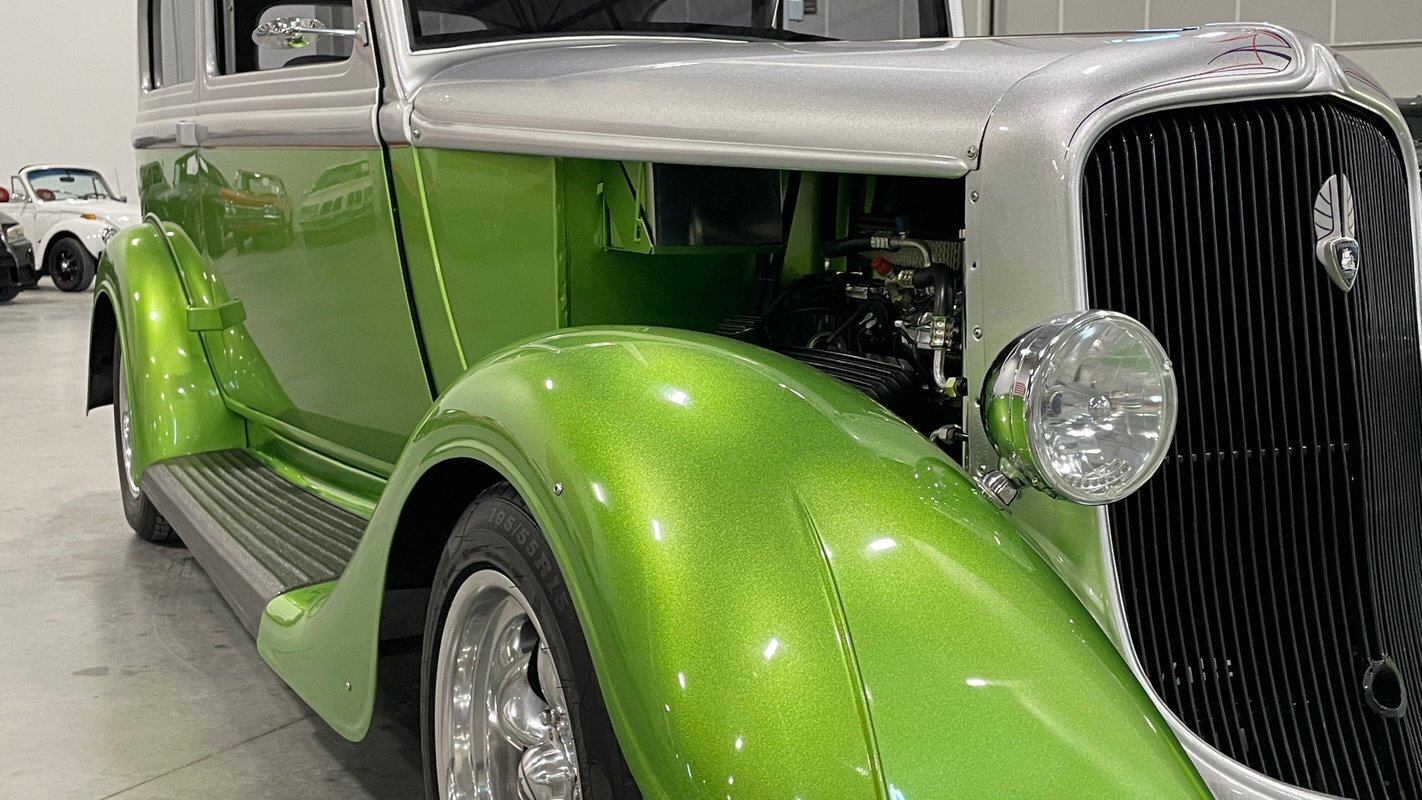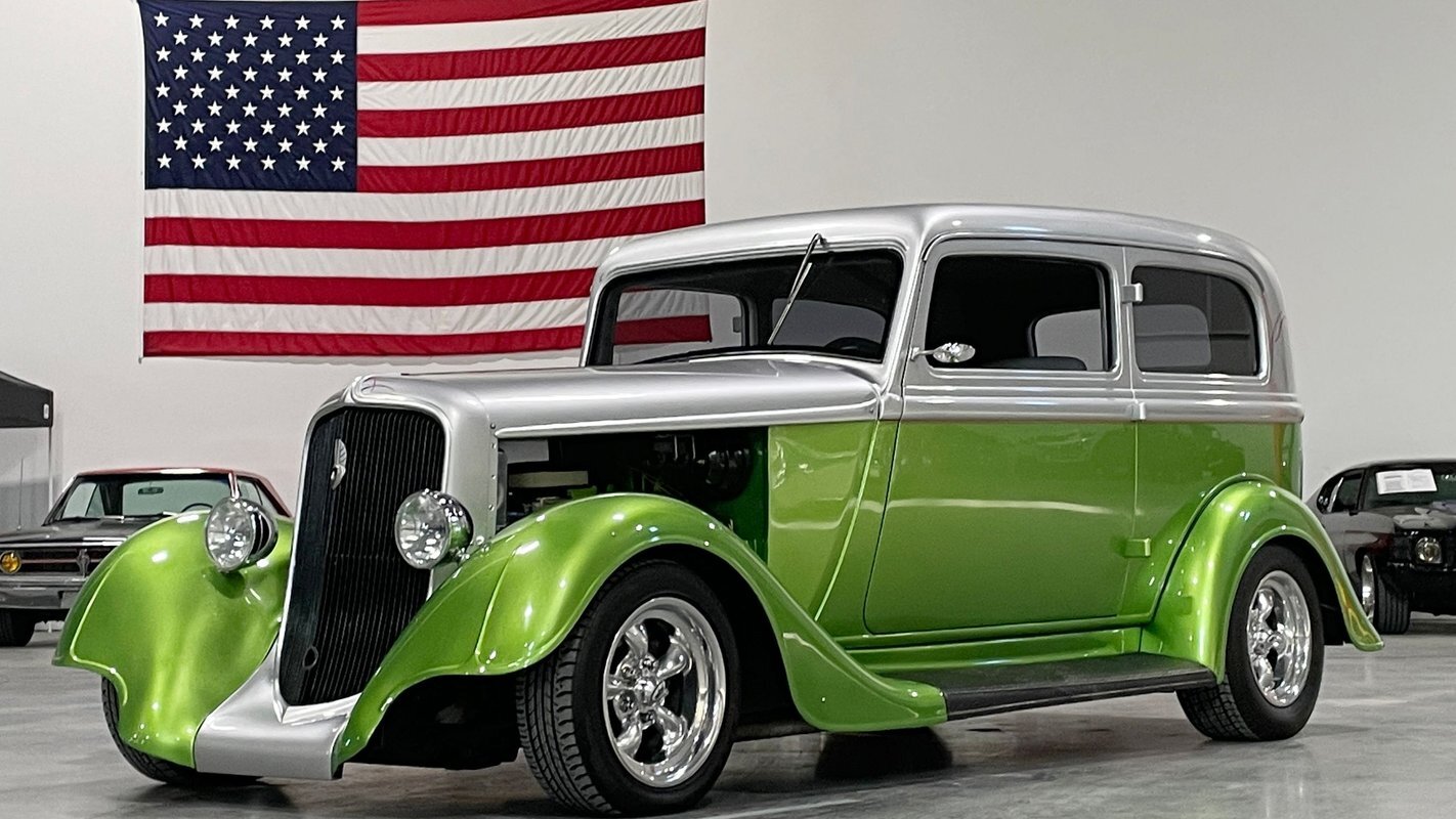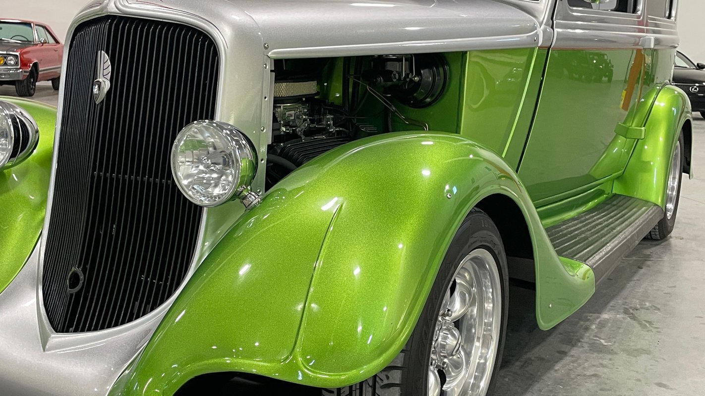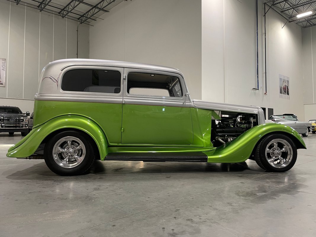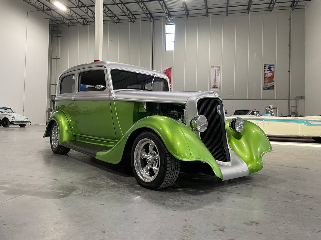 GR Auto Gallery of Indianapolis is proud to present this stunning 1934 Plymouth Sedan for your consideration. This Plymouth is a classic Street Rod. Silver and green metallic paint covers the straight body. This is a steel body with the exceptions of the fiberglass front fenders. The factory lines still show through, swoopy fenders, running boards, and suicide doors make this Hot Rod stand out. Under the hood is 350 small block Chevy engine backed by a 700R4 automatic overdrive transmission. This machine is meticulously detailed and almost spotless from top to bottom. Vintage Air keeps the car cool on those hot summer nights. Other features include; power steering, power brakes, power windows, disc brakes in the front and drum in the rear, Mustang II front clip, Coy wheels, Flaming River tilt column, Banjo steering, Jensen stereo, new battery, Veethree gauges, and may more upgrades. This is a true classic that has definitely gotten better with time. Don't miss this classic Plymouth. Drive this one out of our showroom or have us assist with shipping it to you anywhere in the United States! Don't hesitate to give us a call with any questions or for more information.