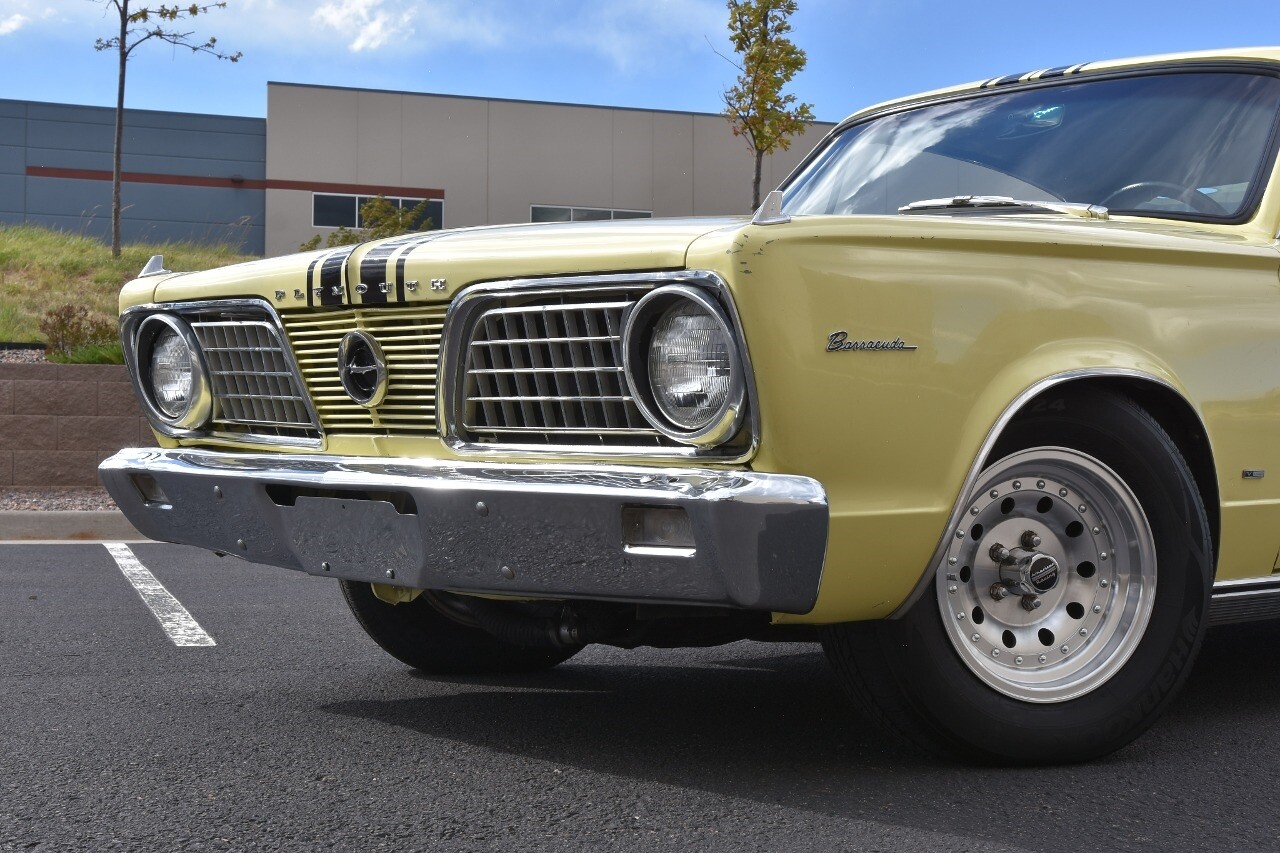 Gateway Classic Cars of Denver presents this 1966 Plymouth Barracuda, a classic American muscle car that is sure to turn heads wherever it goes. This model comes in a vibrant yellow exterior color that complements its sleek black interior. The color combination is not just visually appealing but also adds a touch of nostalgia, taking you back to the golden era of American automotive design.