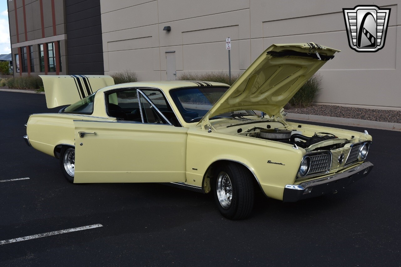 In summary, the 1966 Plymouth Barracuda with its yellow exterior, black interior, 318 V8 engine, and automatic transmission is a classic car that offers a unique blend of style and performance. It's a piece of American automotive history that is sure to make a statement wherever it goes.