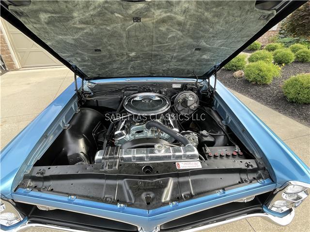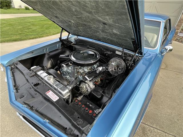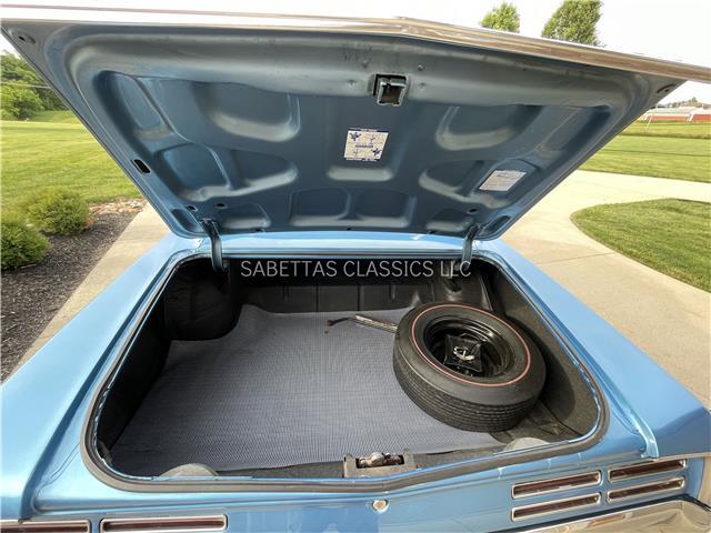 The engine compartment is nicely detailed with its number matching 400 ci/335 hp motor suffix code WW, casting number 9790071. The engine has been completely rebuilt. It has factory chrome valve covers, correct air cleaner, 4-core radiator and fan shroud. The core support, firewall and under the hood are painted and have a nice black finish. Great for car shows and cruise-ins!