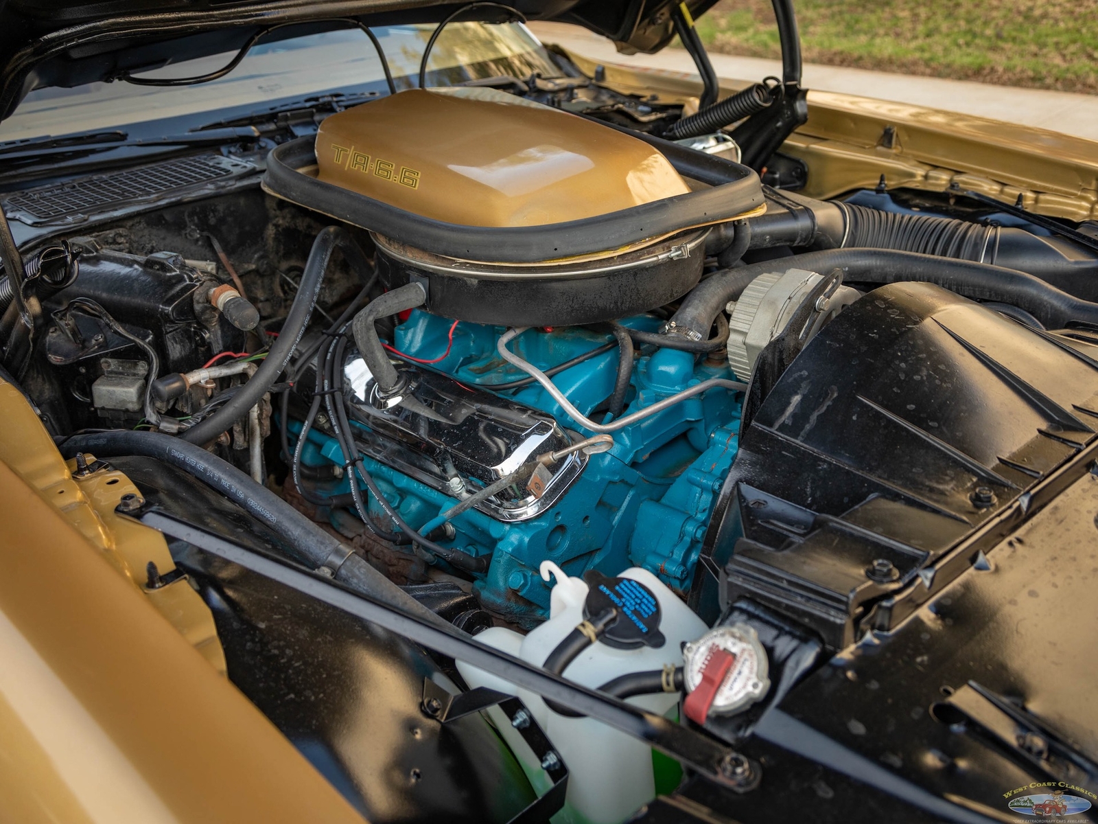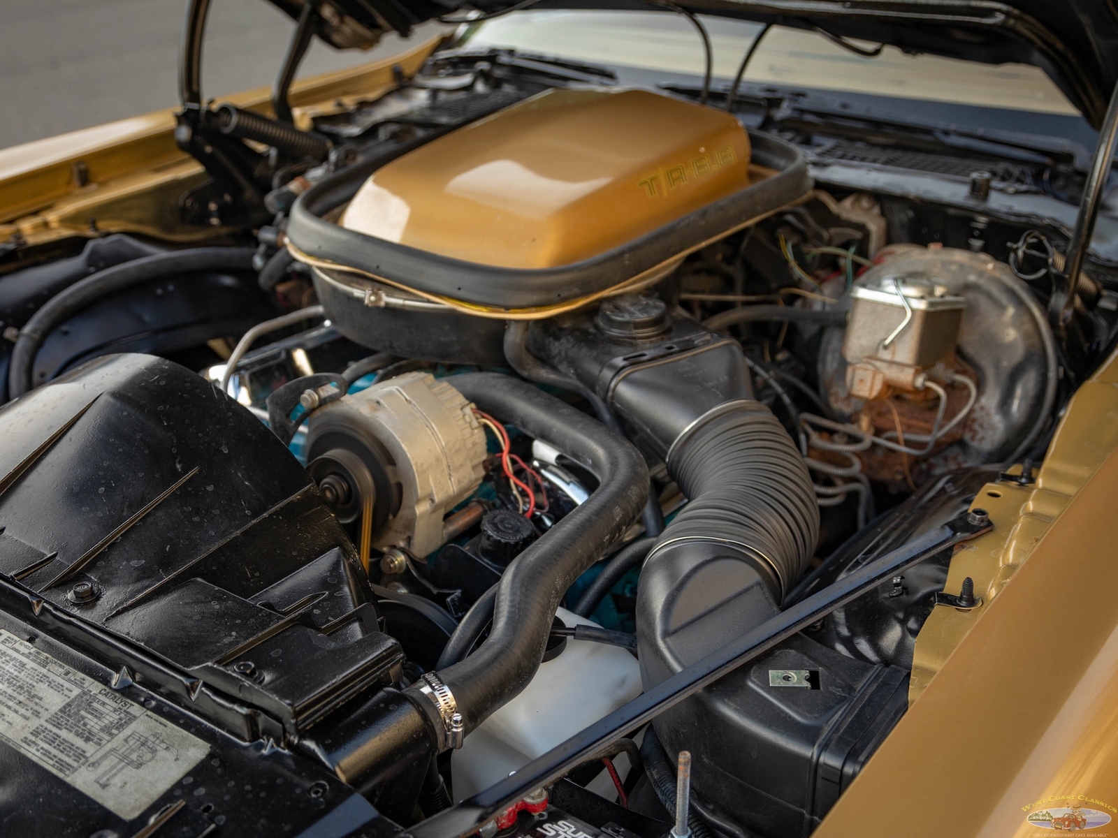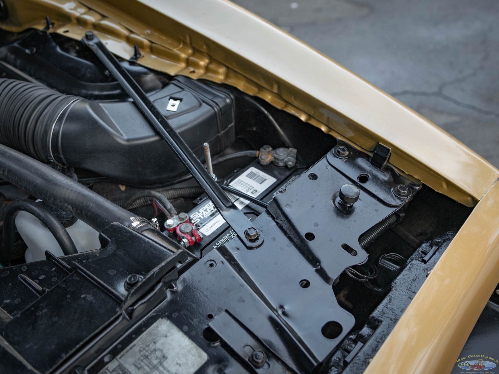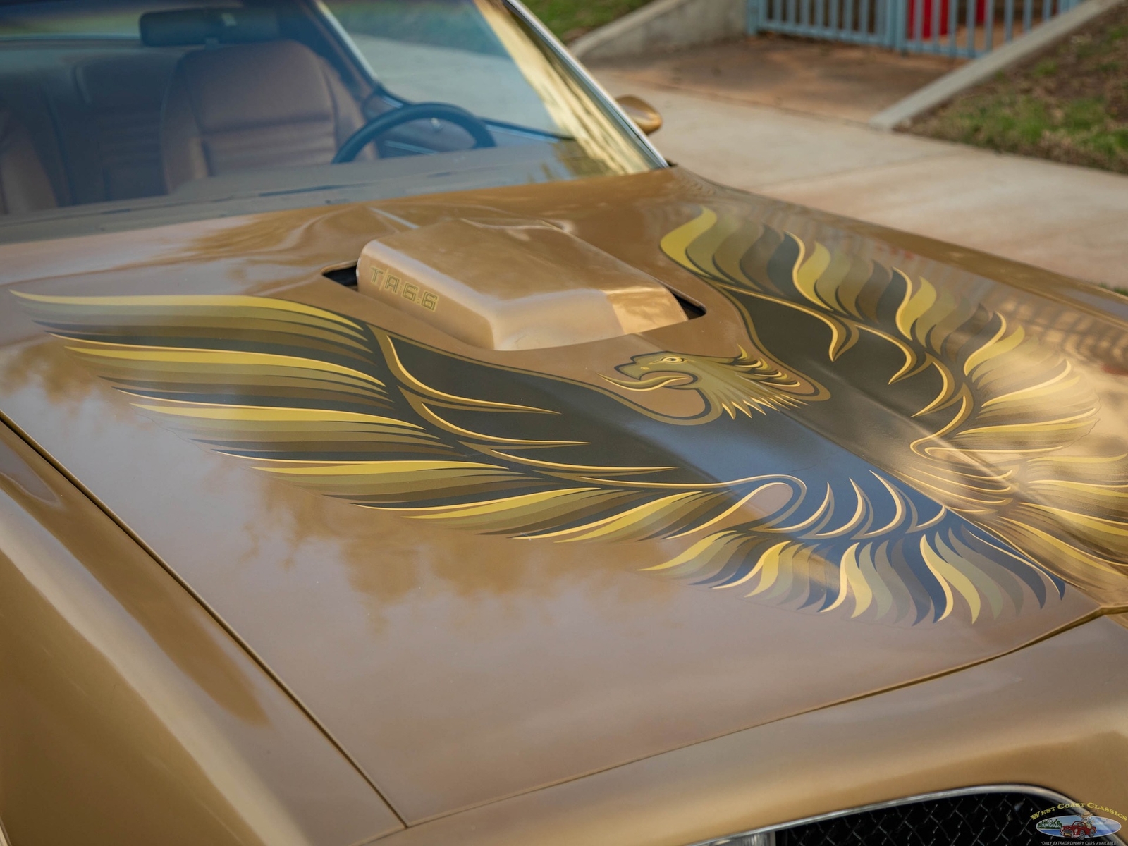 The car was first delivered to 'Stallings Motors' in Globe, Arizona, and was acquired by its most recent owner in 2023. The car left the factory finished in Solar Gold (50) and features front and rear spoilers, bright-finished trim, front fender vents, body-color sport mirrors, dual exhaust outlets, and a shaker hood with a Firebird hood graphic. Gold-finished 15 snowflake alloy wheels are mounted with BF Goodrich Radial T/A tires.