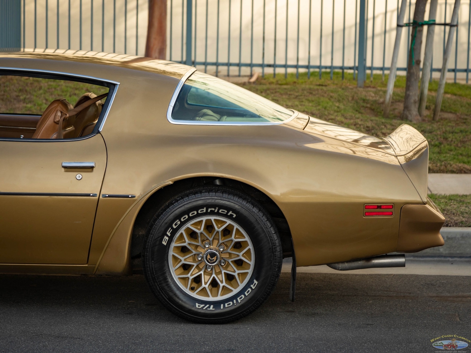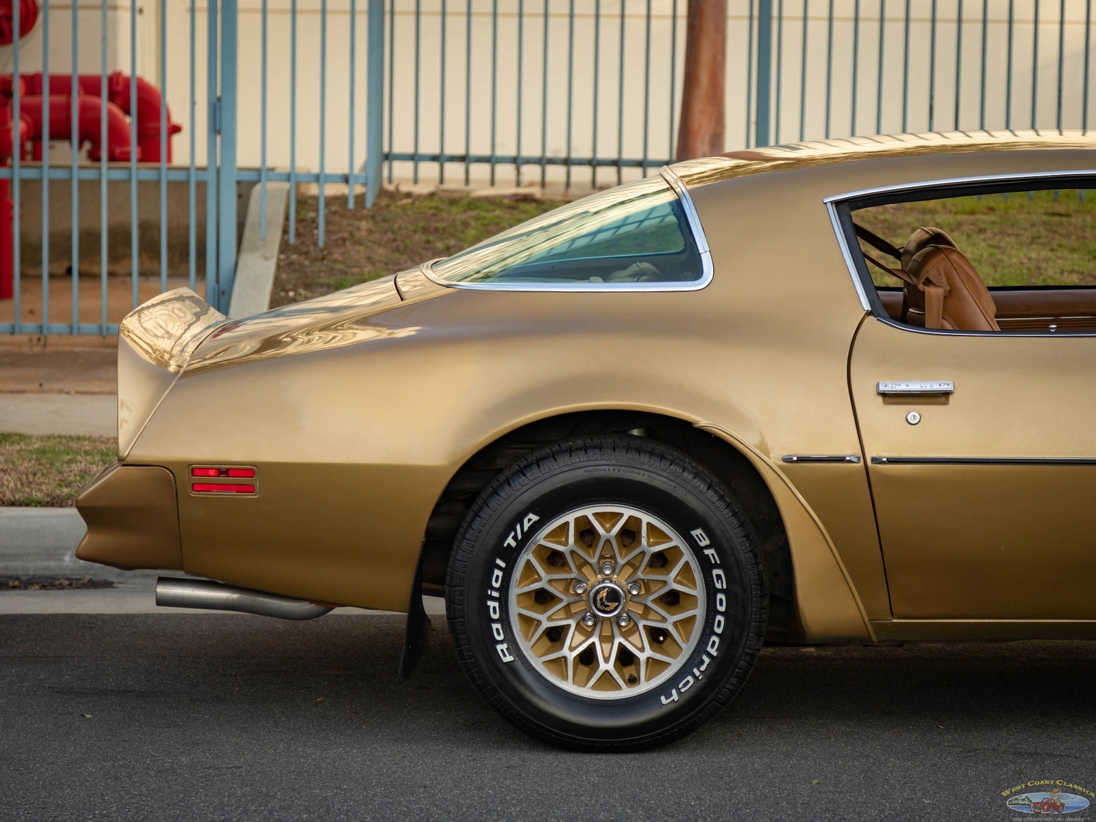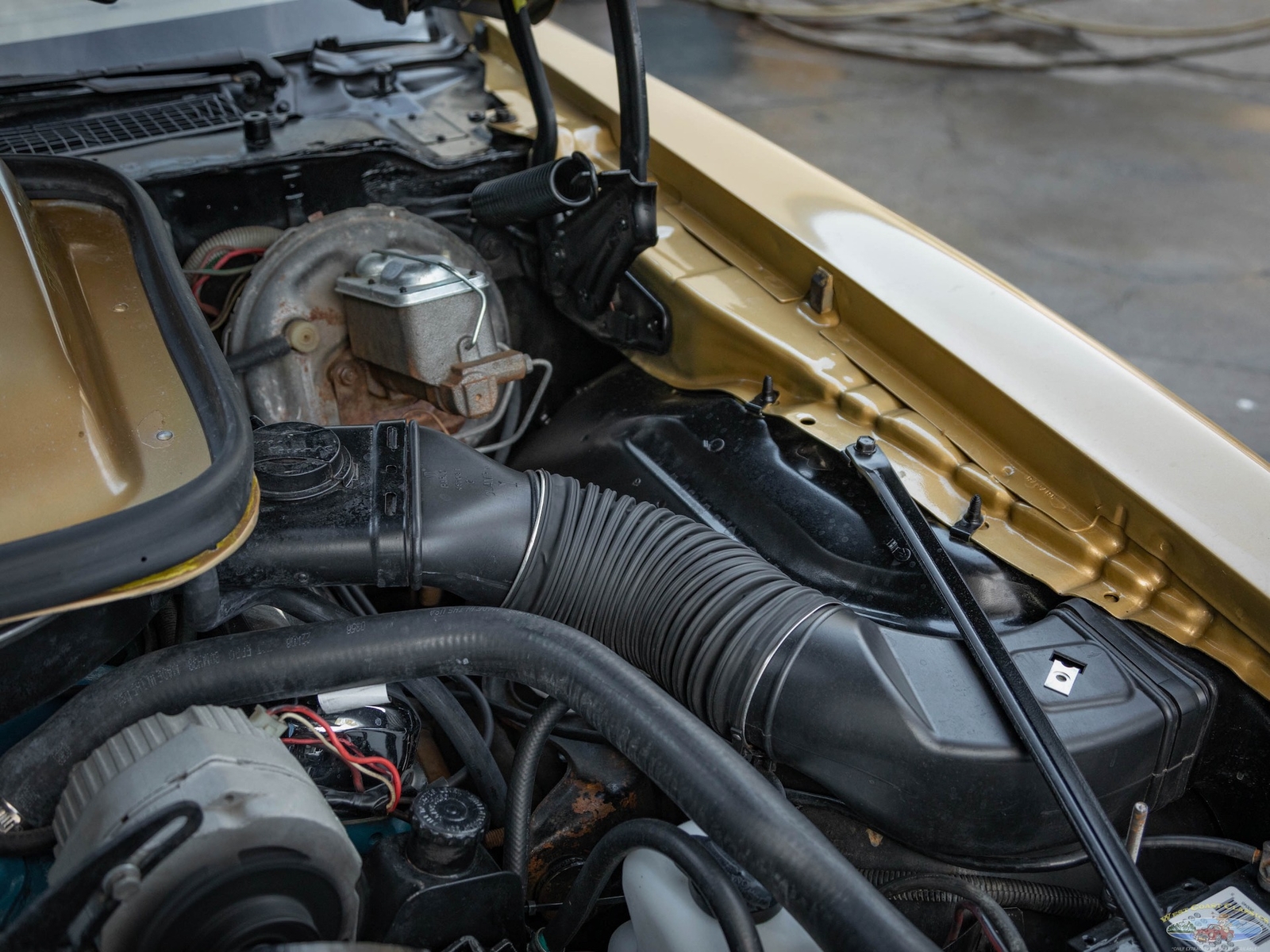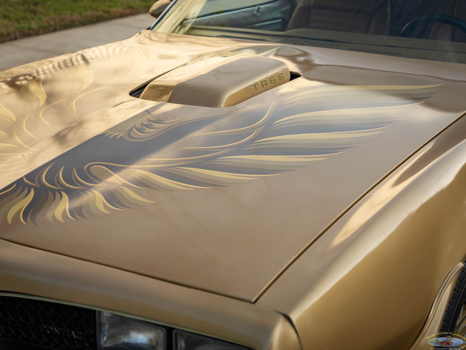 The car was first delivered to 'Stallings Motors' in Globe, Arizona, and was acquired by its most recent owner in 2023. The car left the factory finished in Solar Gold (50) and features front and rear spoilers, bright-finished trim, front fender vents, body-color sport mirrors, dual exhaust outlets, and a shaker hood with a Firebird hood graphic. Gold-finished 15 snowflake alloy wheels are mounted with BF Goodrich Radial T/A tires.
