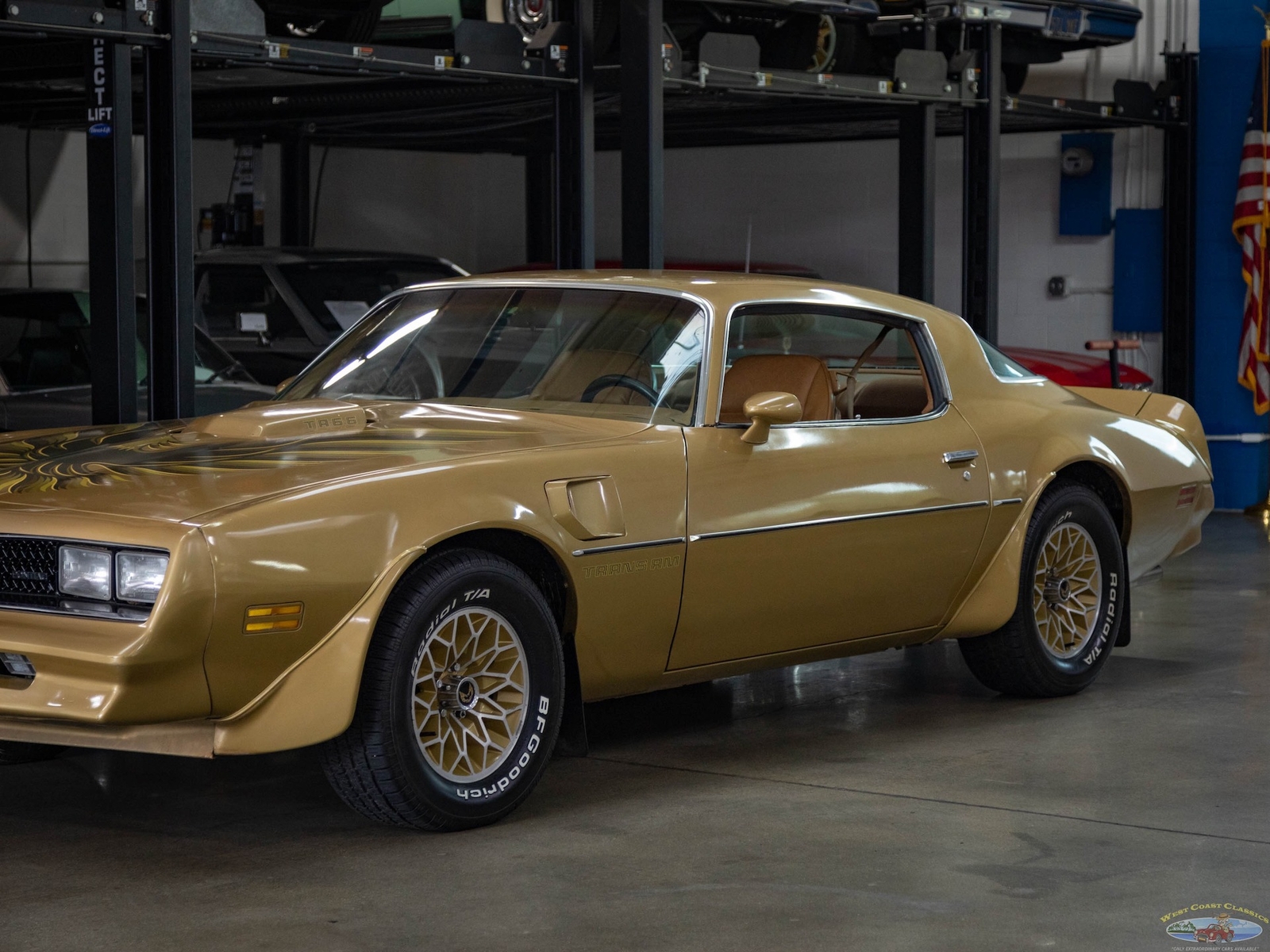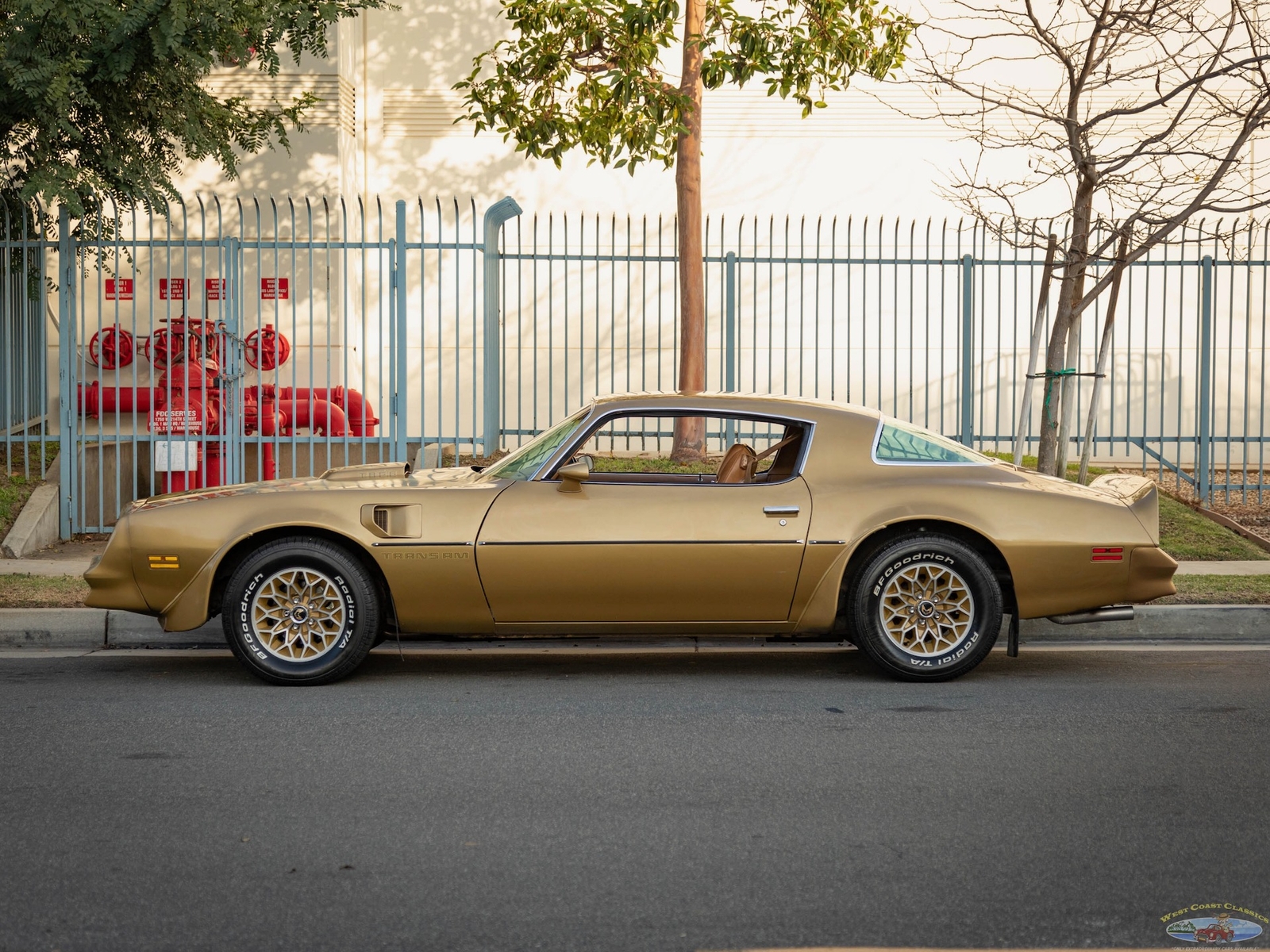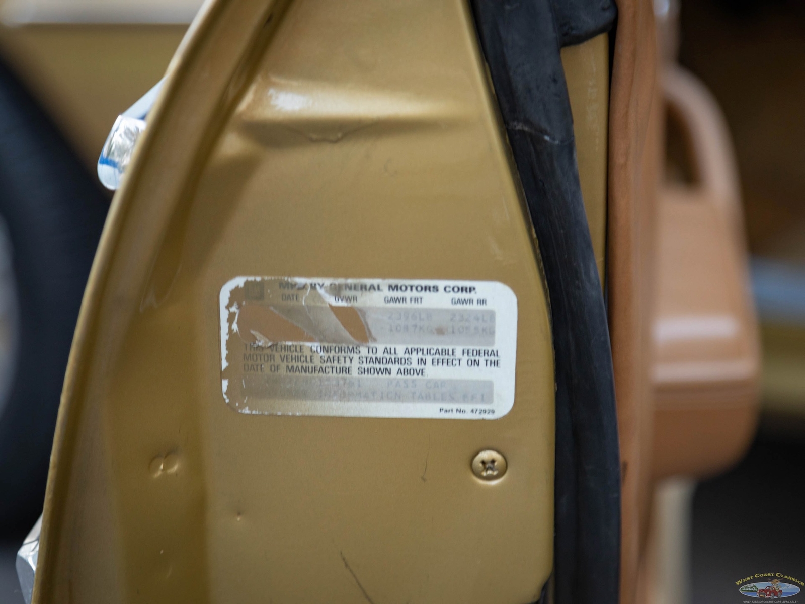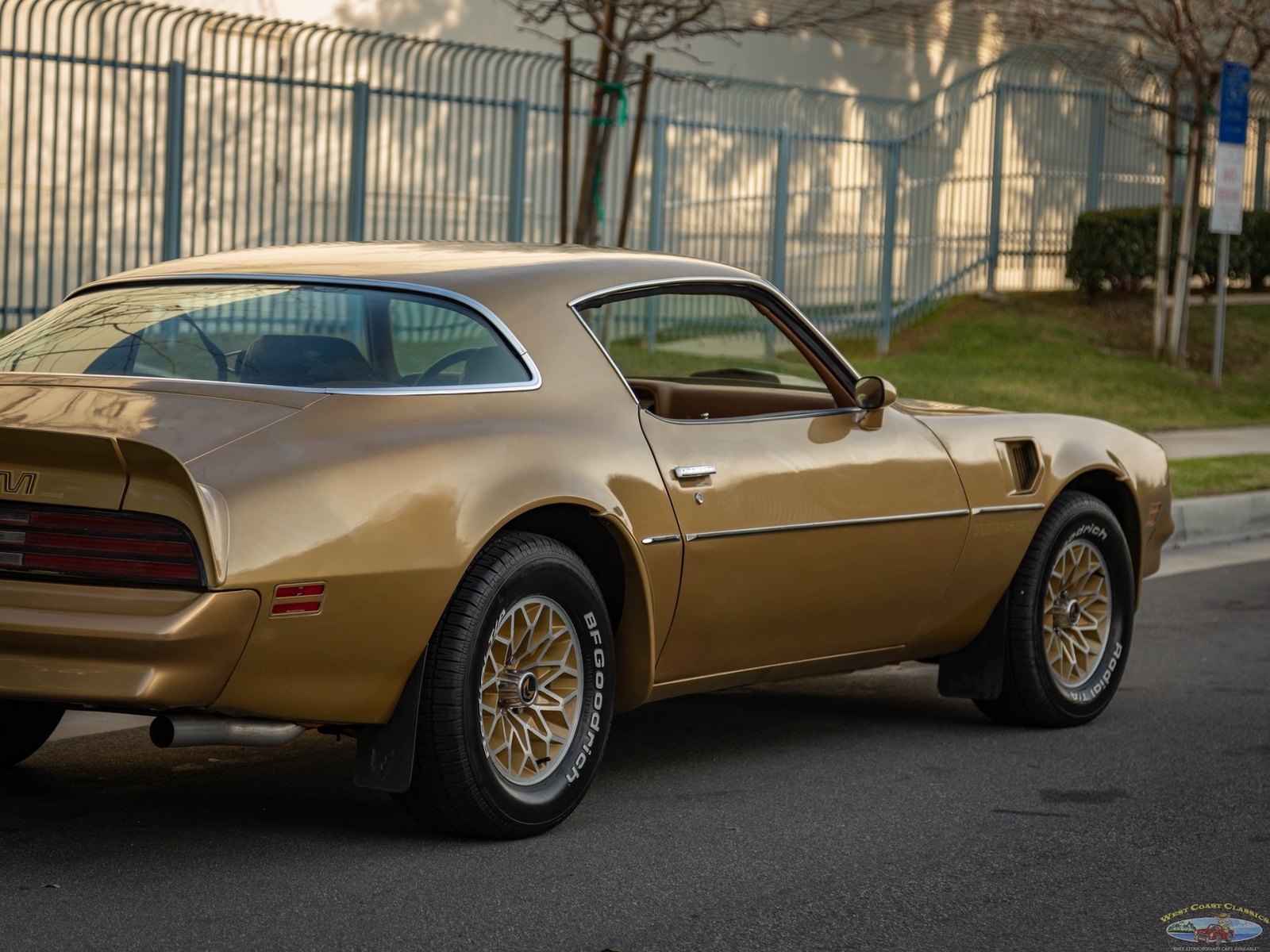 The car was first delivered to 'Stallings Motors' in Globe, Arizona, and was acquired by its most recent owner in 2023. The car left the factory finished in Solar Gold (50) and features front and rear spoilers, bright-finished trim, front fender vents, body-color sport mirrors, dual exhaust outlets, and a shaker hood with a Firebird hood graphic. Gold-finished 15 snowflake alloy wheels are mounted with BF Goodrich Radial T/A tires.