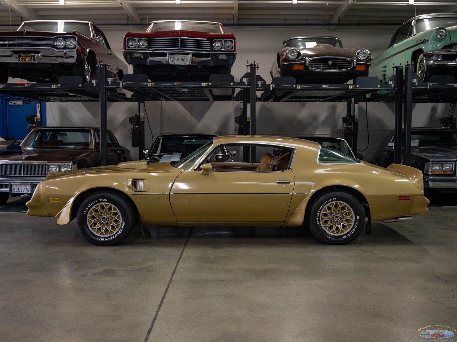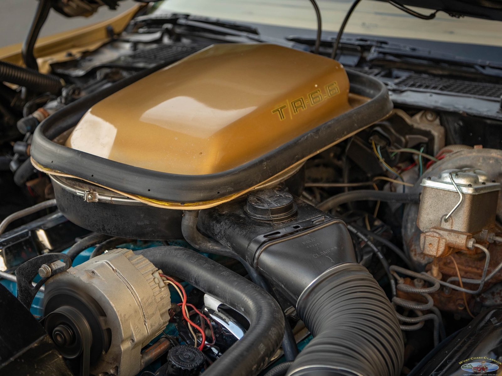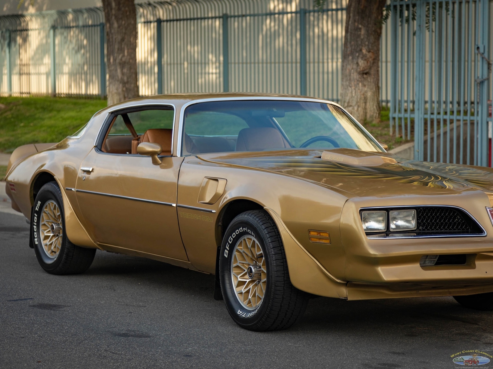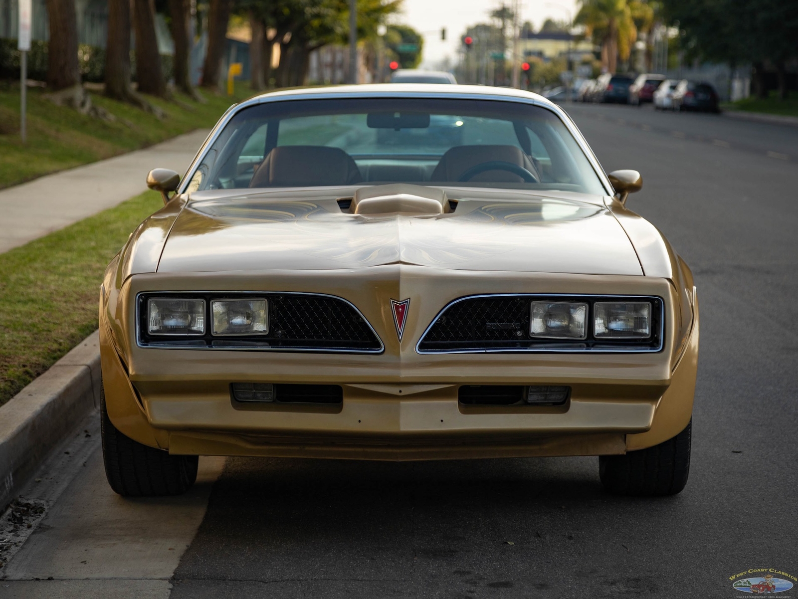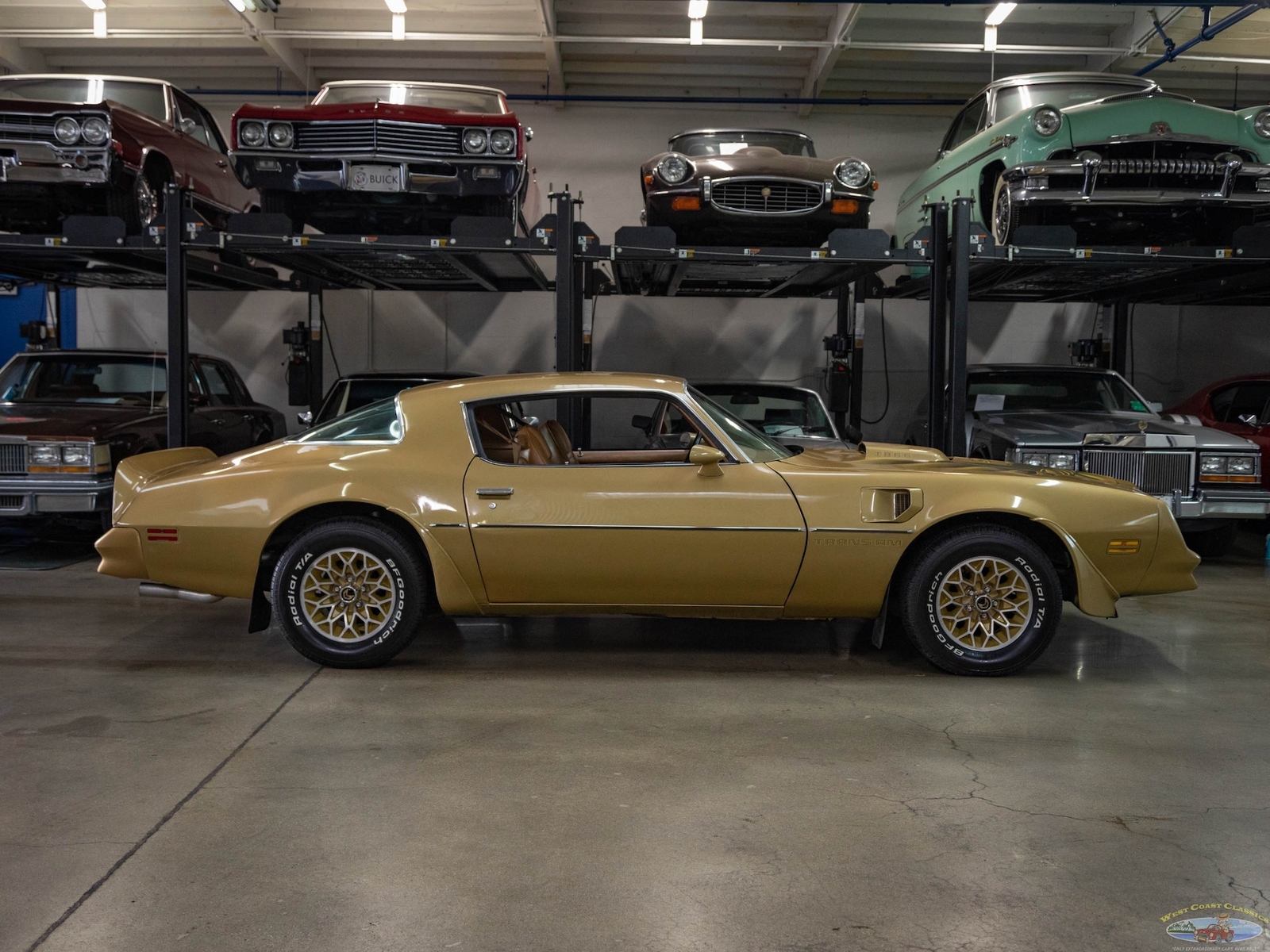 This 1978 Pontiac Firebird Trans Am is finished in its original 'Solar Gold' over Camel Tan vinyl upholstery and is powered by a 400ci W72 V8 paired with a four-speed manual transmission. The engine has been fitted with a GTO-sourced intake manifold and cylinder heads as well as a Ram Air III camshaft, and additional equipment includes a Shaker hood with a Firebird hood decal, front and rear spoilers, 15 snowflake alloy wheels, power steering, power front disc brakes, an aftermarket exhaust system, and an eight-track radio.