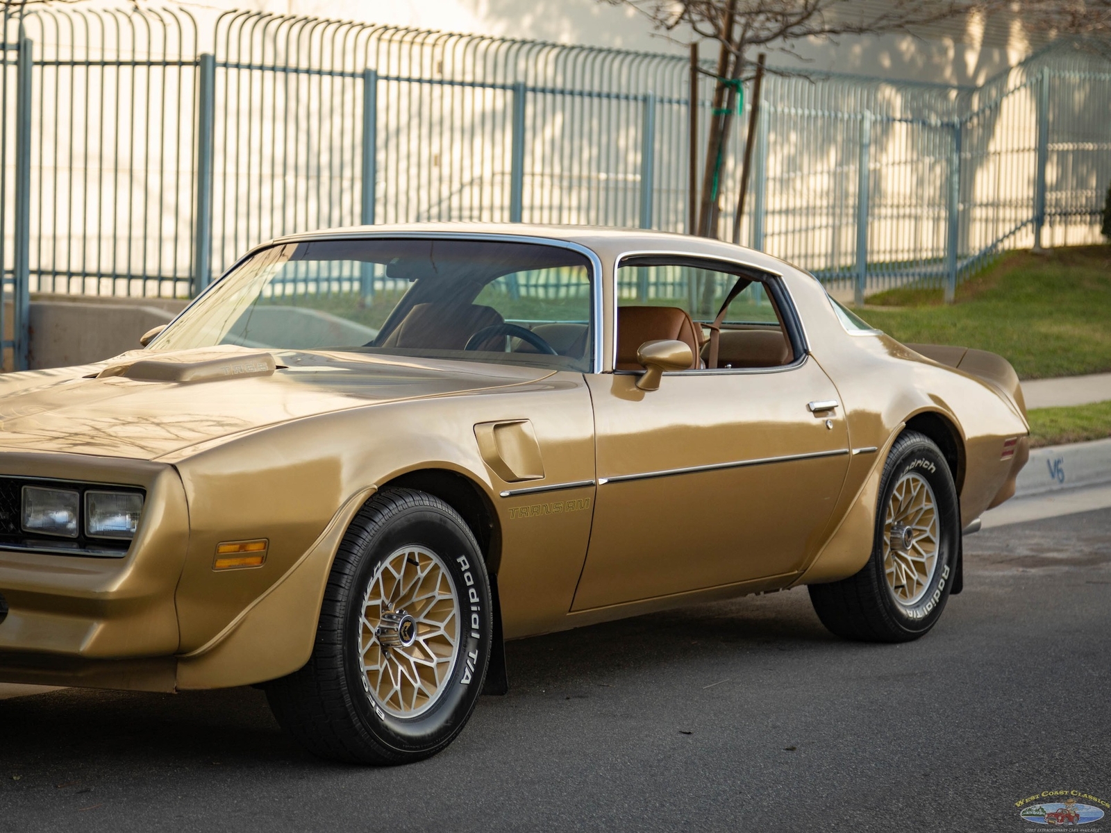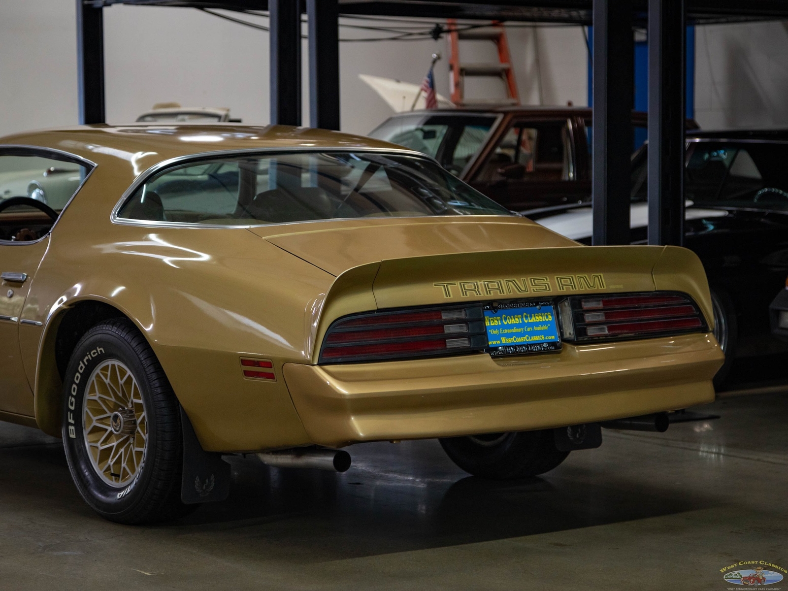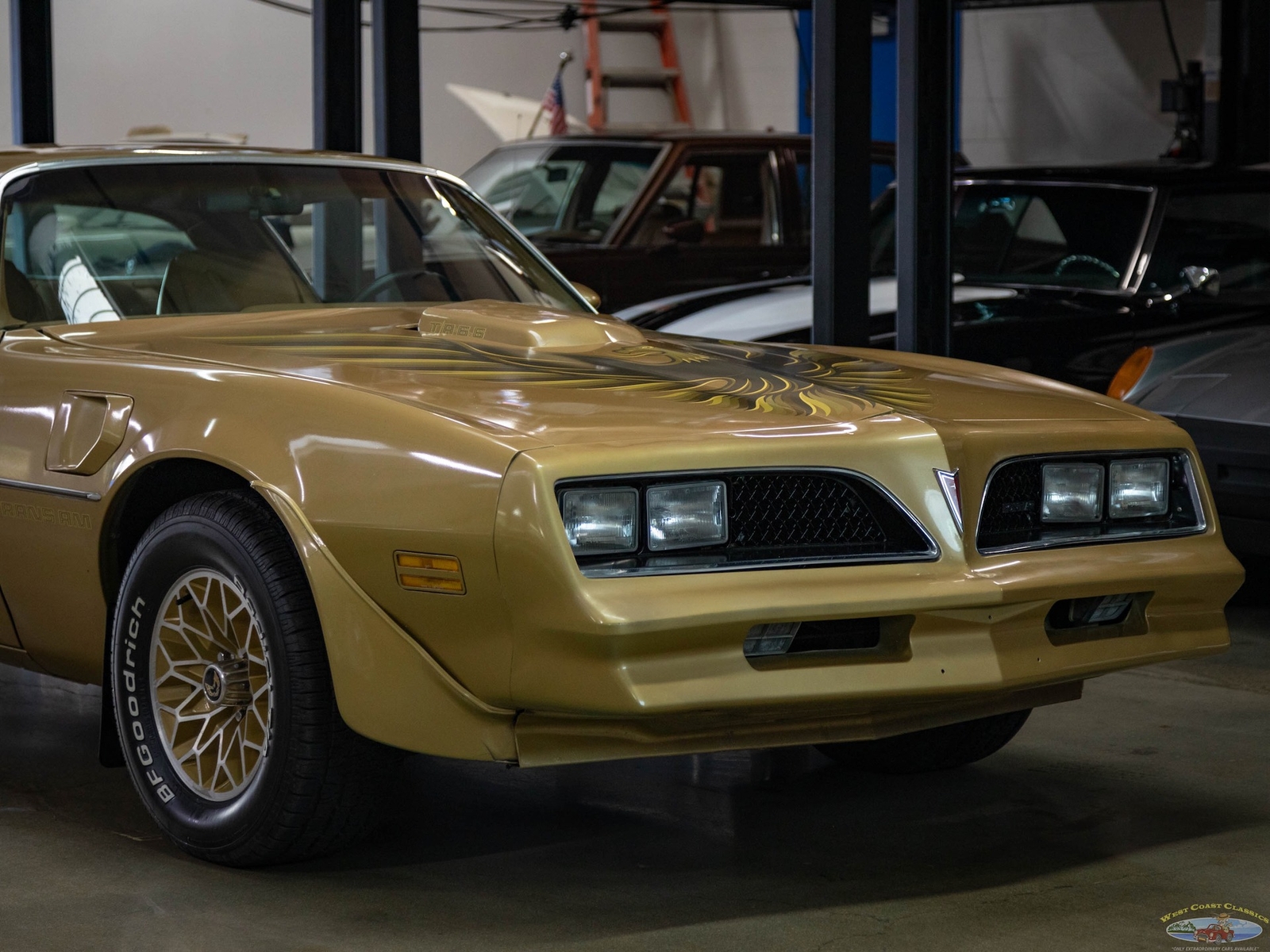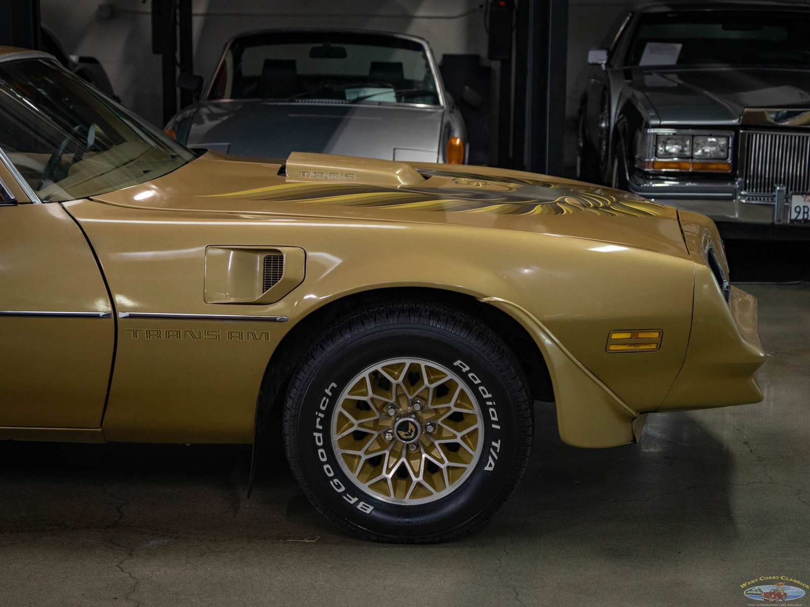This 1978 Pontiac Firebird Trans Am is finished in its original 'Solar Gold' over Camel Tan vinyl upholstery and is powered by a 400ci W72 V8 paired with a four-speed manual transmission. The engine has been fitted with a GTO-sourced intake manifold and cylinder heads as well as a Ram Air III camshaft, and additional equipment includes a Shaker hood with a Firebird hood decal, front and rear spoilers, 15 snowflake alloy wheels, power steering, power front disc brakes, an aftermarket exhaust system, and an eight-track radio.