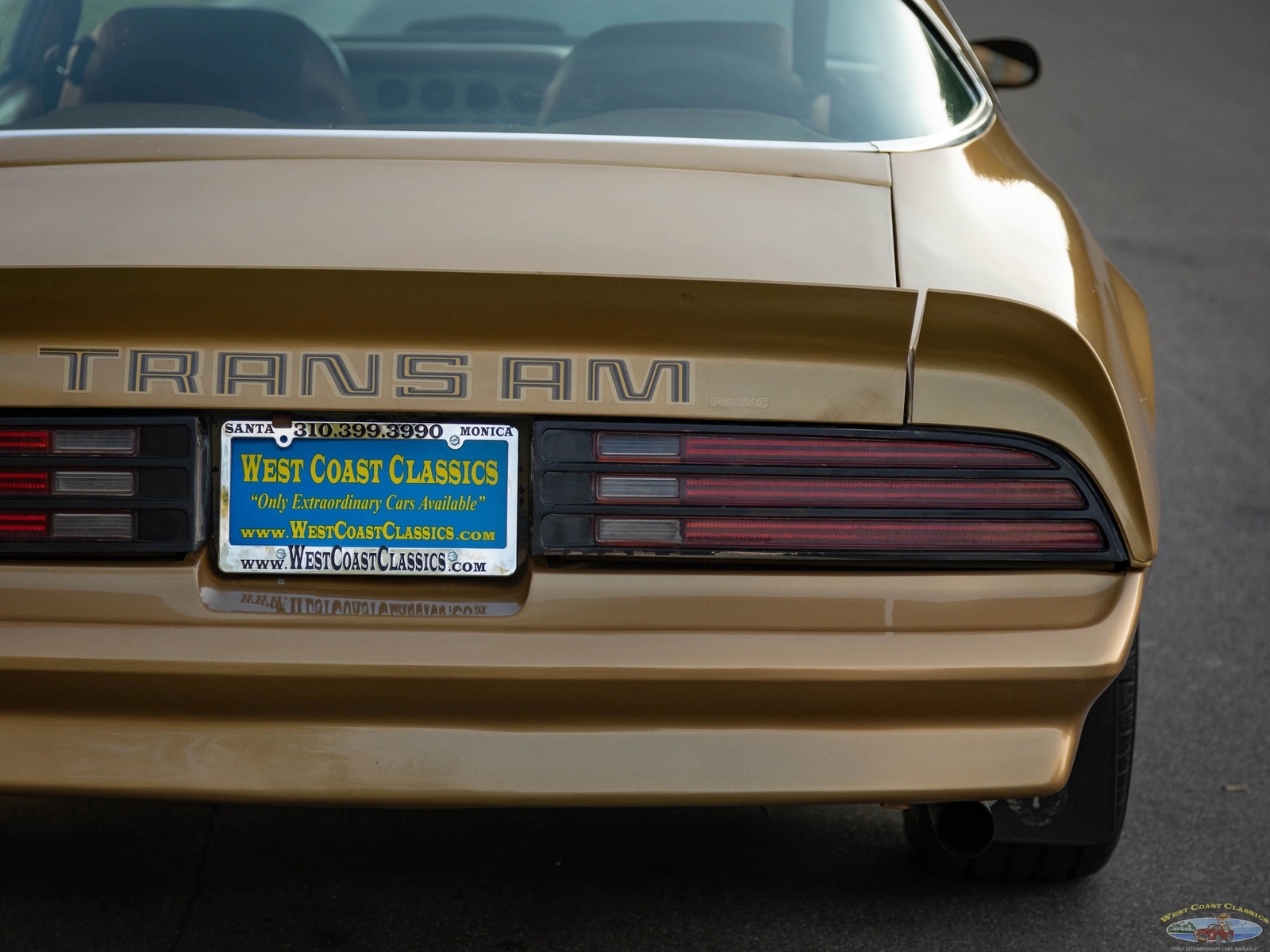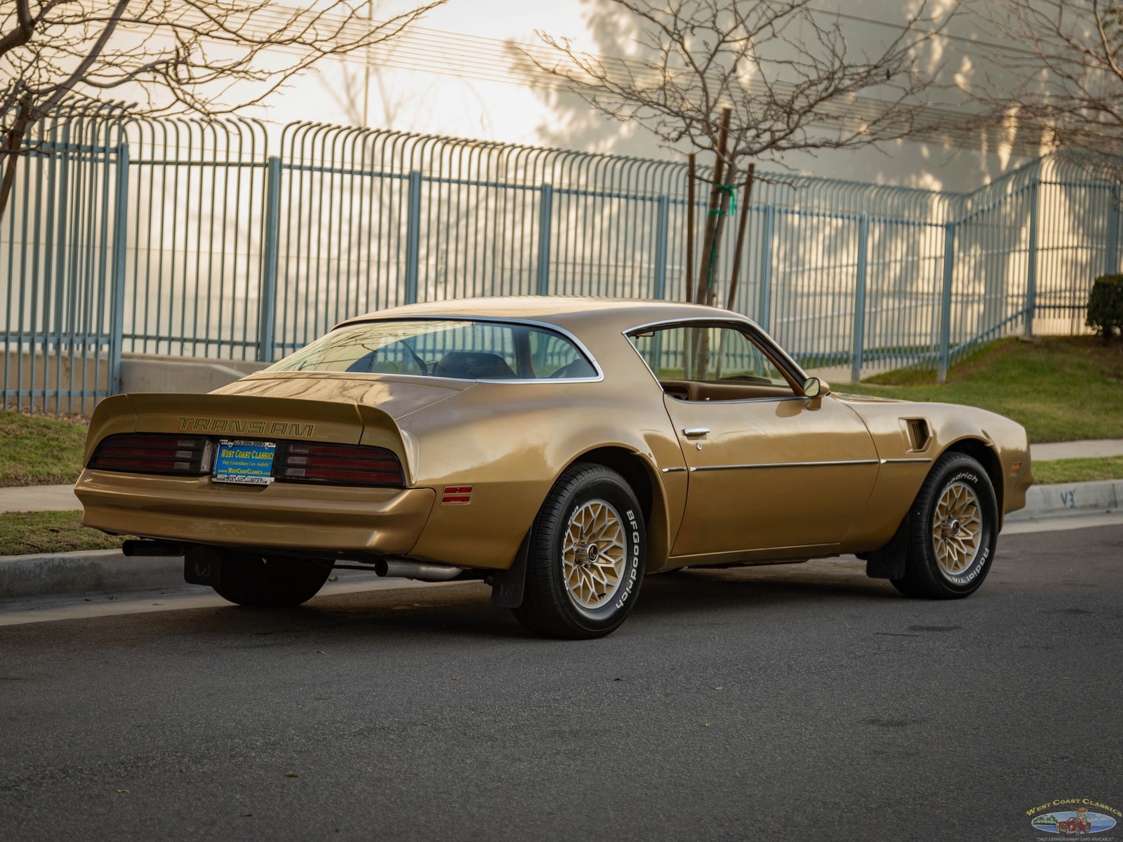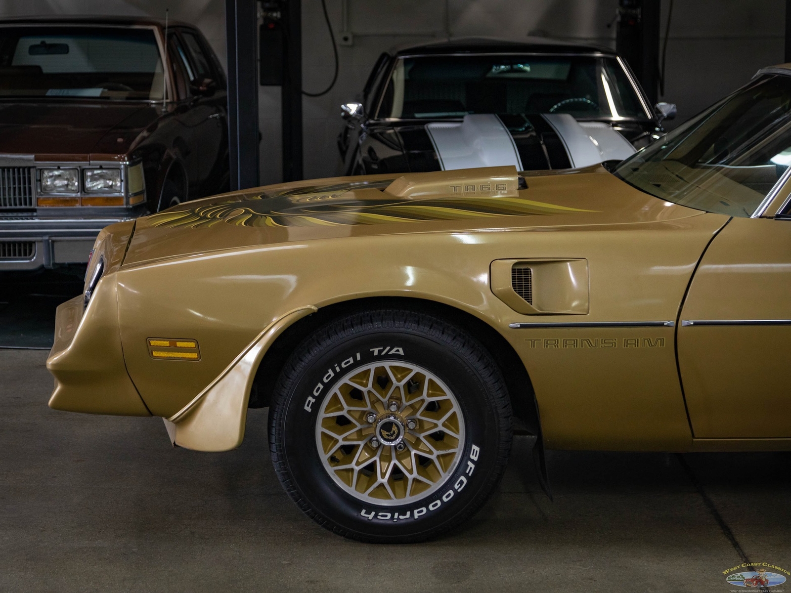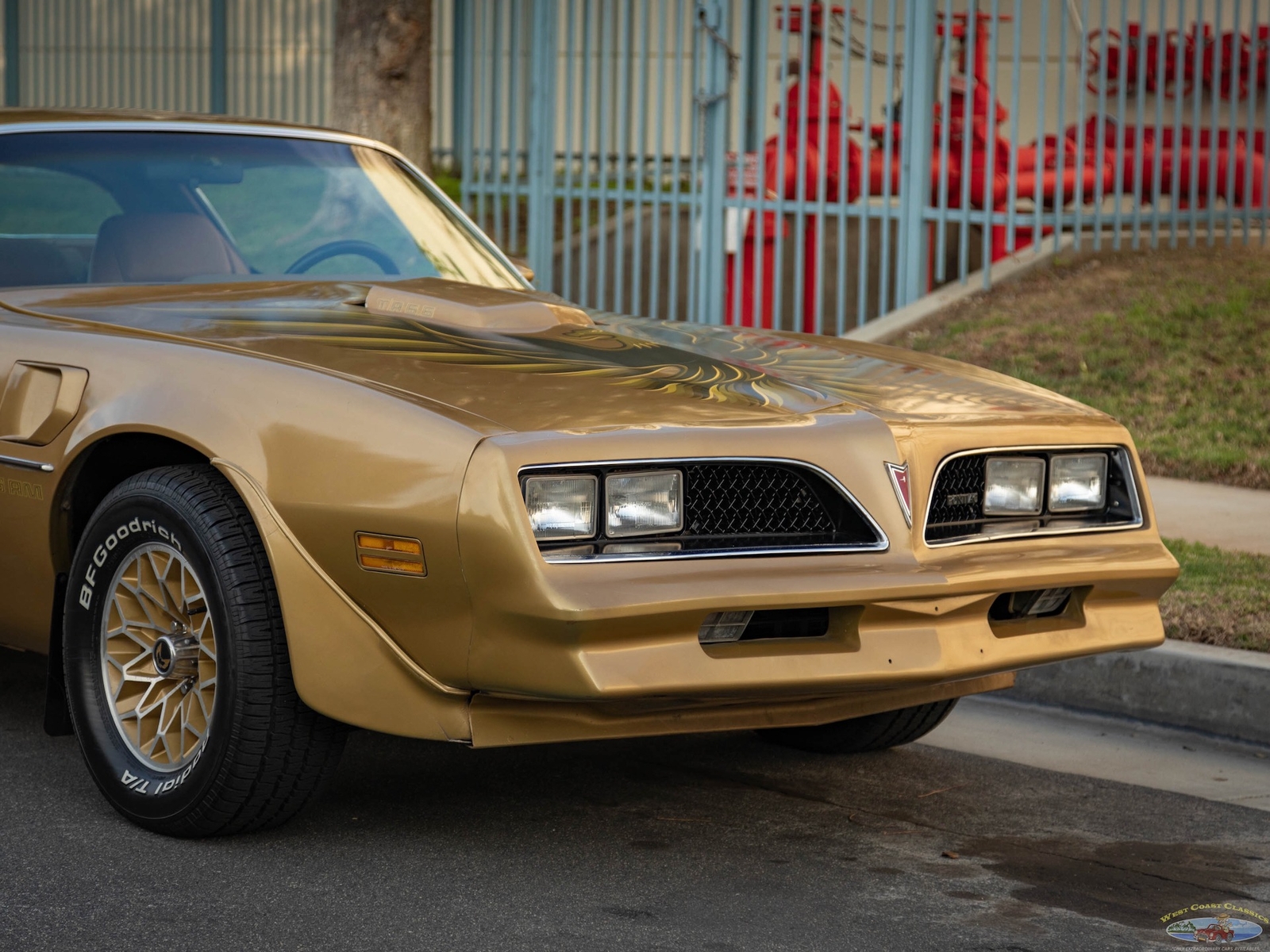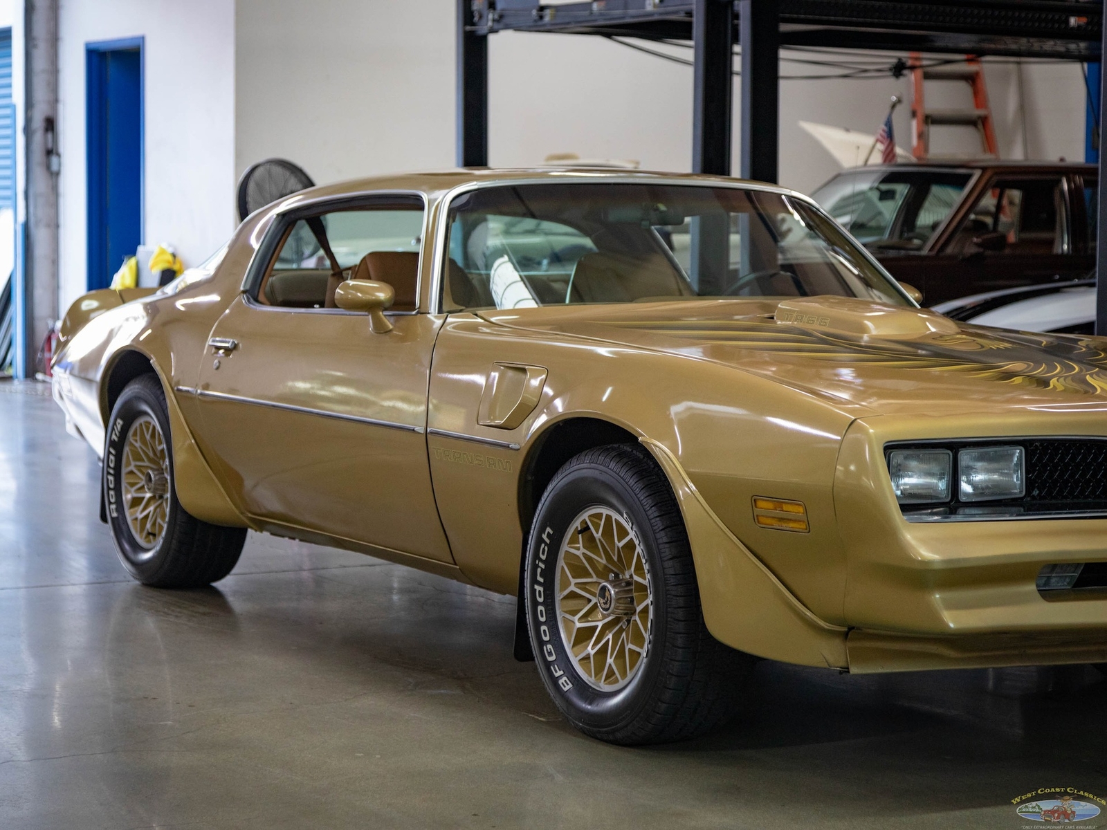 This 1978 Pontiac Firebird Trans Am is finished in its original 'Solar Gold' over Camel Tan vinyl upholstery and is powered by a 400ci W72 V8 paired with a four-speed manual transmission. The engine has been fitted with a GTO-sourced intake manifold and cylinder heads as well as a Ram Air III camshaft, and additional equipment includes a Shaker hood with a Firebird hood decal, front and rear spoilers, 15 snowflake alloy wheels, power steering, power front disc brakes, an aftermarket exhaust system, and an eight-track radio.