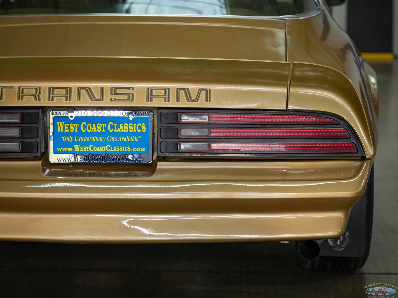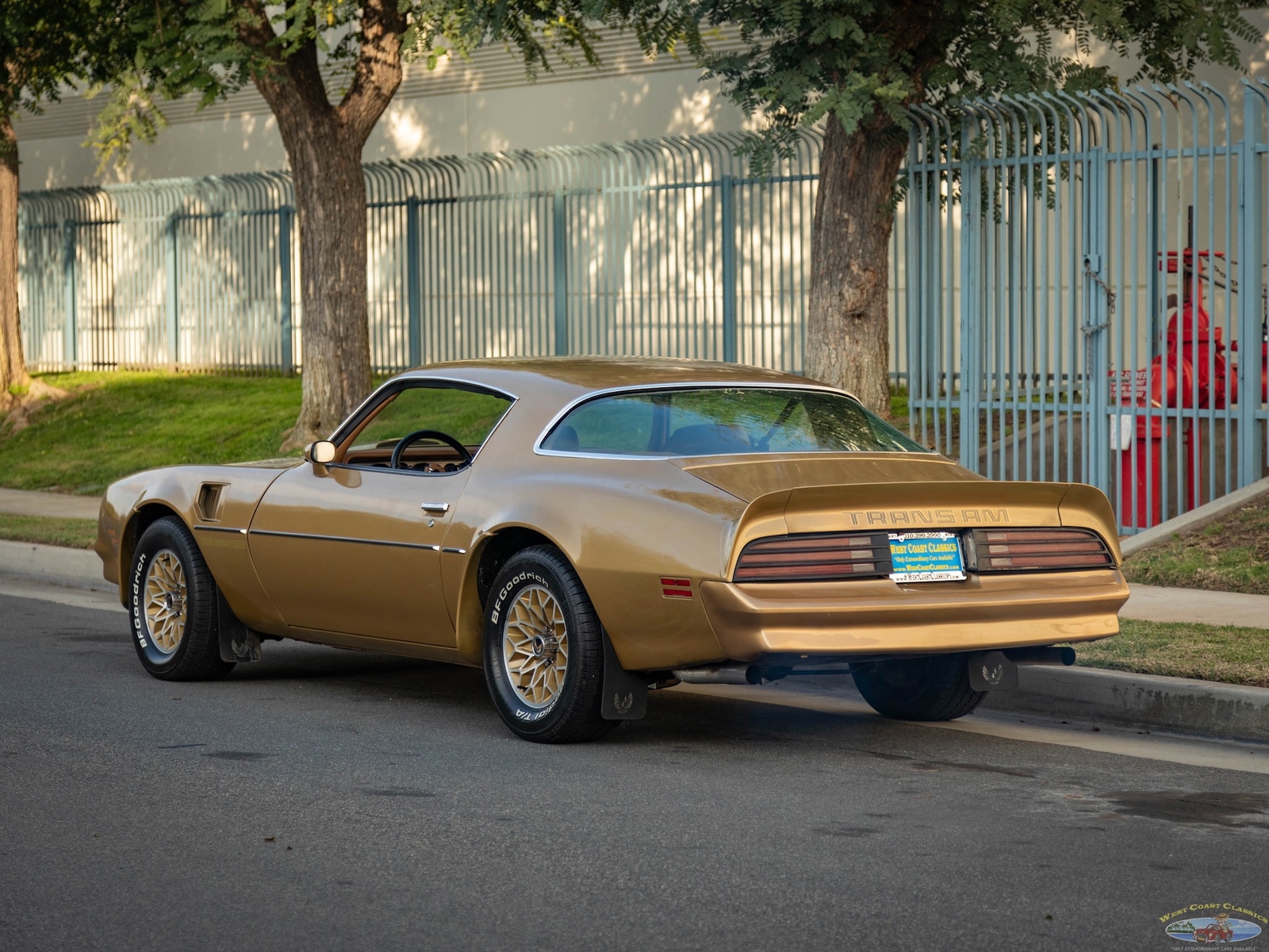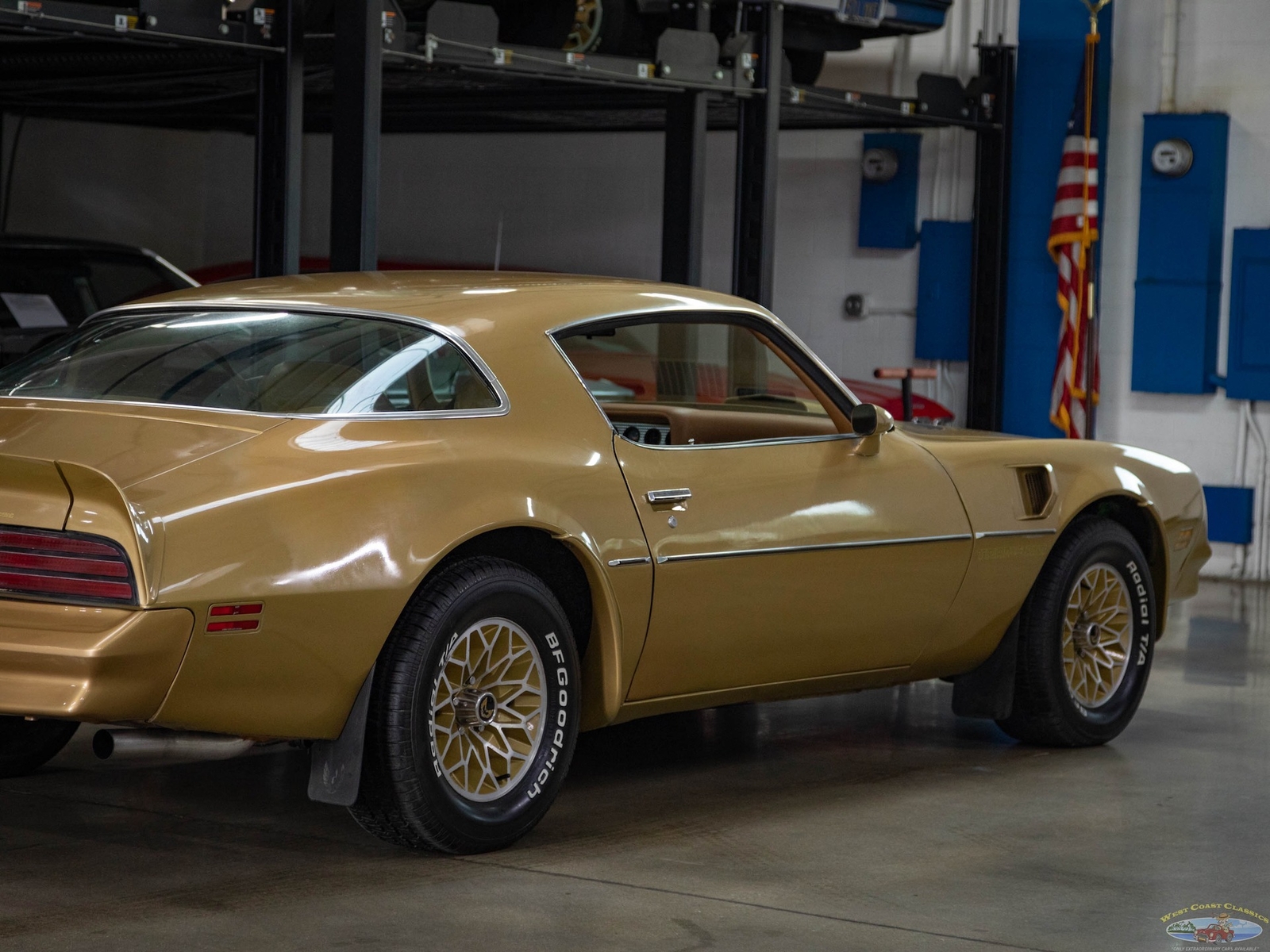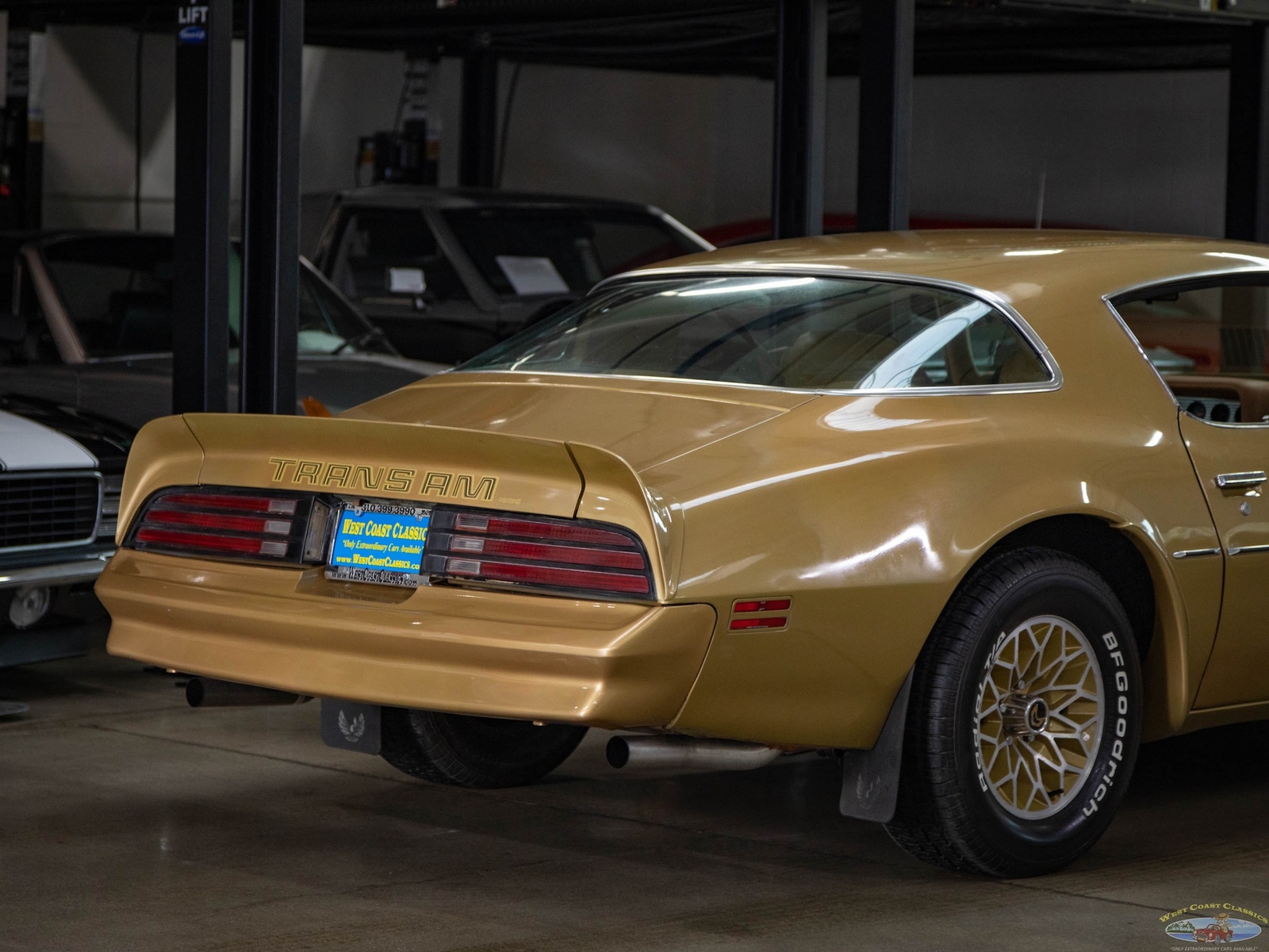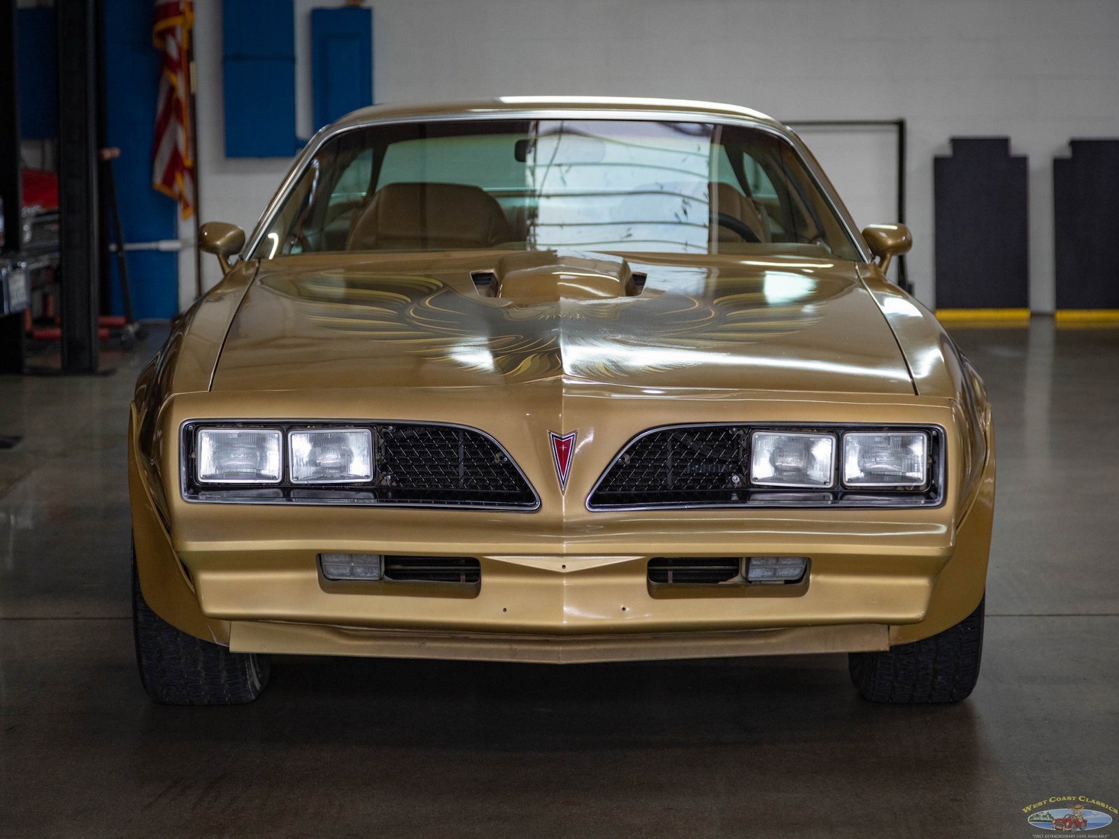 This 1978 Pontiac Firebird Trans Am is finished in its original 'Solar Gold' over Camel Tan vinyl upholstery and is powered by a 400ci W72 V8 paired with a four-speed manual transmission. The engine has been fitted with a GTO-sourced intake manifold and cylinder heads as well as a Ram Air III camshaft, and additional equipment includes a Shaker hood with a Firebird hood decal, front and rear spoilers, 15 snowflake alloy wheels, power steering, power front disc brakes, an aftermarket exhaust system, and an eight-track radio.