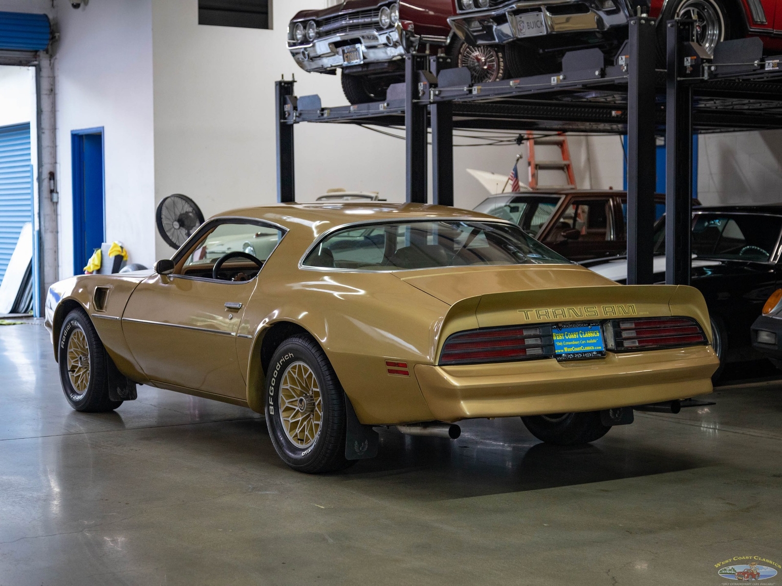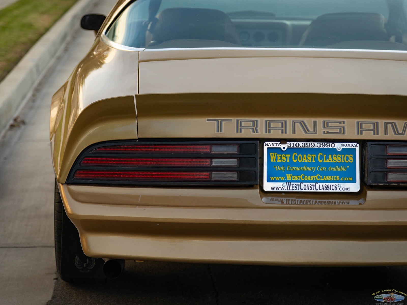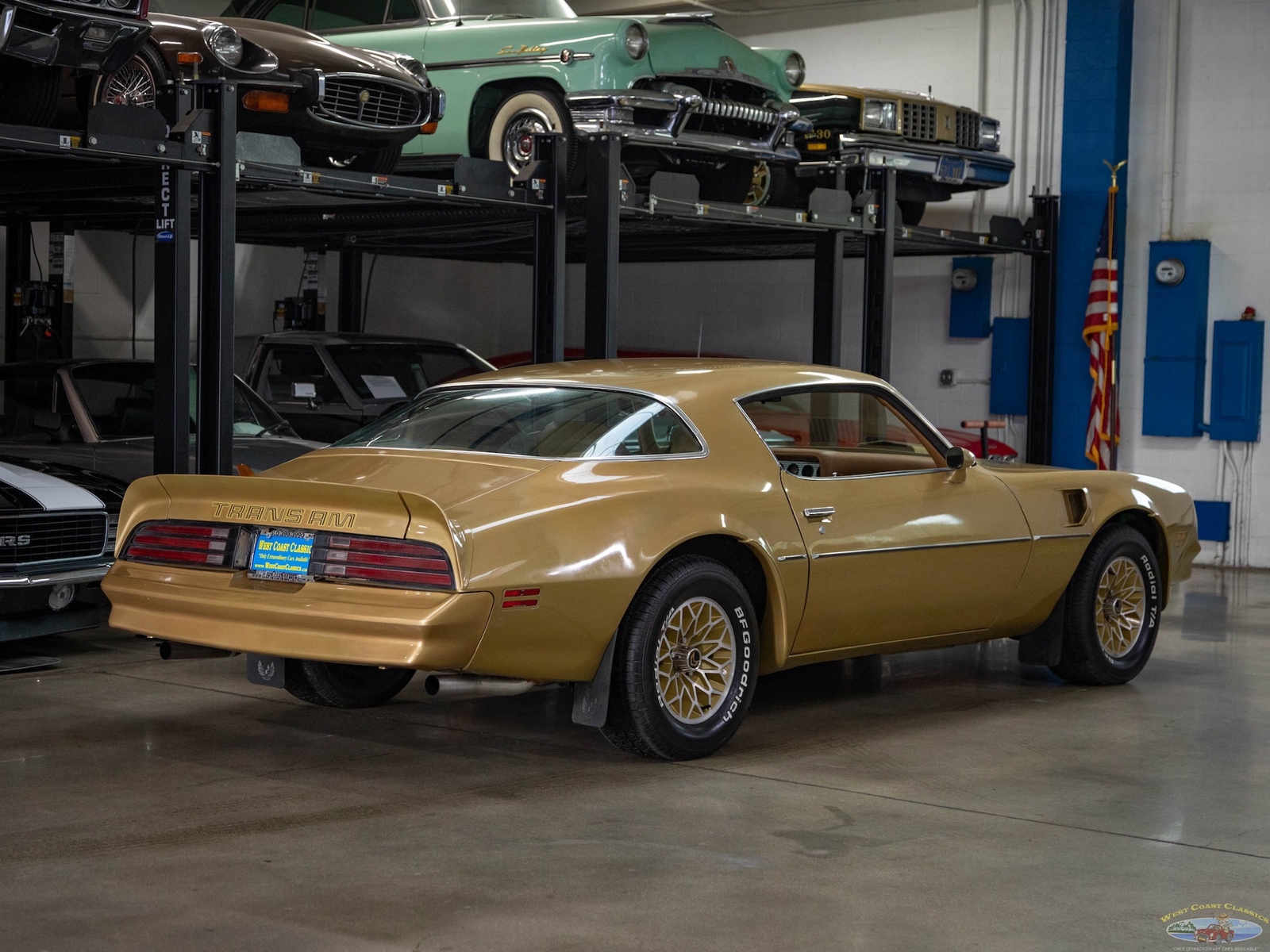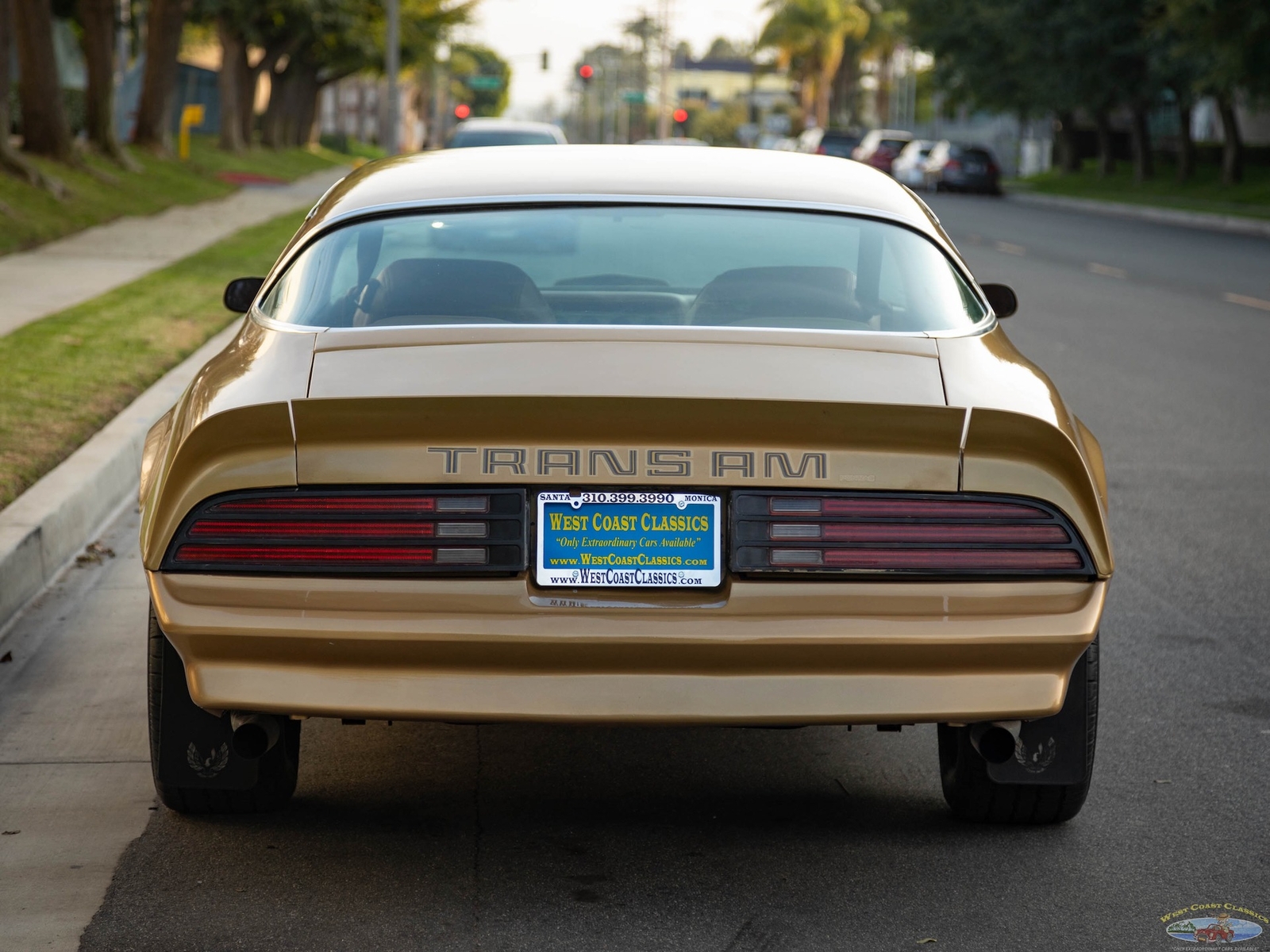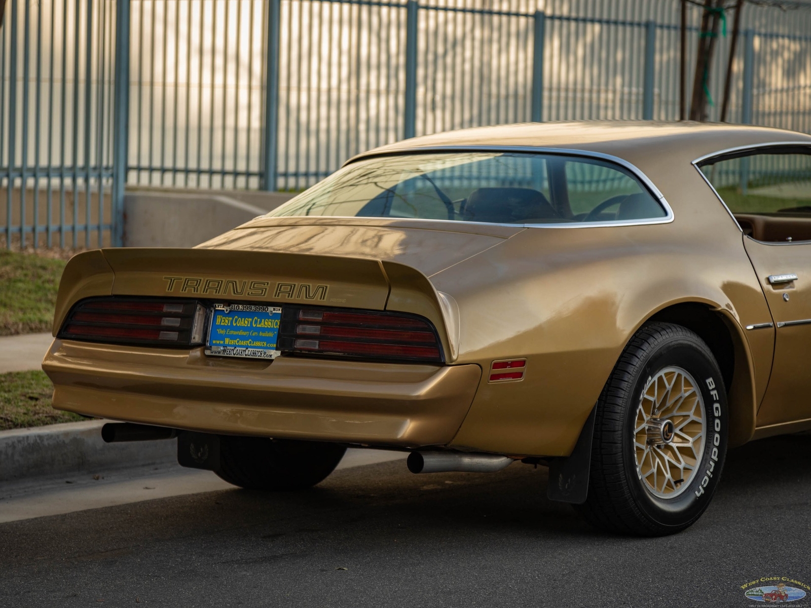This 1978 Pontiac Firebird Trans Am is finished in its original 'Solar Gold' over Camel Tan vinyl upholstery and is powered by a 400ci W72 V8 paired with a four-speed manual transmission. The engine has been fitted with a GTO-sourced intake manifold and cylinder heads as well as a Ram Air III camshaft, and additional equipment includes a Shaker hood with a Firebird hood decal, front and rear spoilers, 15 snowflake alloy wheels, power steering, power front disc brakes, an aftermarket exhaust system, and an eight-track radio.