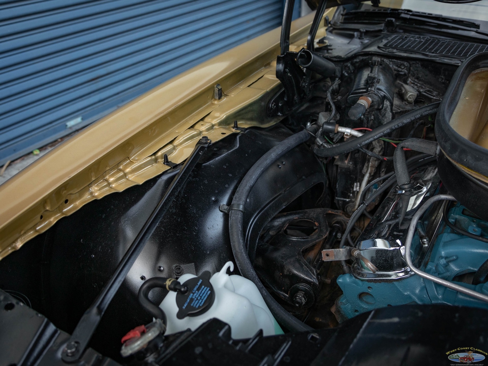 Please note that the air conditioning system components have been removed. The leather-wrapped steering wheel fronts a 100-mph speedometer, a 6k-rpm tachometer, an analog clock, and auxiliary gauges for oil pressure, coolant temperature, fuel level, and voltage. The five-digit odometer shows some 97k miles.The 400ci W72 V8 breathes through an Edelbrock carburetor and has reportedly been fitted with an intake manifold and cylinder heads from a 1970 GTO as well as a Ram Air III camshaft. Power is routed to the rear wheels through a four-speed manual transmission. An aftermarket exhaust system has been fitted utilizing Pypes Turbo Pro mufflers. The seller notes that the clutch components were reportedly replaced under previous ownership. A copy of the original dealer invoice shows initial delivery to Stallings Motors in Globe, Arizona, and lists factory equipment, colors, and an MSRP of $7,609.