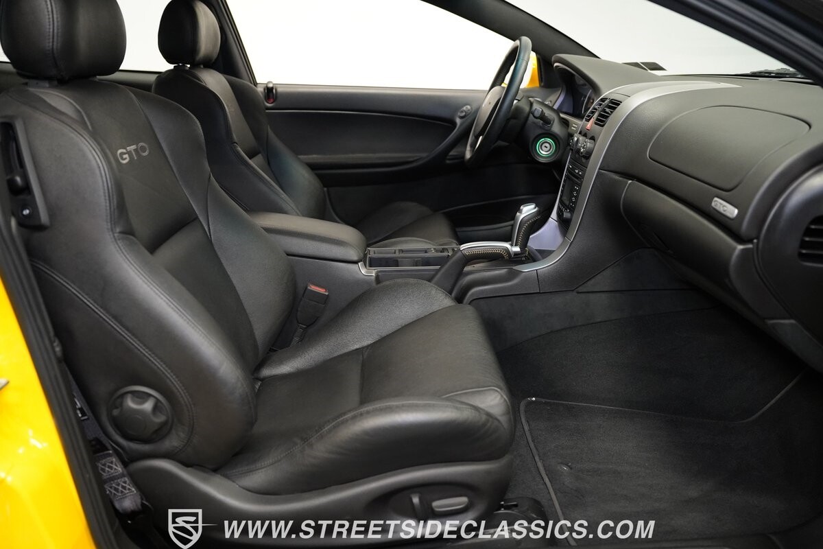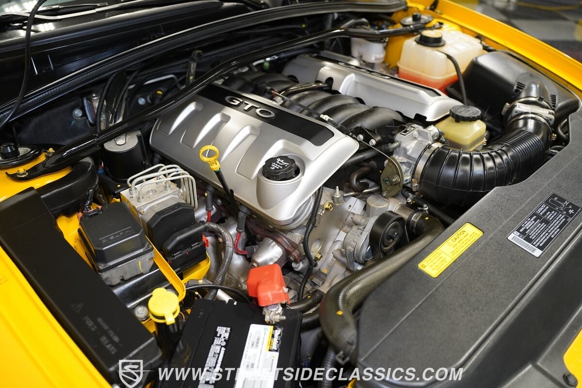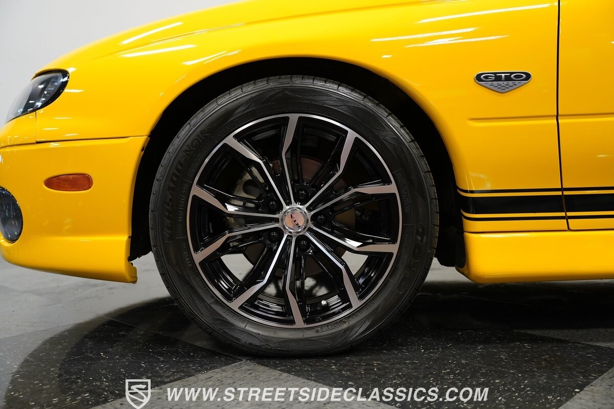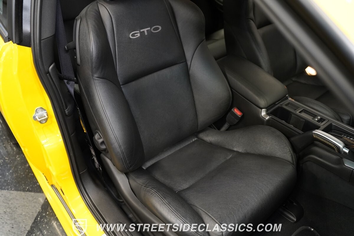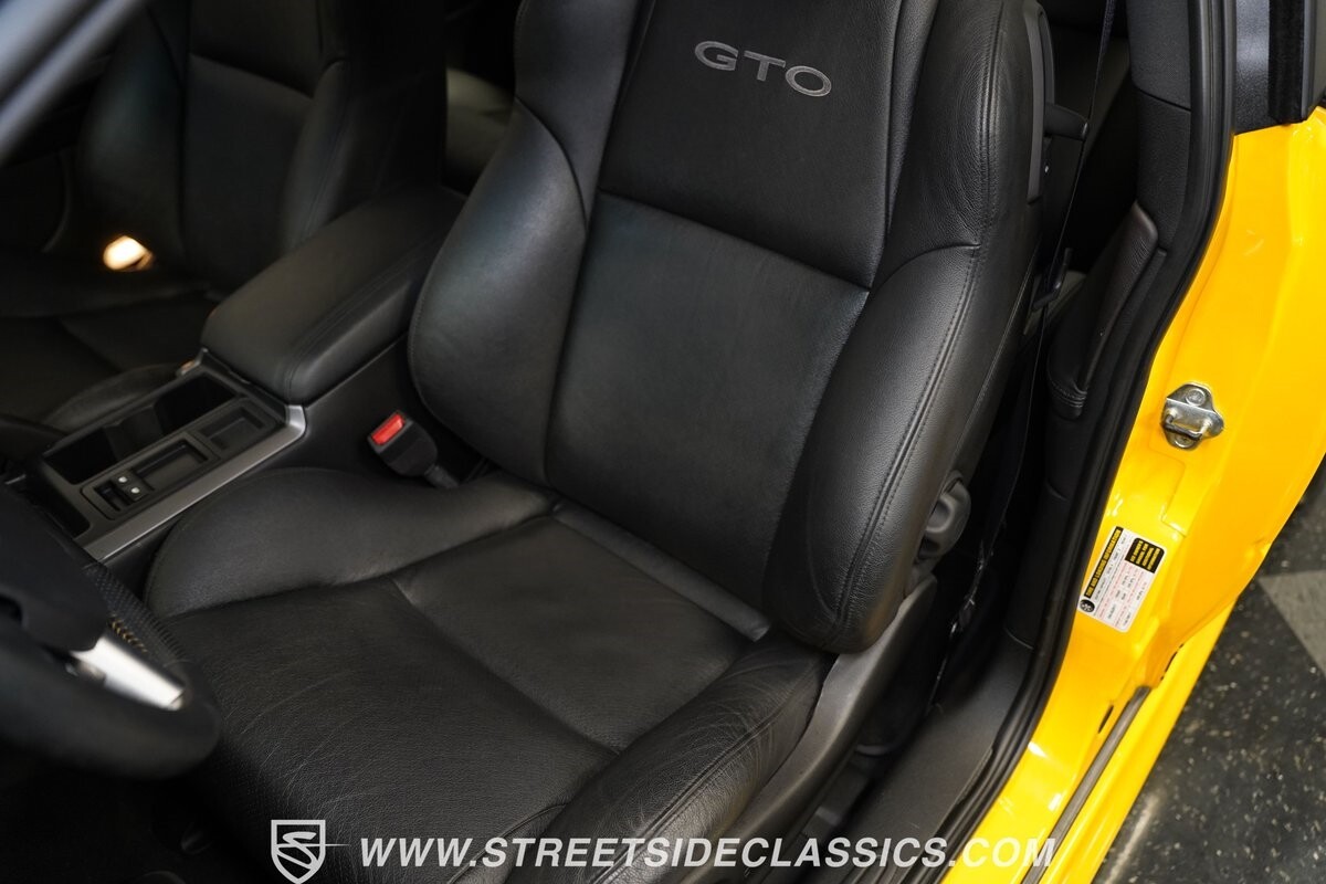 With 3,065 actual miles on the odometer, this car is barely broken in. The 5.7-liter LS1 makes an impressive 350 horsepower and 365 pound-feet of torque and is backed by a believed-original 4L60E four-speed automatic transmission that sends power to the rear Toyo Versado 245/45R-17 rubber wheels (purchased in 2023). This particular GTO is outfitted with a beautiful set of RTX aftermarket wheels. The original wheels and tires will be included with the purchase of the car, for those that are more purist collectors. Another collectible fact is that this Yellow Jacket/auto transmission-equipped GTO is believed to be one of less than
