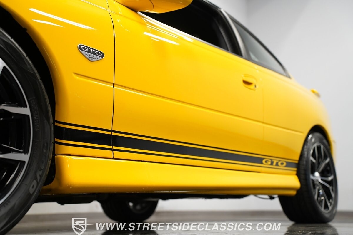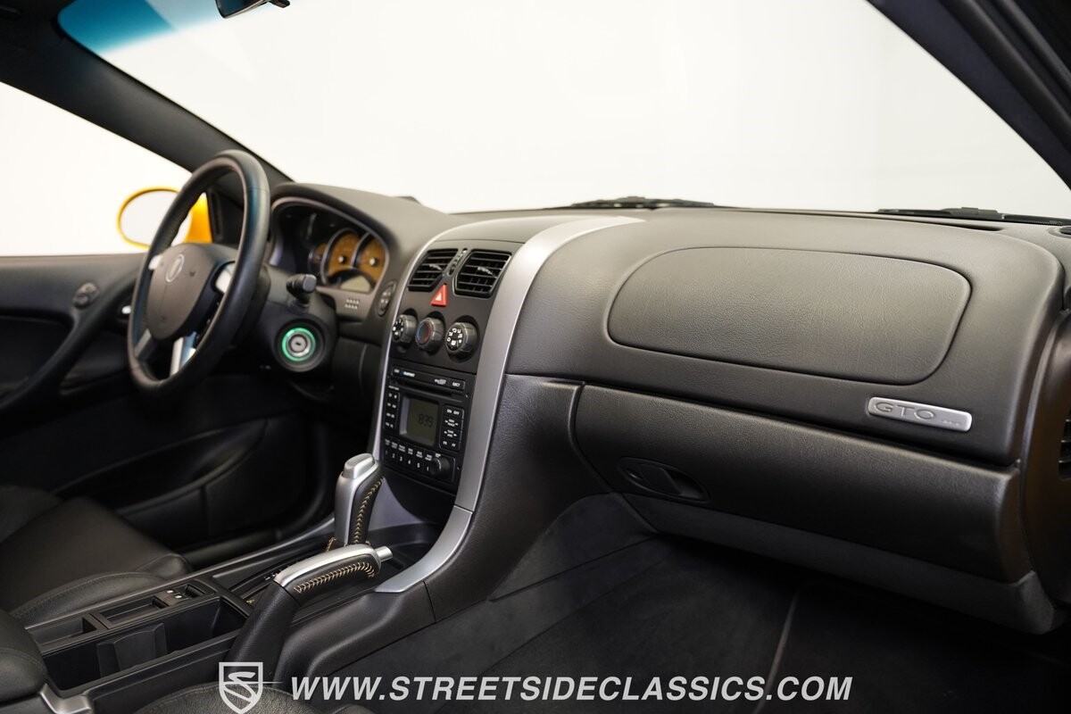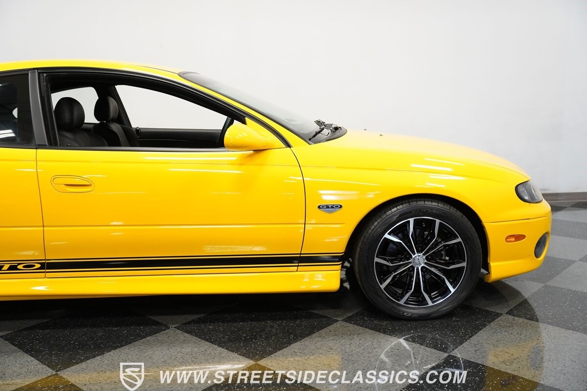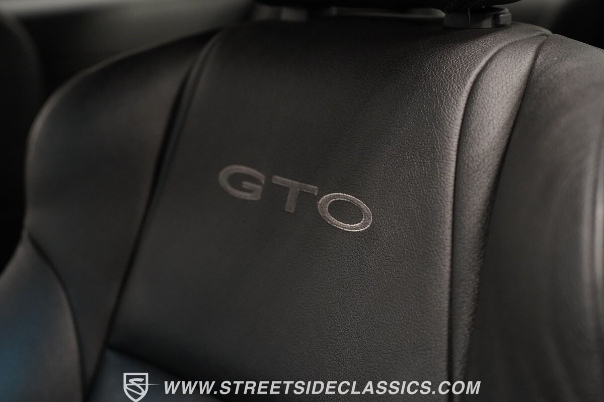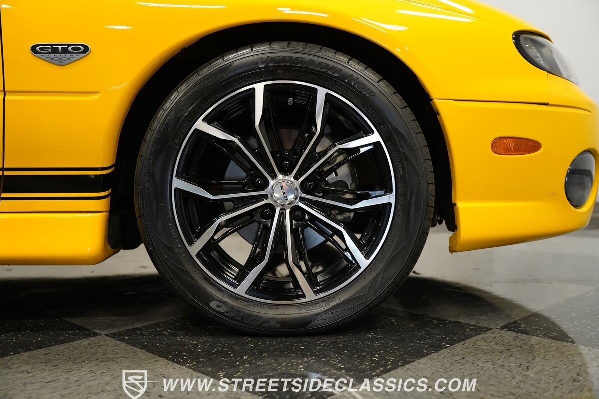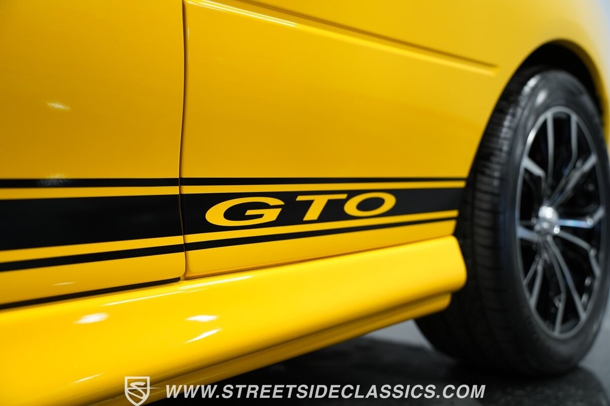 With 3,065 actual miles on the odometer, this car is barely broken in. The 5.7-liter LS1 makes an impressive 350 horsepower and 365 pound-feet of torque and is backed by a believed-original 4L60E four-speed automatic transmission that sends power to the rear Toyo Versado 245/45R-17 rubber wheels (purchased in 2023). This particular GTO is outfitted with a beautiful set of RTX aftermarket wheels. The original wheels and tires will be included with the purchase of the car, for those that are more purist collectors. Another collectible fact is that this Yellow Jacket/auto transmission-equipped GTO is believed to be one of less than
