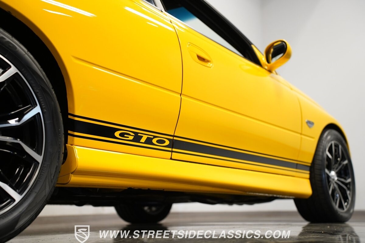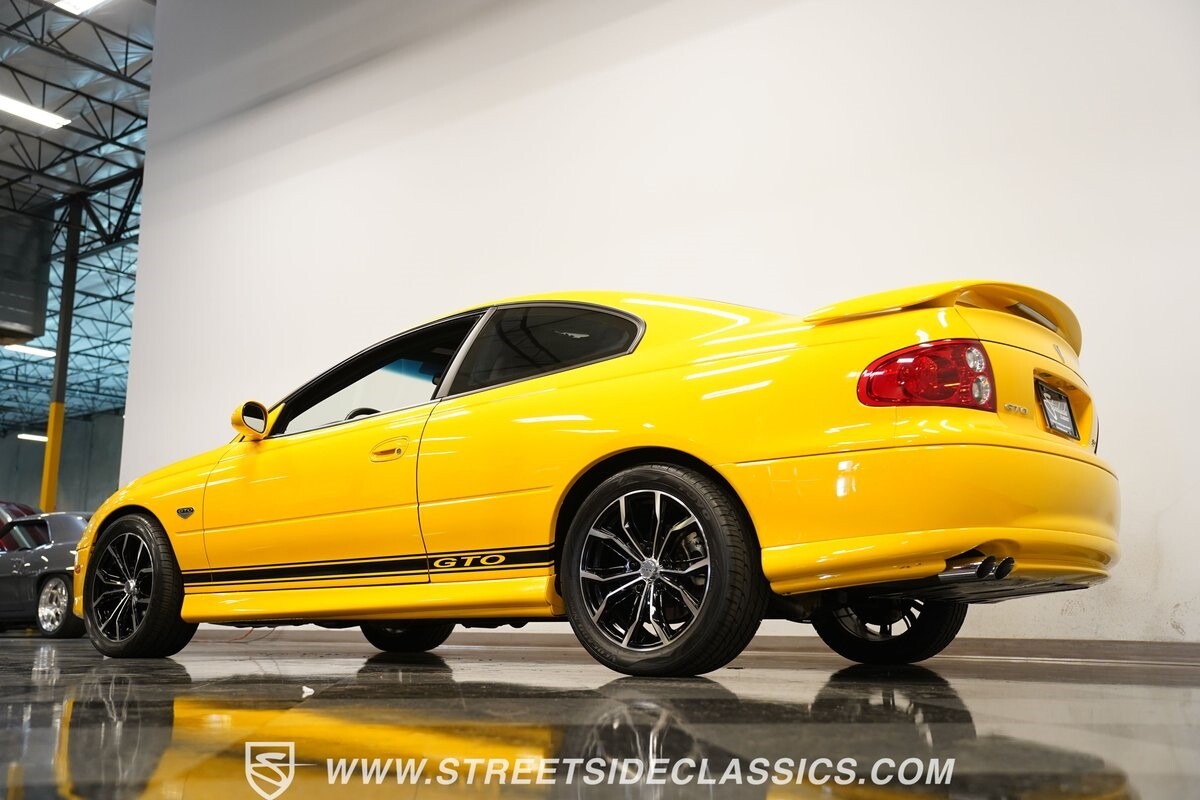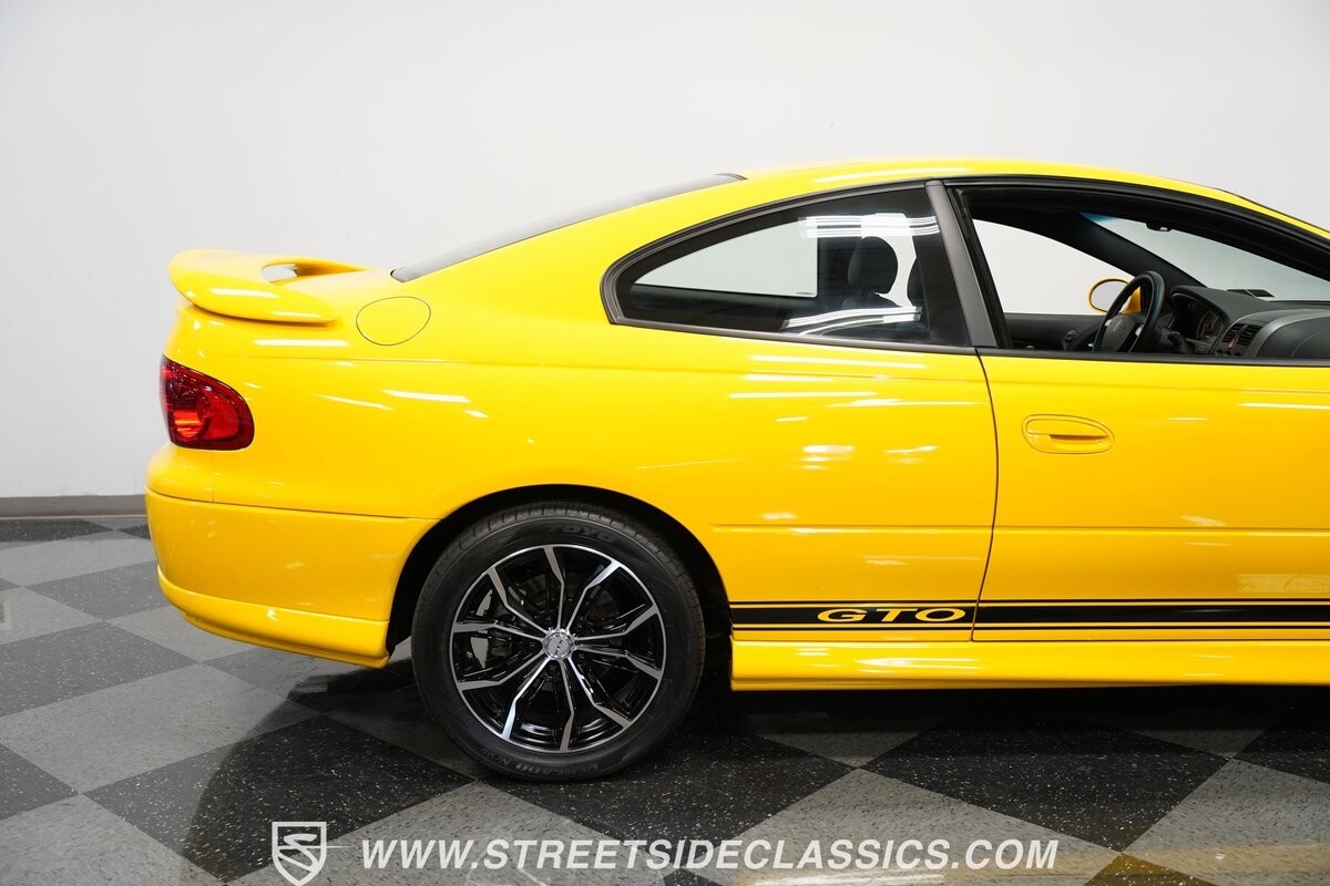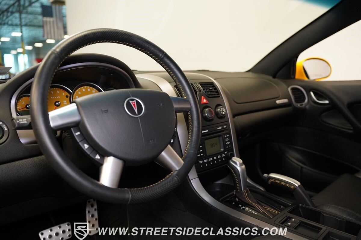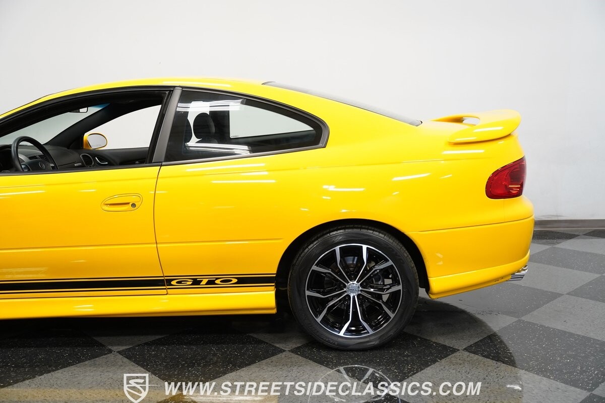 With 3,065 actual miles on the odometer, this car is barely broken in. The 5.7-liter LS1 makes an impressive 350 horsepower and 365 pound-feet of torque and is backed by a believed-original 4L60E four-speed automatic transmission that sends power to the rear Toyo Versado 245/45R-17 rubber wheels (purchased in 2023). This particular GTO is outfitted with a beautiful set of RTX aftermarket wheels. The original wheels and tires will be included with the purchase of the car, for those that are more purist collectors. Another collectible fact is that this Yellow Jacket/auto transmission-equipped GTO is believed to be one of less than
