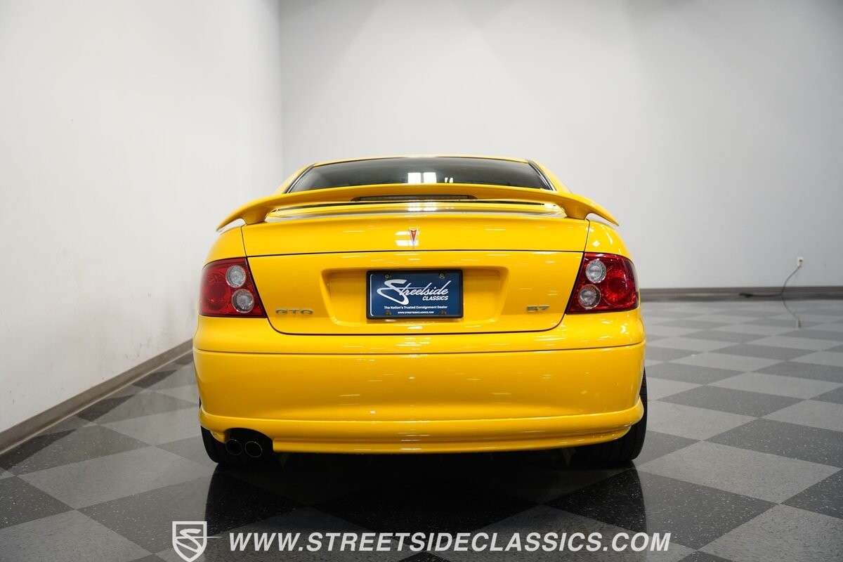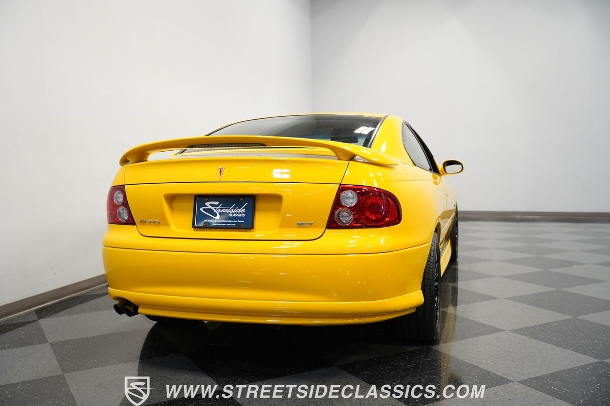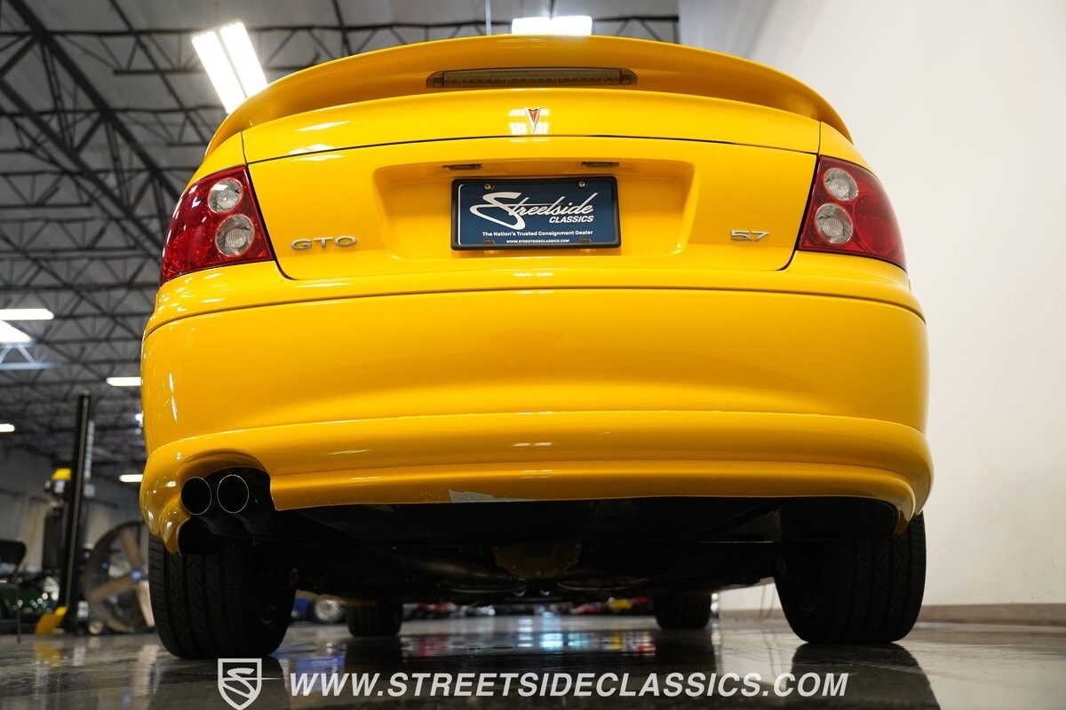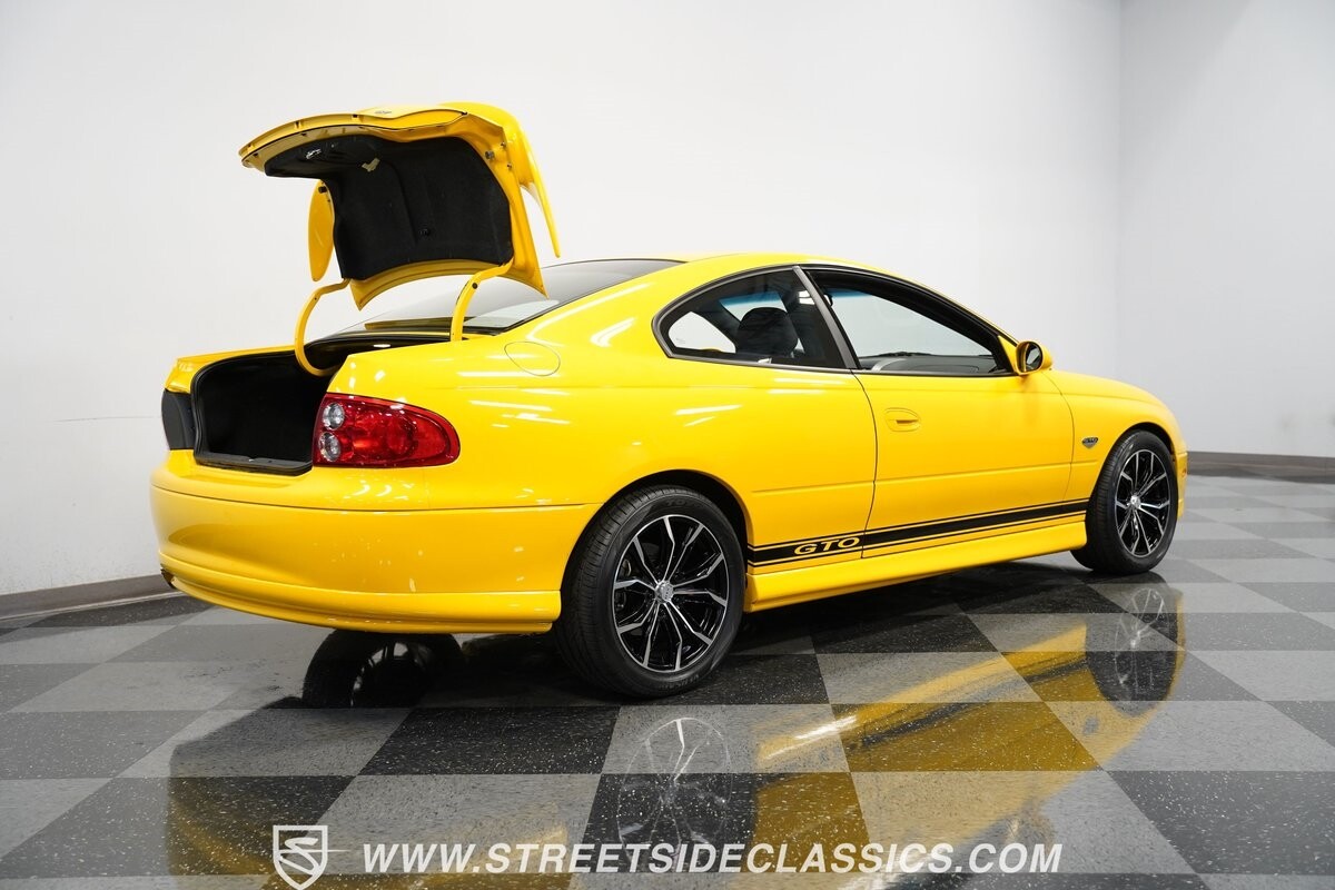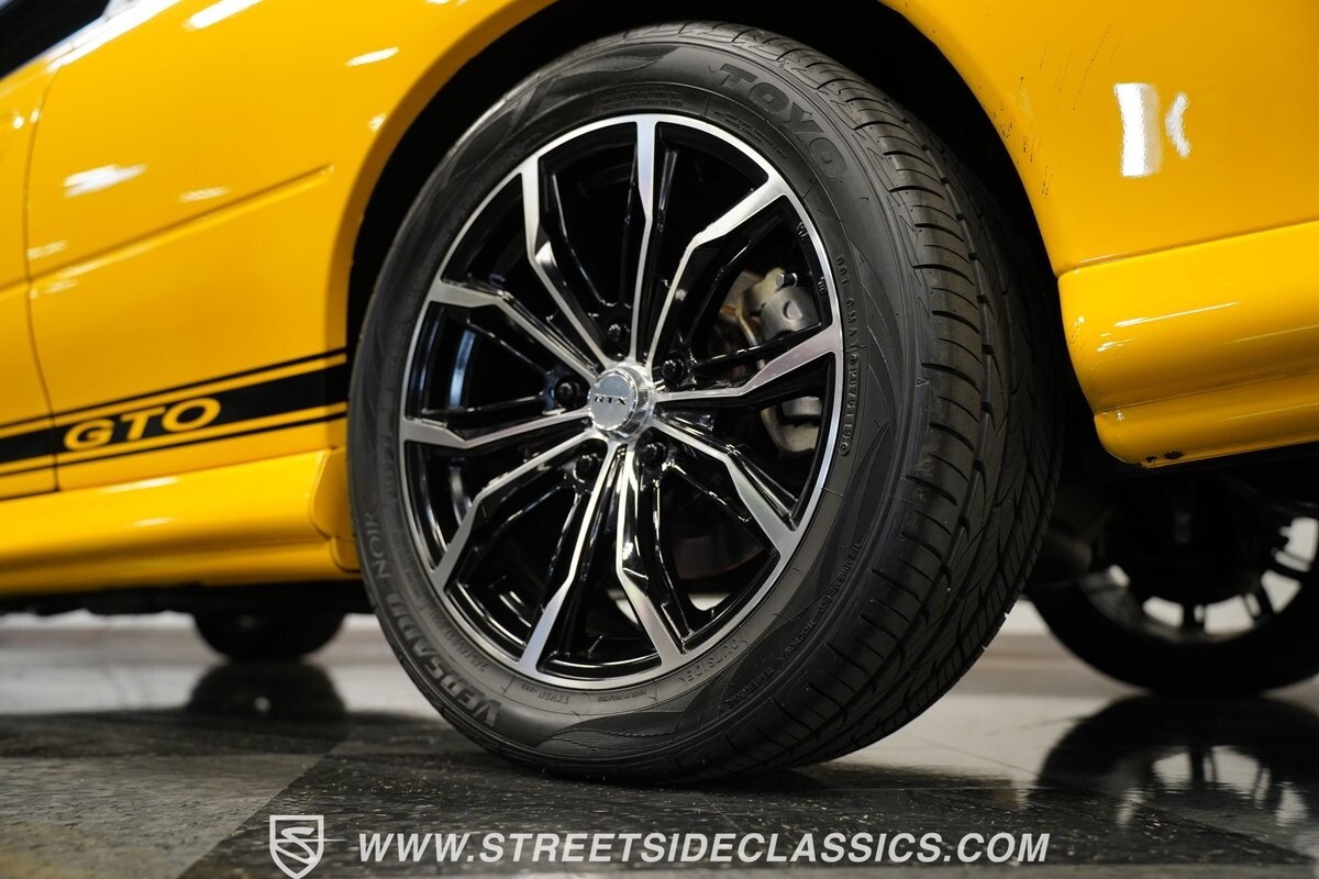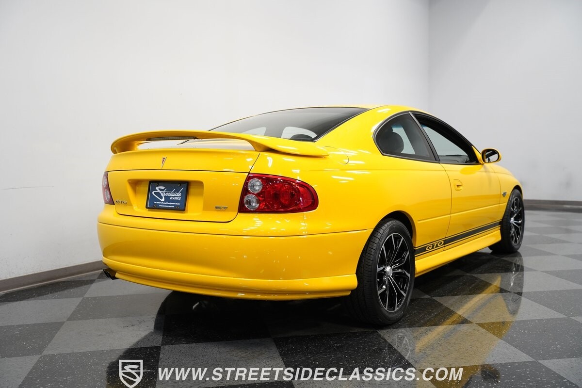 With 3,065 actual miles on the odometer, this car is barely broken in. The 5.7-liter LS1 makes an impressive 350 horsepower and 365 pound-feet of torque and is backed by a believed-original 4L60E four-speed automatic transmission that sends power to the rear Toyo Versado 245/45R-17 rubber wheels (purchased in 2023). This particular GTO is outfitted with a beautiful set of RTX aftermarket wheels. The original wheels and tires will be included with the purchase of the car, for those that are more purist collectors. Another collectible fact is that this Yellow Jacket/auto transmission-equipped GTO is believed to be one of less than