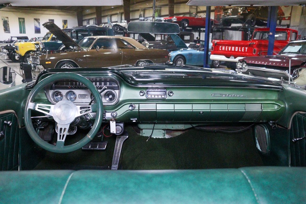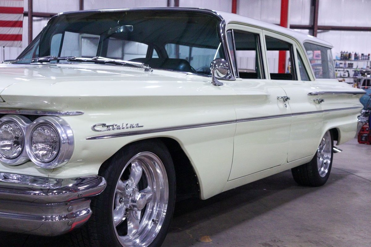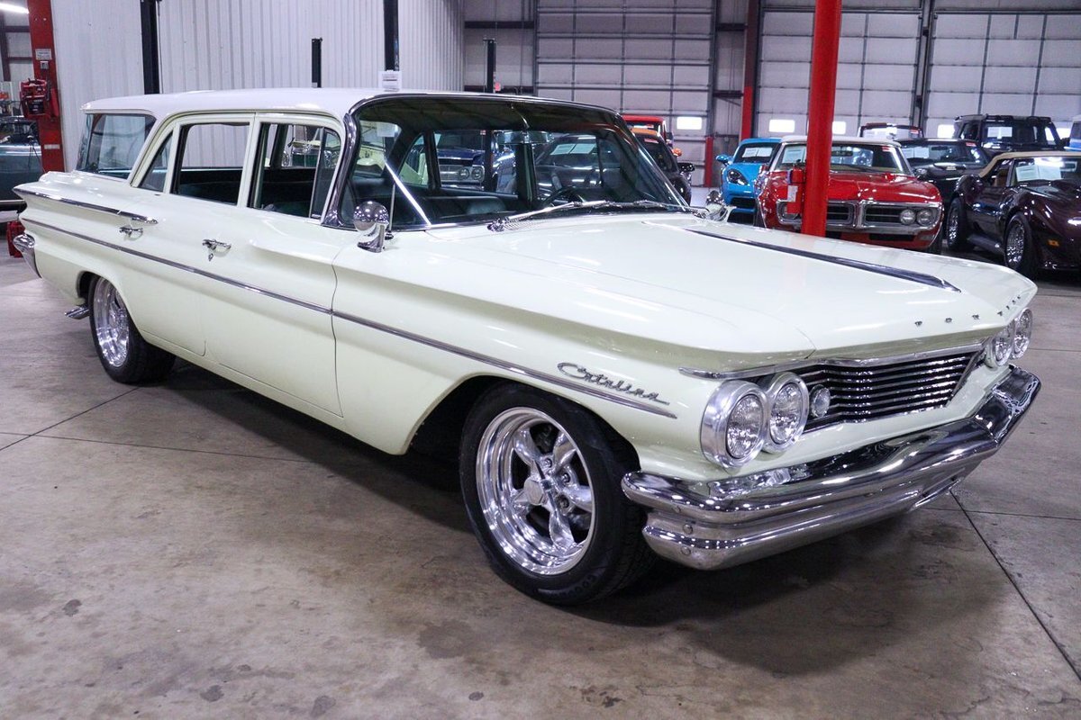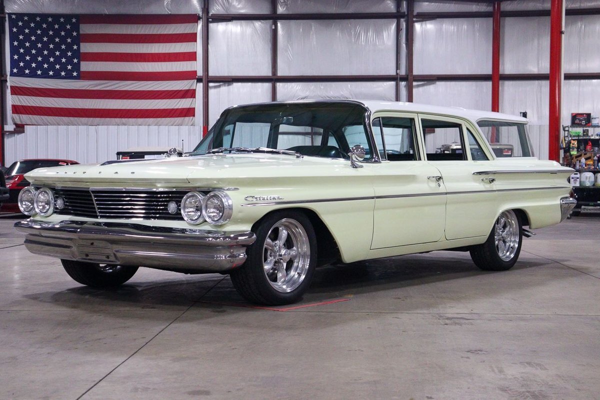 GR Auto Gallery is pleased to offer this awesome 1960 Pontiac Catalina Safari Station Wagon for world consideration. This wagon has spent the majority of its life in California. It presents itself in its original factory color, Stardust Yellow over green interior. It is powered by its 389 CID V8 with Tri-power carbs and intake, automatic transmission and rear wheel drive. Options include: Power steering, power brakes (front disc conversion), power rear window, dual exhaust, factory AM Super Deluxe Radio, 8 place seating with rear facing 3rd row, factory rear bumper steps, American Racing polished aluminum wheels, etc.