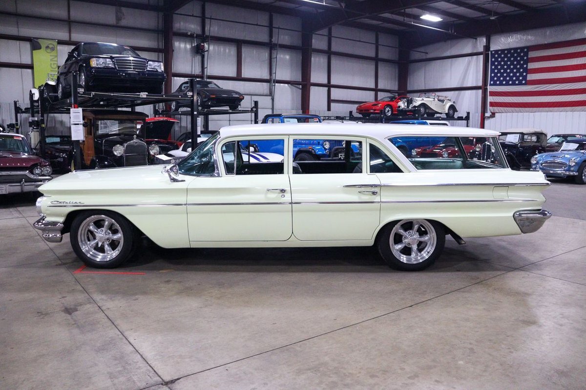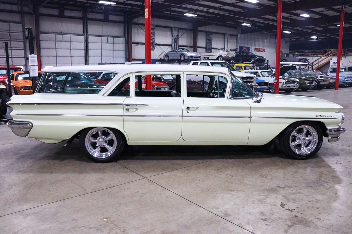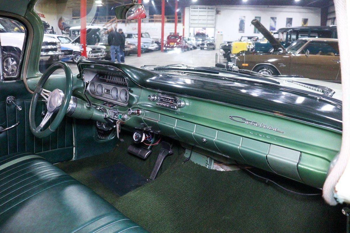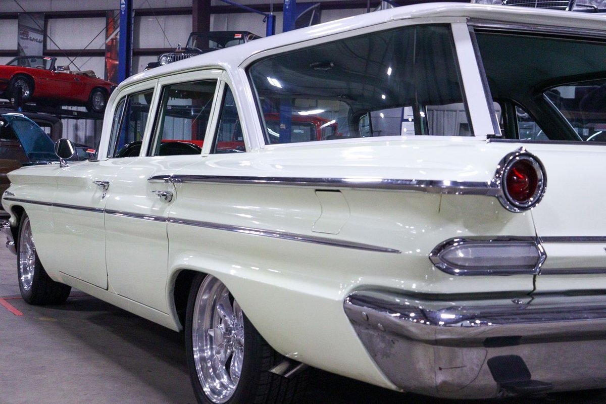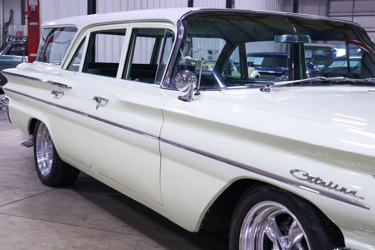 GR Auto Gallery is pleased to offer this awesome 1960 Pontiac Catalina Safari Station Wagon for world consideration. This wagon has spent the majority of its life in California. It presents itself in its original factory color, Stardust Yellow over green interior. It is powered by its 389 CID V8 with Tri-power carbs and intake, automatic transmission and rear wheel drive. Options include: Power steering, power brakes (front disc conversion), power rear window, dual exhaust, factory AM Super Deluxe Radio, 8 place seating with rear facing 3rd row, factory rear bumper steps, American Racing polished aluminum wheels, etc.