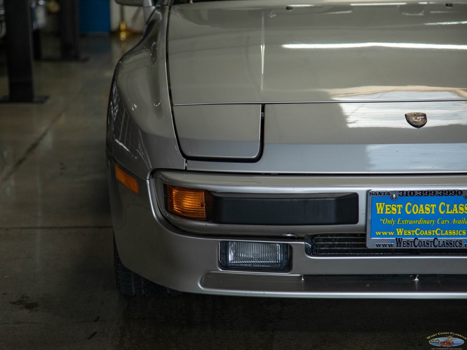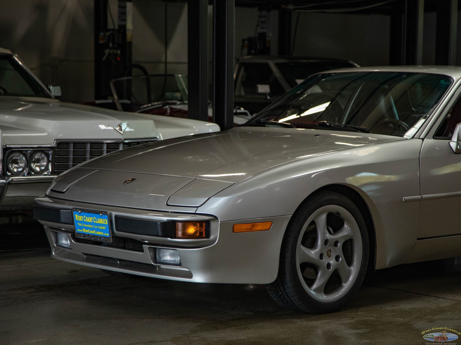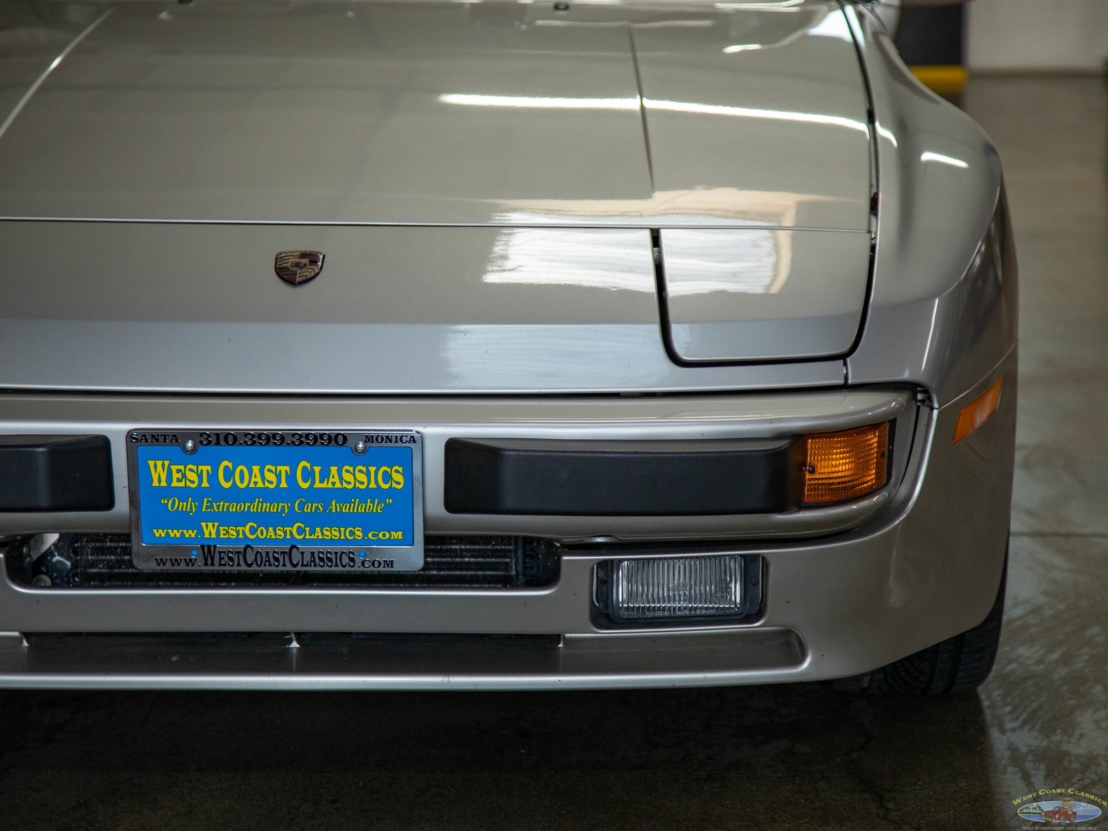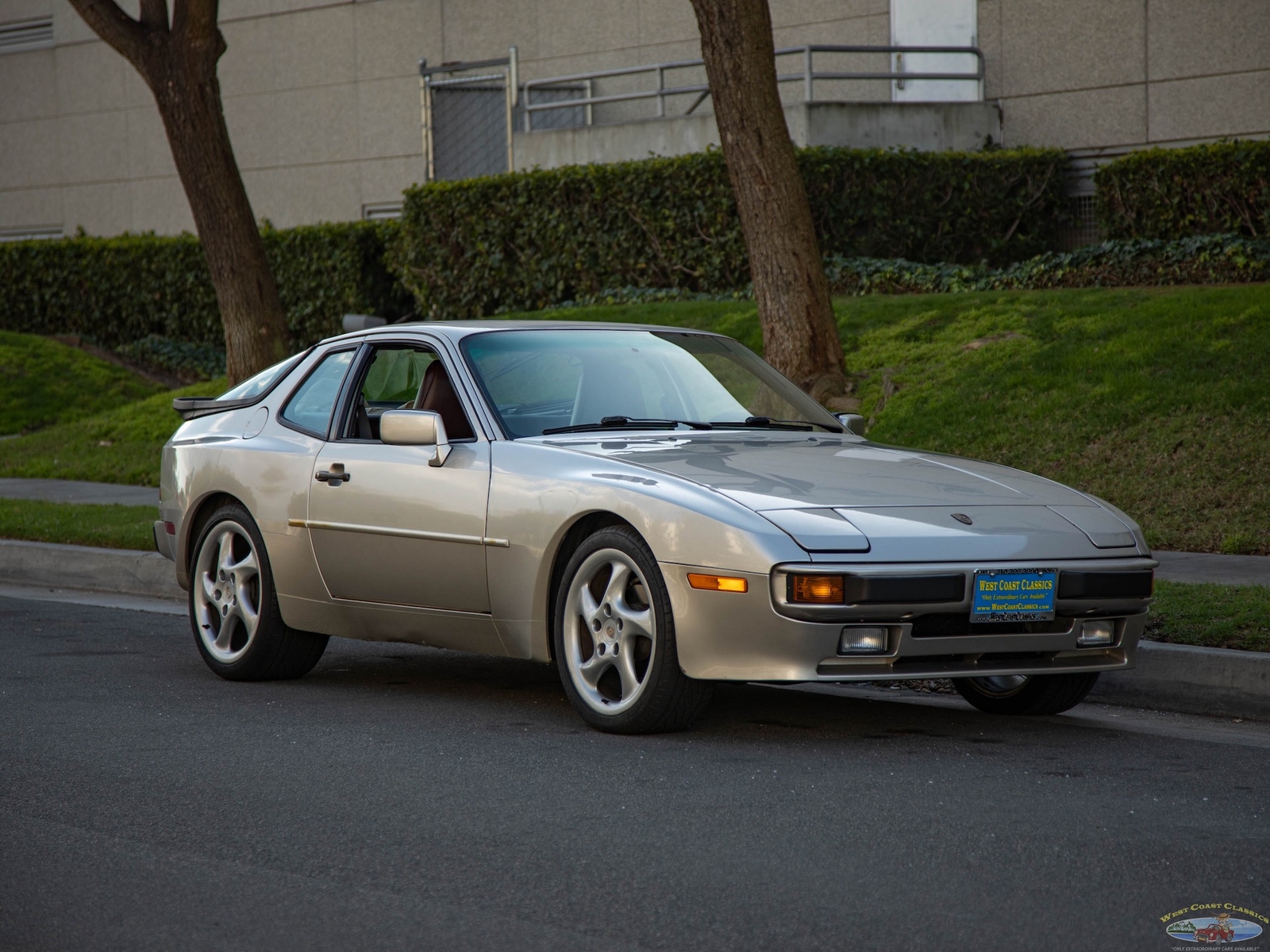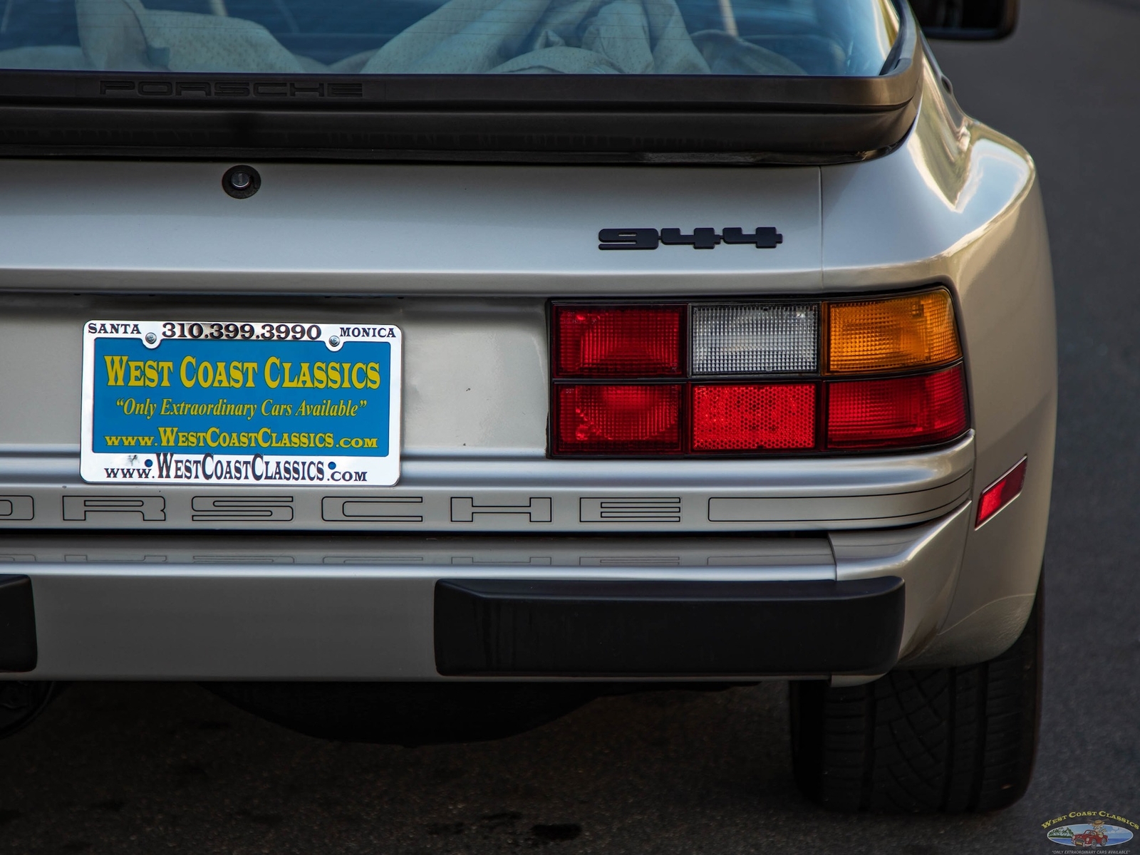 West Coast Classics are proud to present an absolutely exceptional example of this 1987 Porsche 'late model' 944 2.5L 4 cylinder 5 speed manual Coupe! Finished in the beautiful color combination of its original 'Zermatt Silver Metallic' factory paint with its all original 'Burgundy/Maroon' leather interior and purchased with rare factory options including the 5 speed manual transmission, air conditioning, removable large sunroof, desirable 15x7 and 15x8 turbo wheels, stabilizer bars, protective side moldings, leather steering wheel, power windows, power driver seat, rear window wiper, automatic speed control and rear anti roll bar!