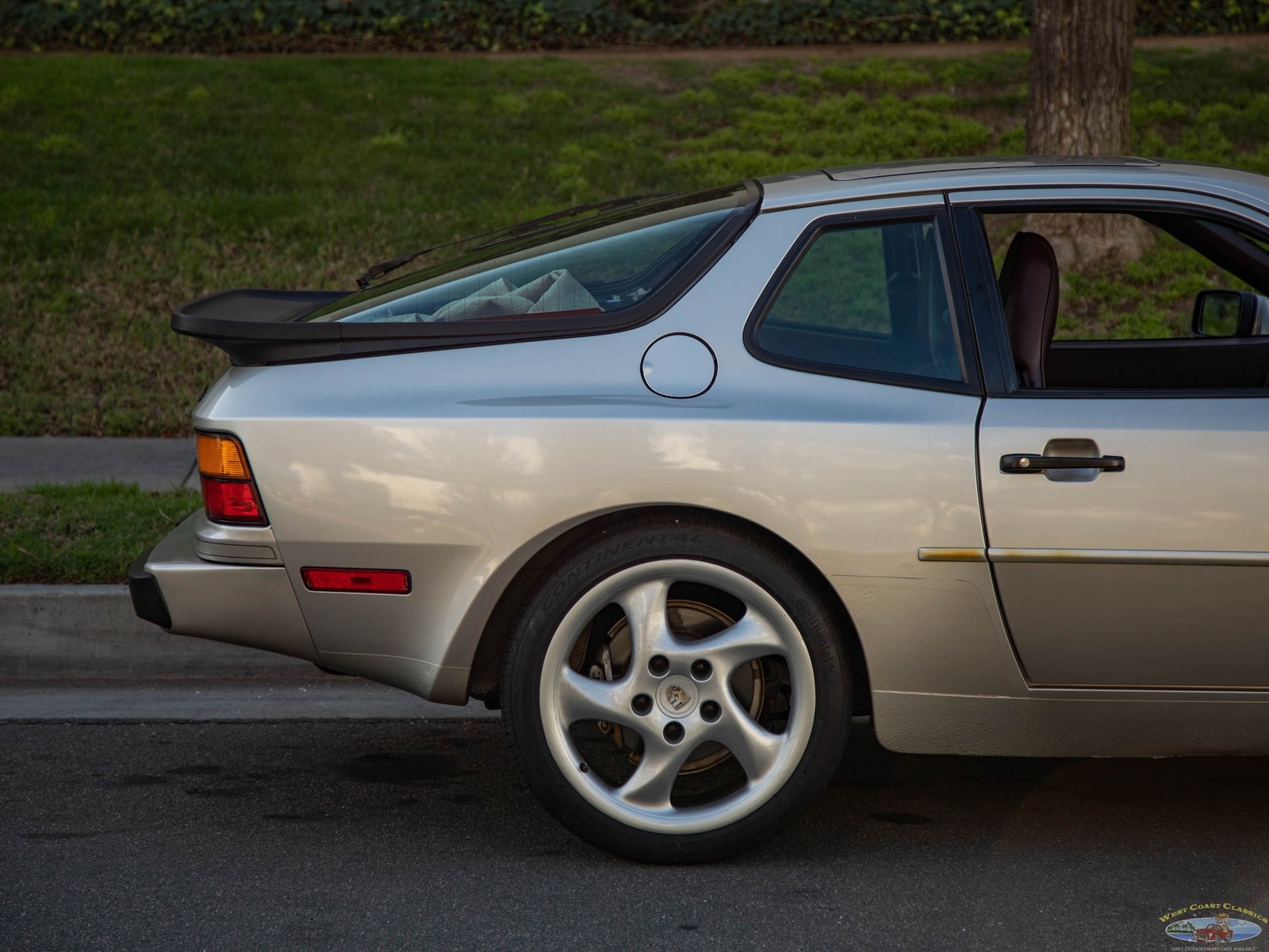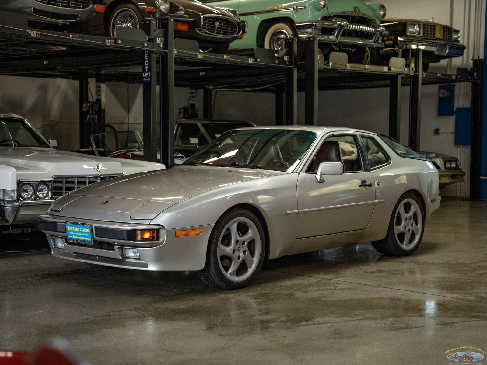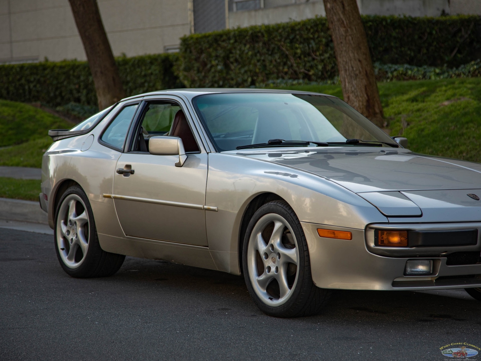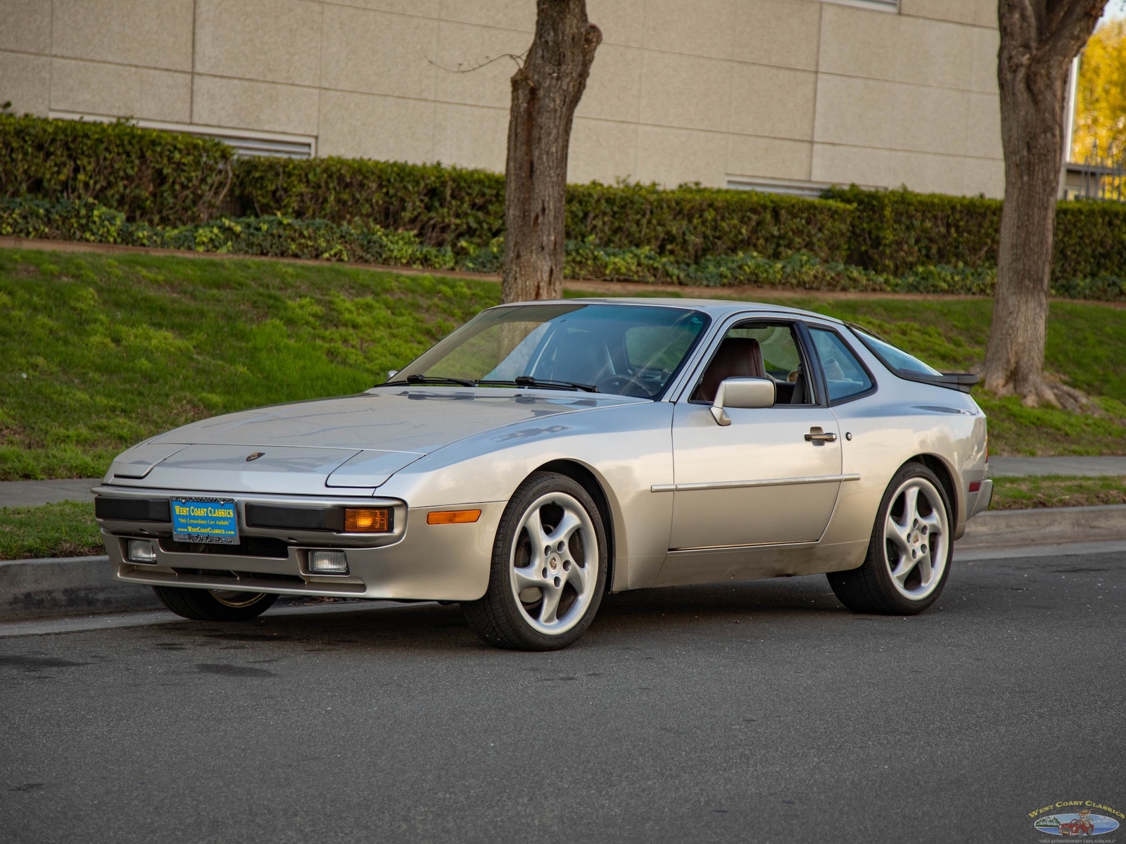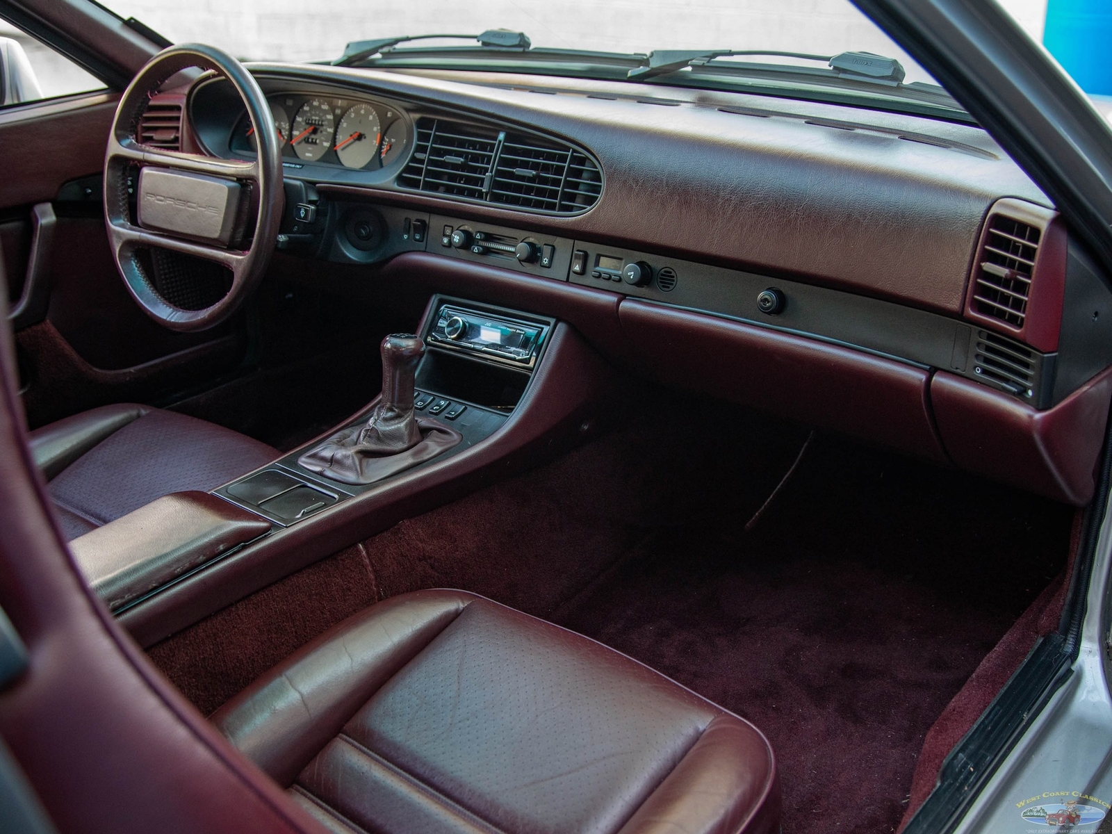 West Coast Classics are proud to present an absolutely exceptional example of this 1987 Porsche 'late model' 944 2.5L 4 cylinder 5 speed manual Coupe! Finished in the beautiful color combination of its original 'Zermatt Silver Metallic' factory paint with its all original 'Burgundy/Maroon' leather interior and purchased with rare factory options including the 5 speed manual transmission, air conditioning, removable large sunroof, desirable 15x7 and 15x8 turbo wheels, stabilizer bars, protective side moldings, leather steering wheel, power windows, power driver seat, rear window wiper, automatic speed control and rear anti roll bar!