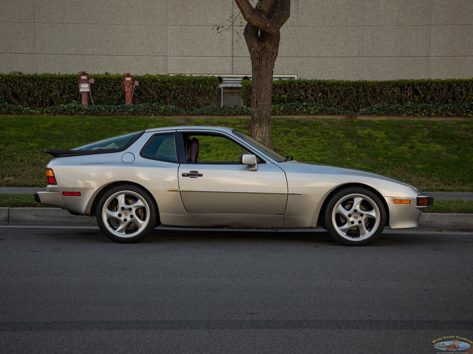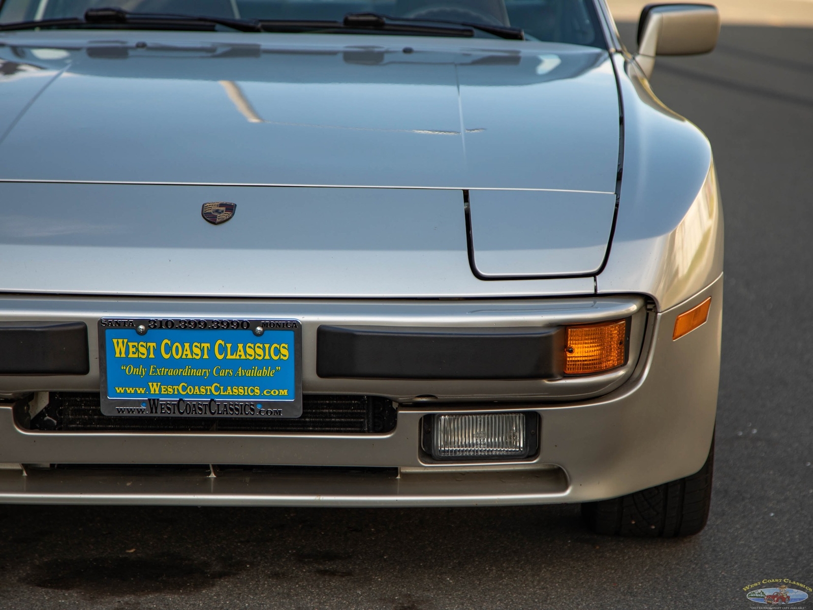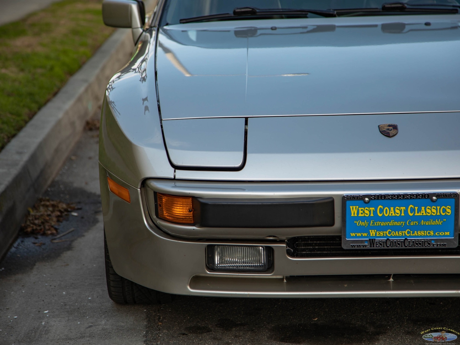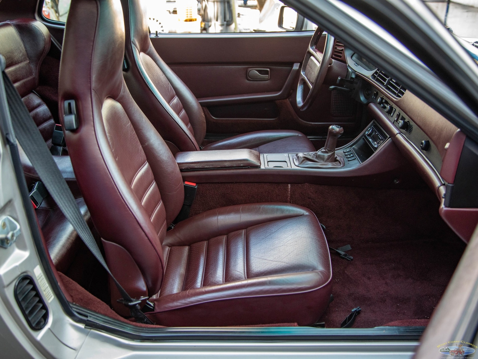 West Coast Classics are proud to present an absolutely exceptional example of this 1987 Porsche 'late model' 944 2.5L 4 cylinder 5 speed manual Coupe! Finished in the beautiful color combination of its original 'Zermatt Silver Metallic' factory paint with its all original 'Burgundy/Maroon' leather interior and purchased with rare factory options including the 5 speed manual transmission, air conditioning, removable large sunroof, desirable 15x7 and 15x8 turbo wheels, stabilizer bars, protective side moldings, leather steering wheel, power windows, power driver seat, rear window wiper, automatic speed control and rear anti roll bar!