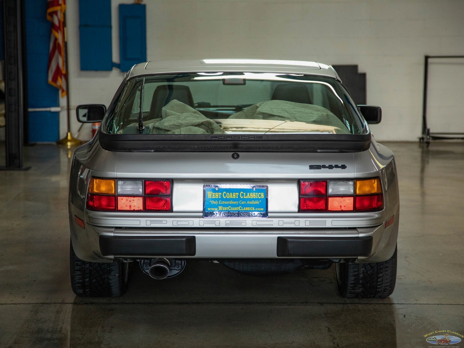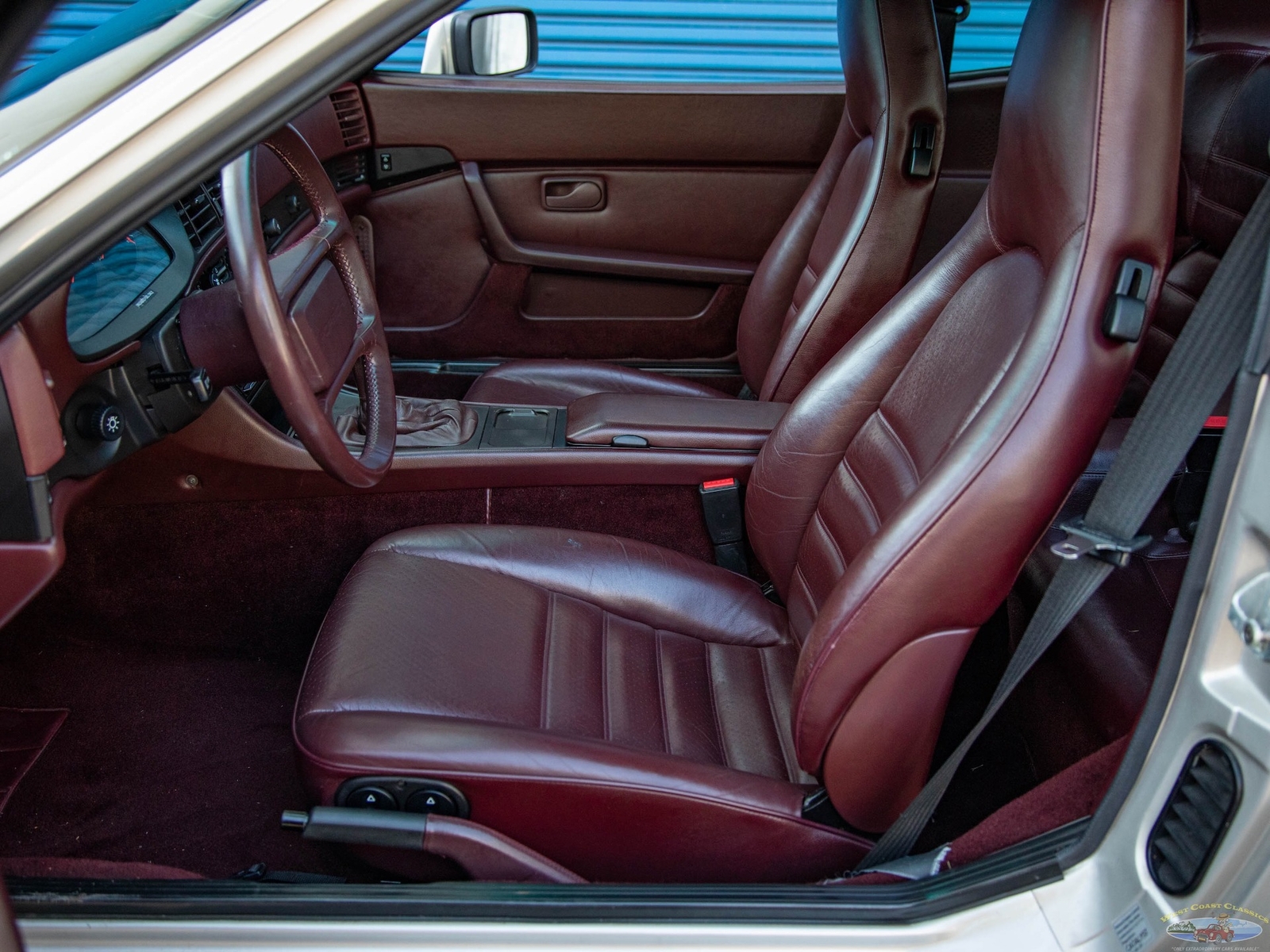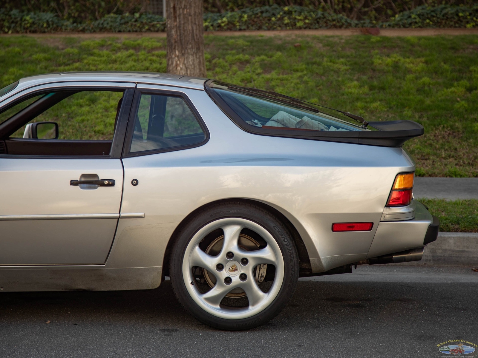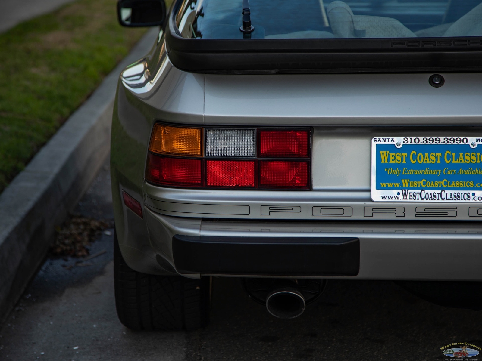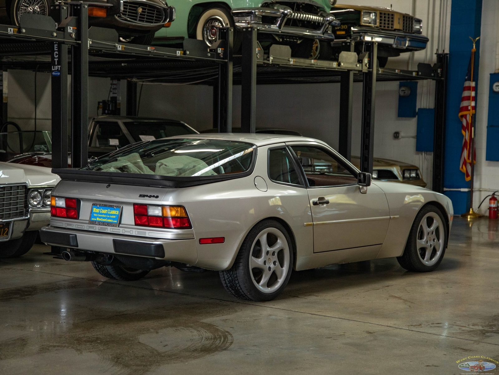West Coast Classics are proud to present an absolutely exceptional example of this 1987 Porsche 'late model' 944 2.5L 4 cylinder 5 speed manual Coupe! Finished in the beautiful color combination of its original 'Zermatt Silver Metallic' factory paint with its all original 'Burgundy/Maroon' leather interior and purchased with rare factory options including the 5 speed manual transmission, air conditioning, removable large sunroof, desirable 15x7 and 15x8 turbo wheels, stabilizer bars, protective side moldings, leather steering wheel, power windows, power driver seat, rear window wiper, automatic speed control and rear anti roll bar!