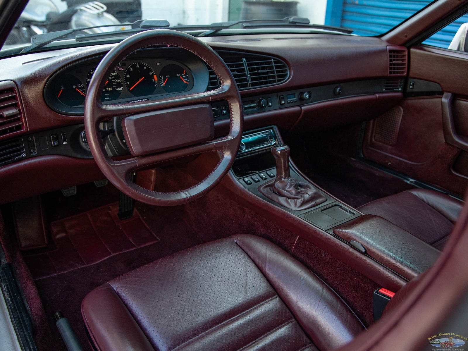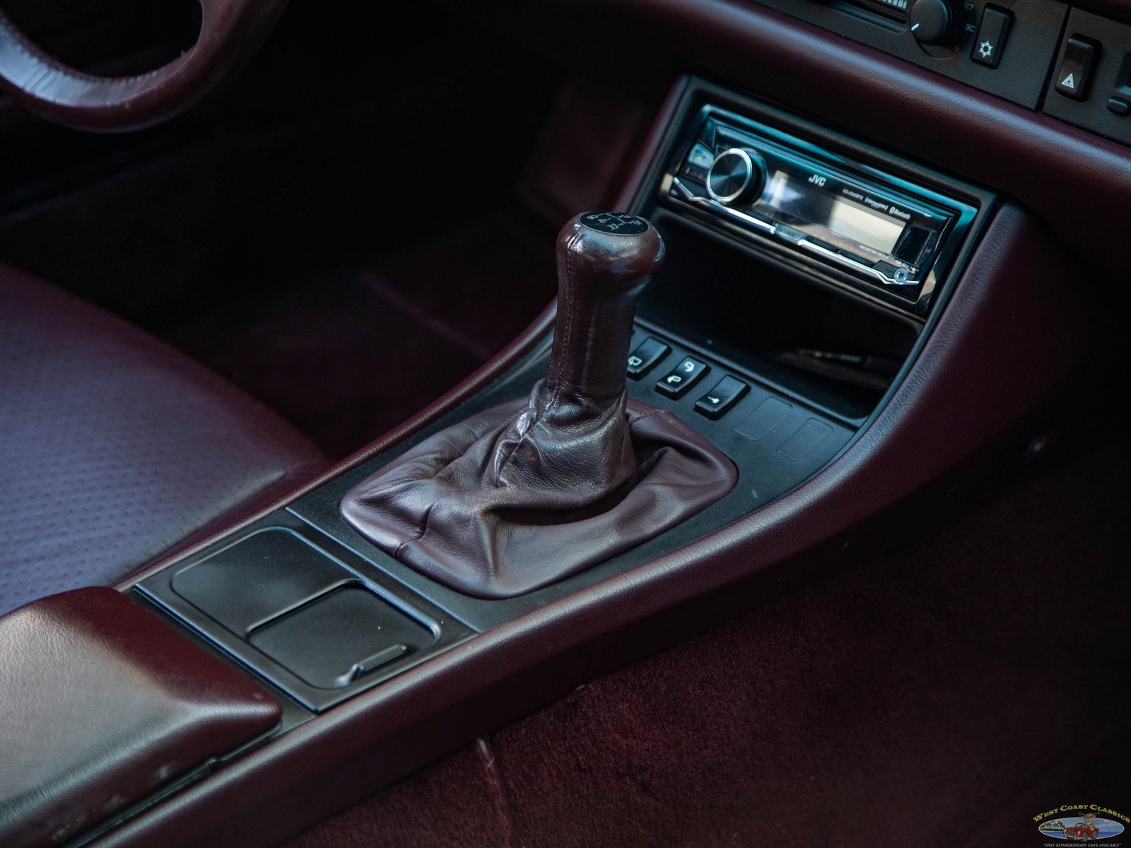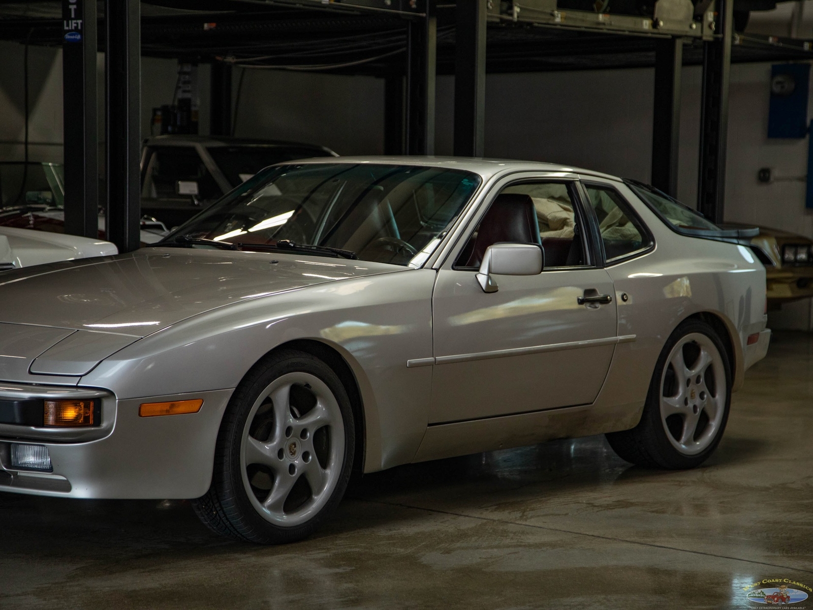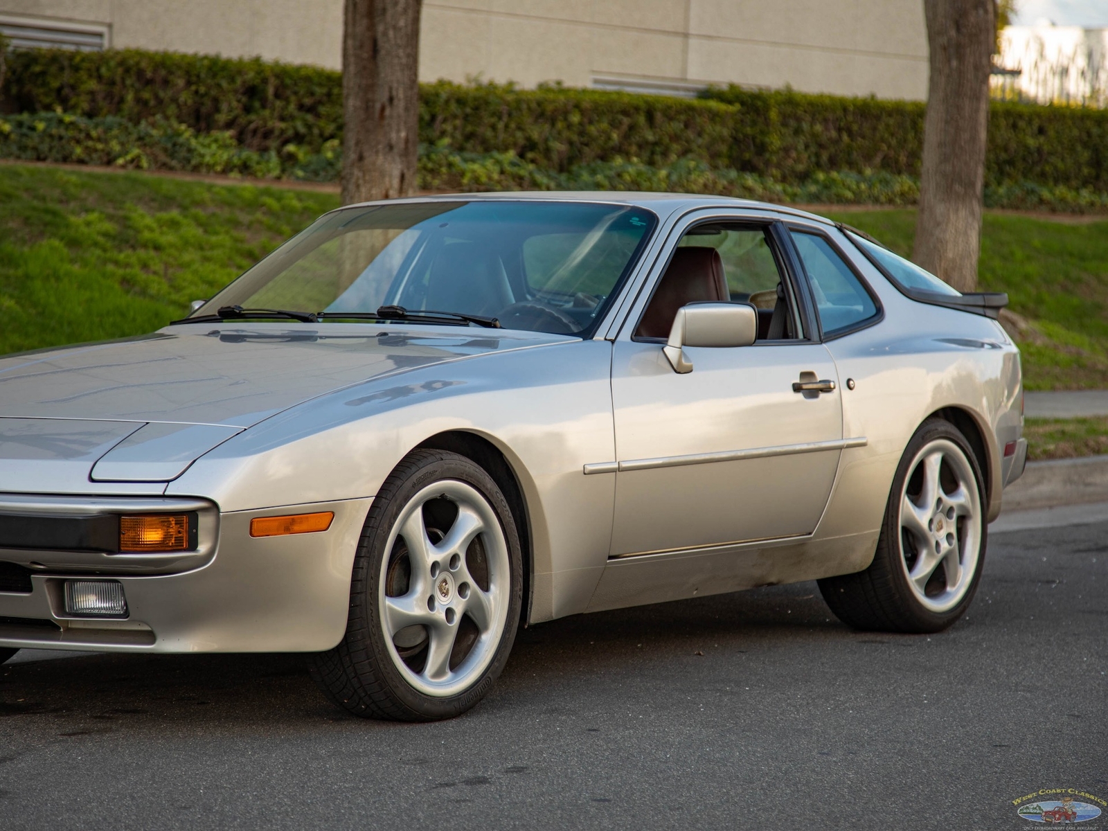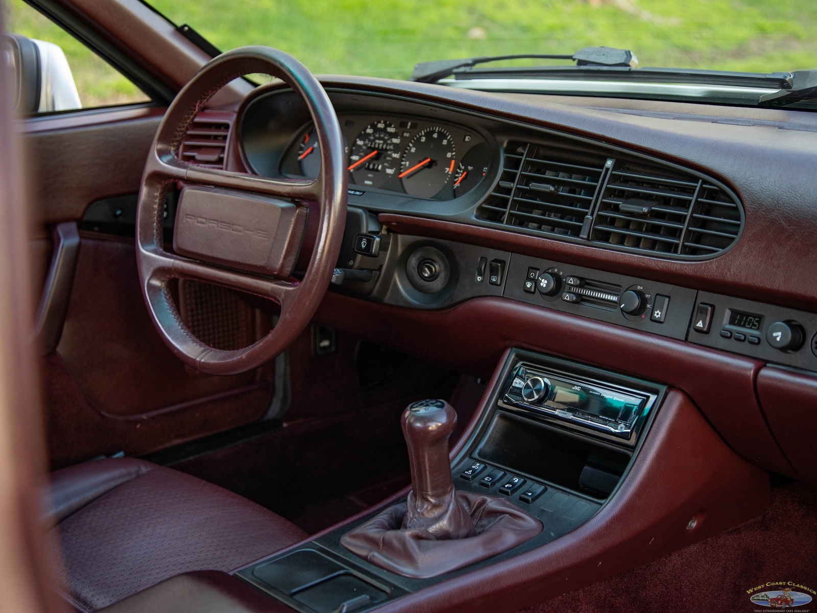 West Coast Classics are proud to present an absolutely exceptional example of this 1987 Porsche 'late model' 944 2.5L 4 cylinder 5 speed manual Coupe! Finished in the beautiful color combination of its original 'Zermatt Silver Metallic' factory paint with its all original 'Burgundy/Maroon' leather interior and purchased with rare factory options including the 5 speed manual transmission, air conditioning, removable large sunroof, desirable 15x7 and 15x8 turbo wheels, stabilizer bars, protective side moldings, leather steering wheel, power windows, power driver seat, rear window wiper, automatic speed control and rear anti roll bar!