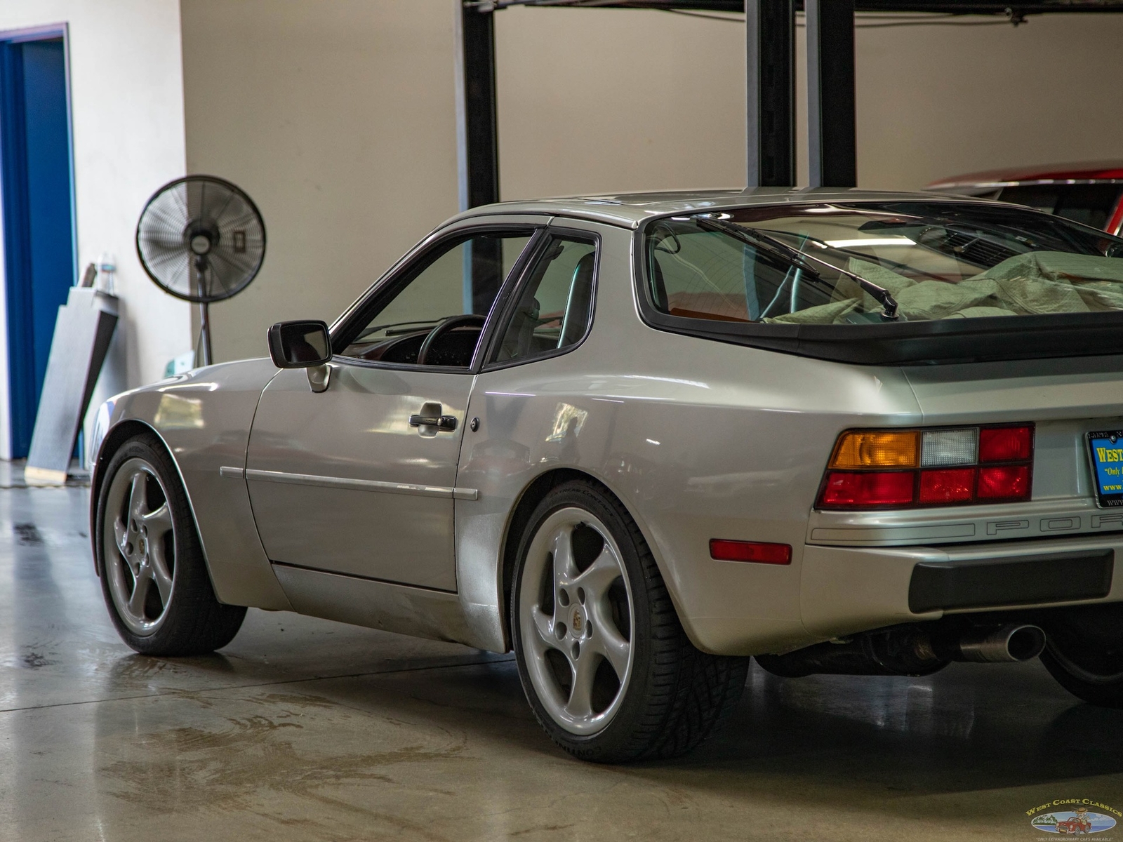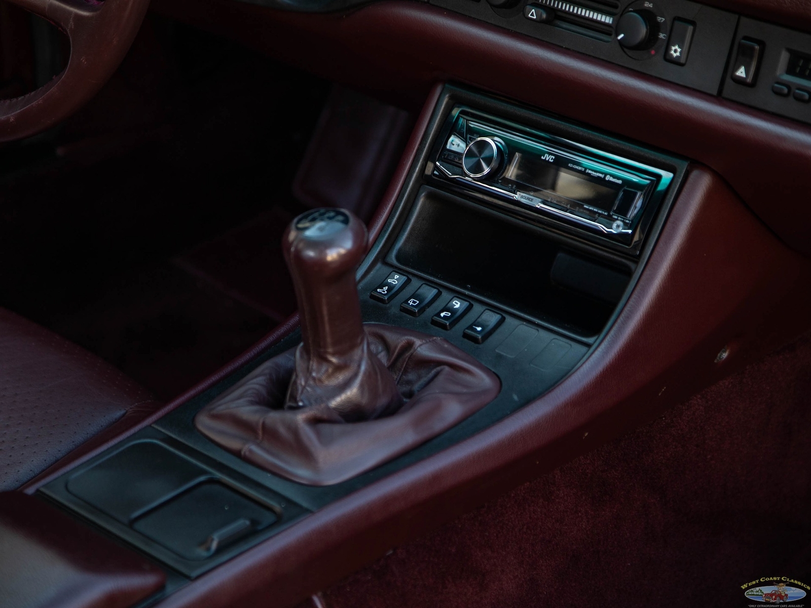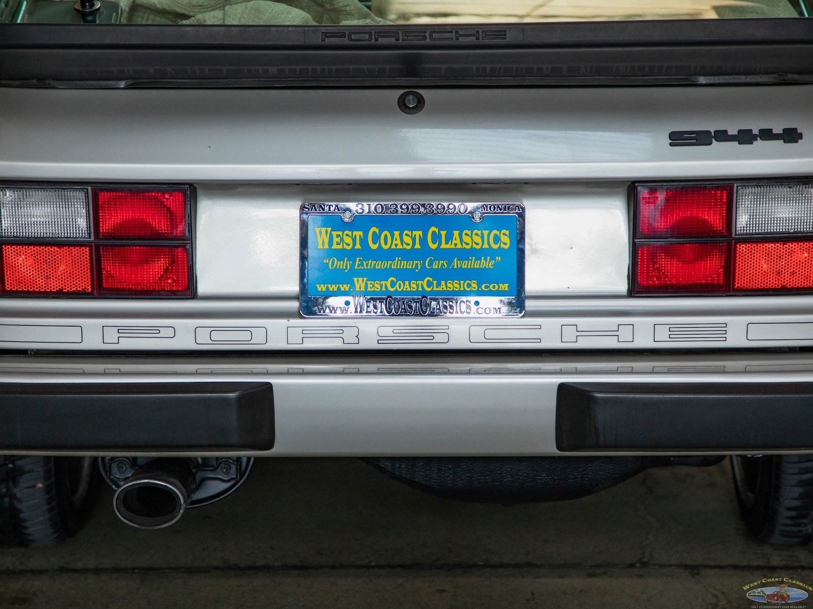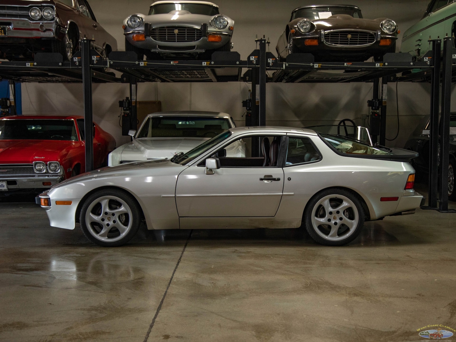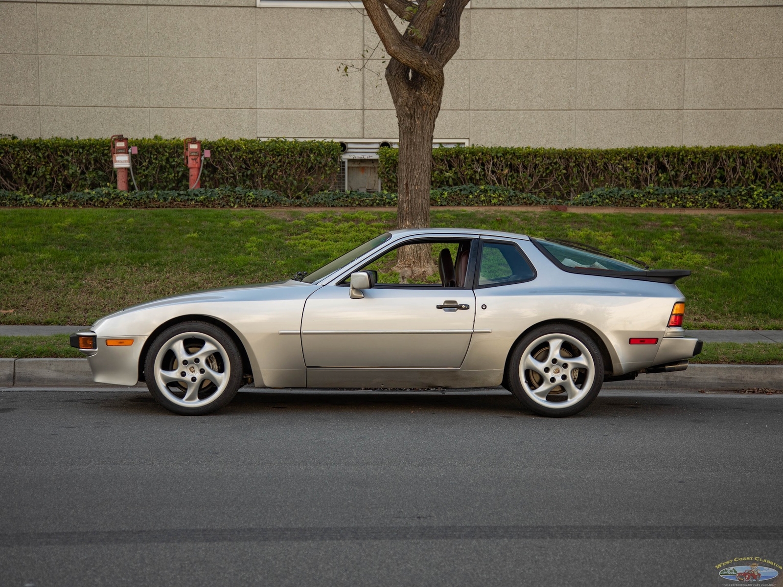West Coast Classics are proud to present an absolutely exceptional example of this 1987 Porsche 'late model' 944 2.5L 4 cylinder 5 speed manual Coupe! Finished in the beautiful color combination of its original 'Zermatt Silver Metallic' factory paint with its all original 'Burgundy/Maroon' leather interior and purchased with rare factory options including the 5 speed manual transmission, air conditioning, removable large sunroof, desirable 15x7 and 15x8 turbo wheels, stabilizer bars, protective side moldings, leather steering wheel, power windows, power driver seat, rear window wiper, automatic speed control and rear anti roll bar!