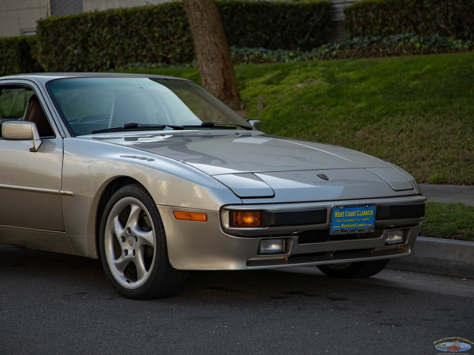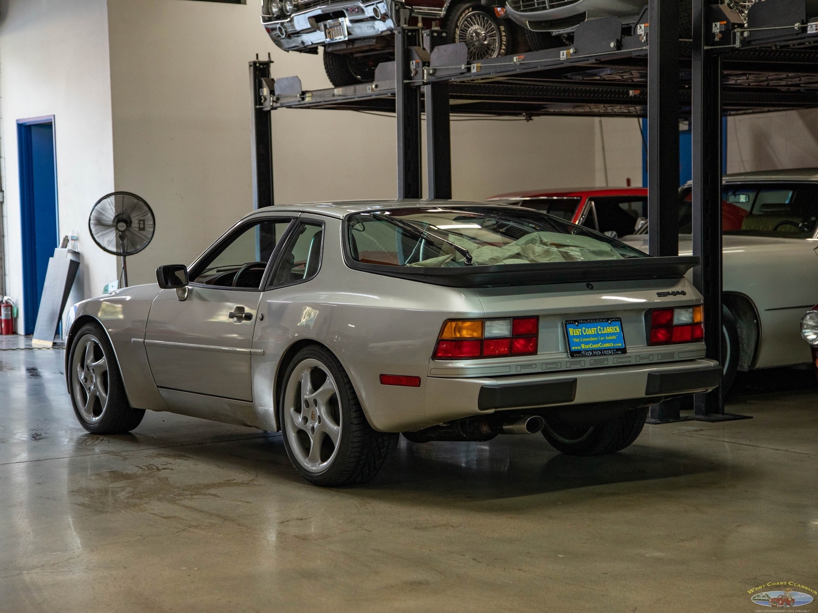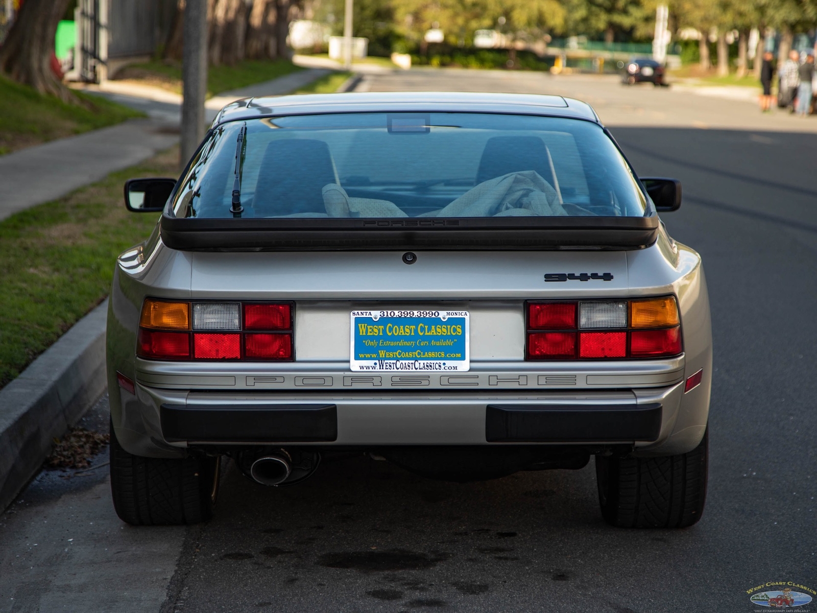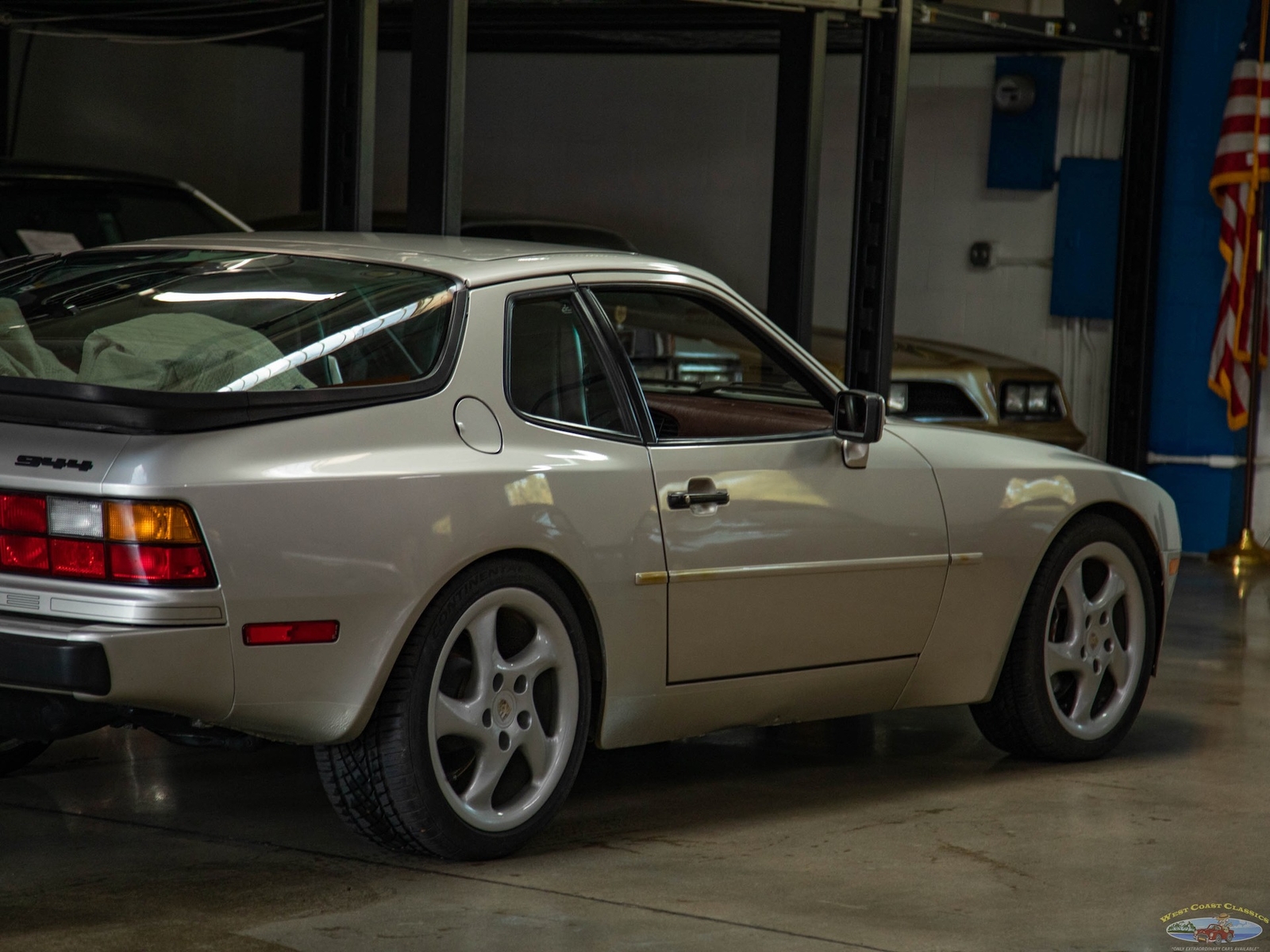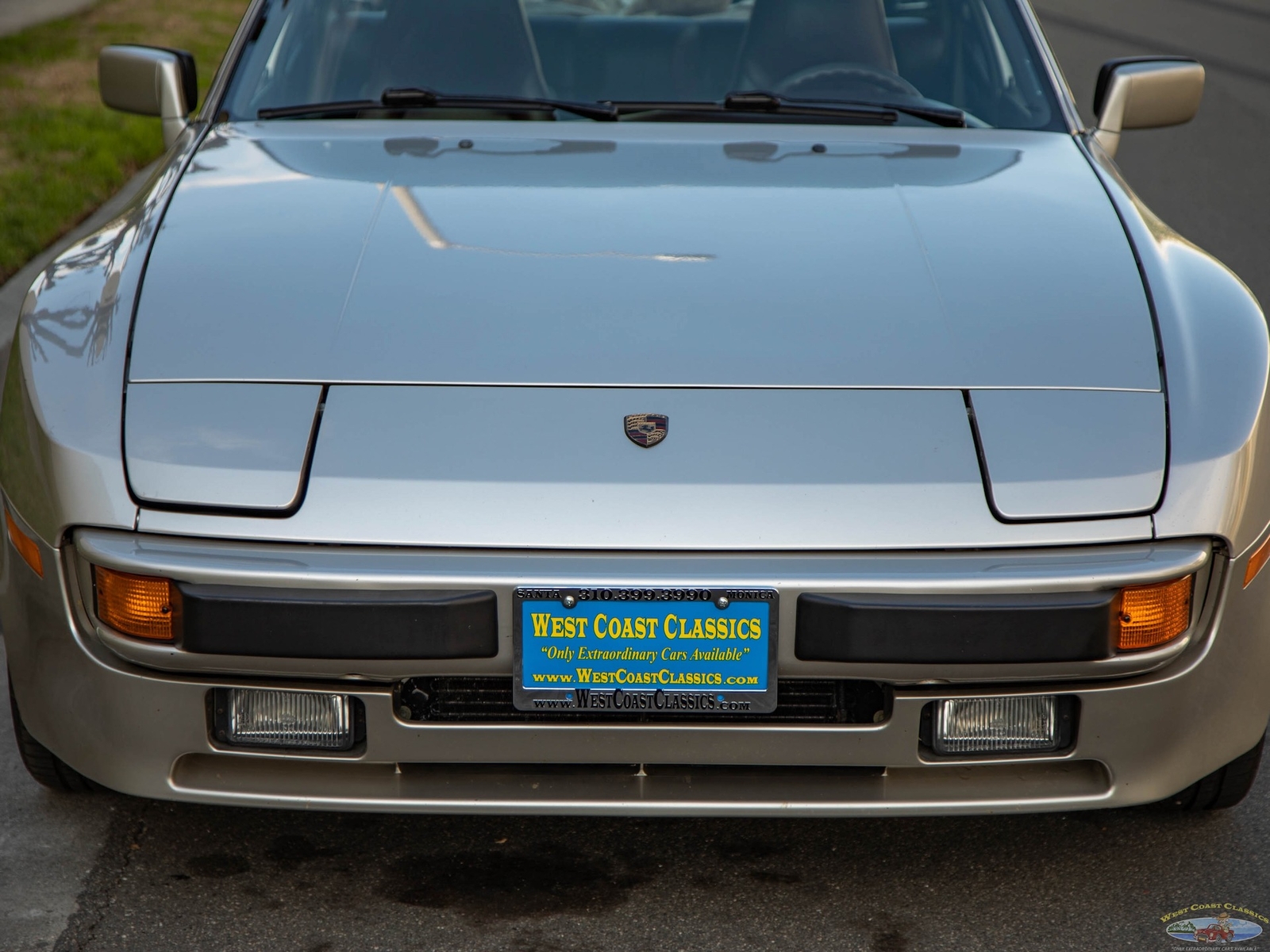 West Coast Classics are proud to present an absolutely exceptional example of this 1987 Porsche 'late model' 944 2.5L 4 cylinder 5 speed manual Coupe! Finished in the beautiful color combination of its original 'Zermatt Silver Metallic' factory paint with its all original 'Burgundy/Maroon' leather interior and purchased with rare factory options including the 5 speed manual transmission, air conditioning, removable large sunroof, desirable 15x7 and 15x8 turbo wheels, stabilizer bars, protective side moldings, leather steering wheel, power windows, power driver seat, rear window wiper, automatic speed control and rear anti roll bar!