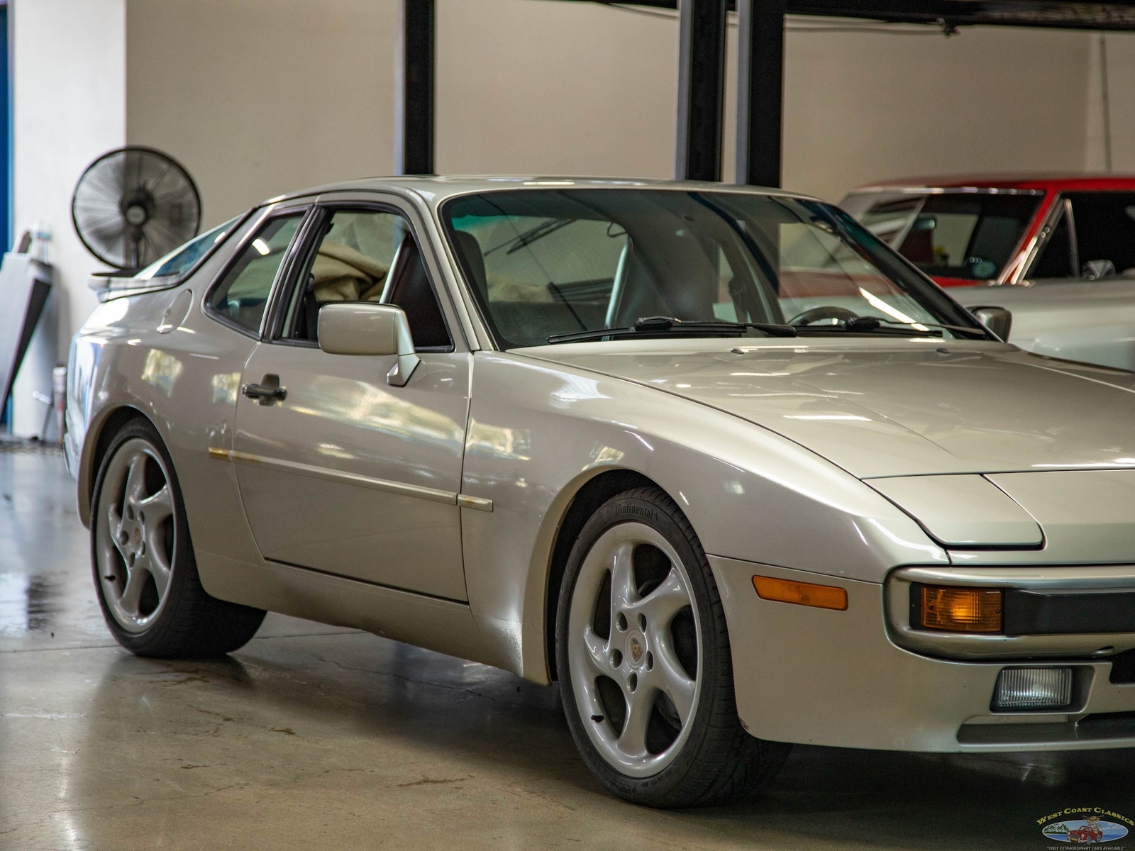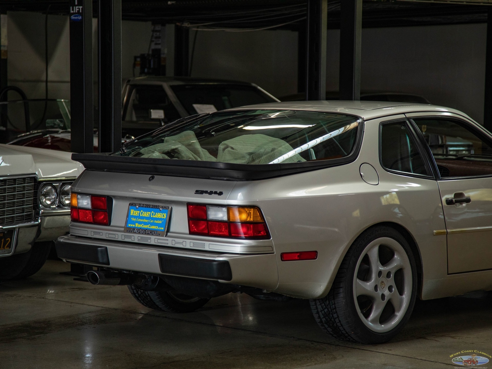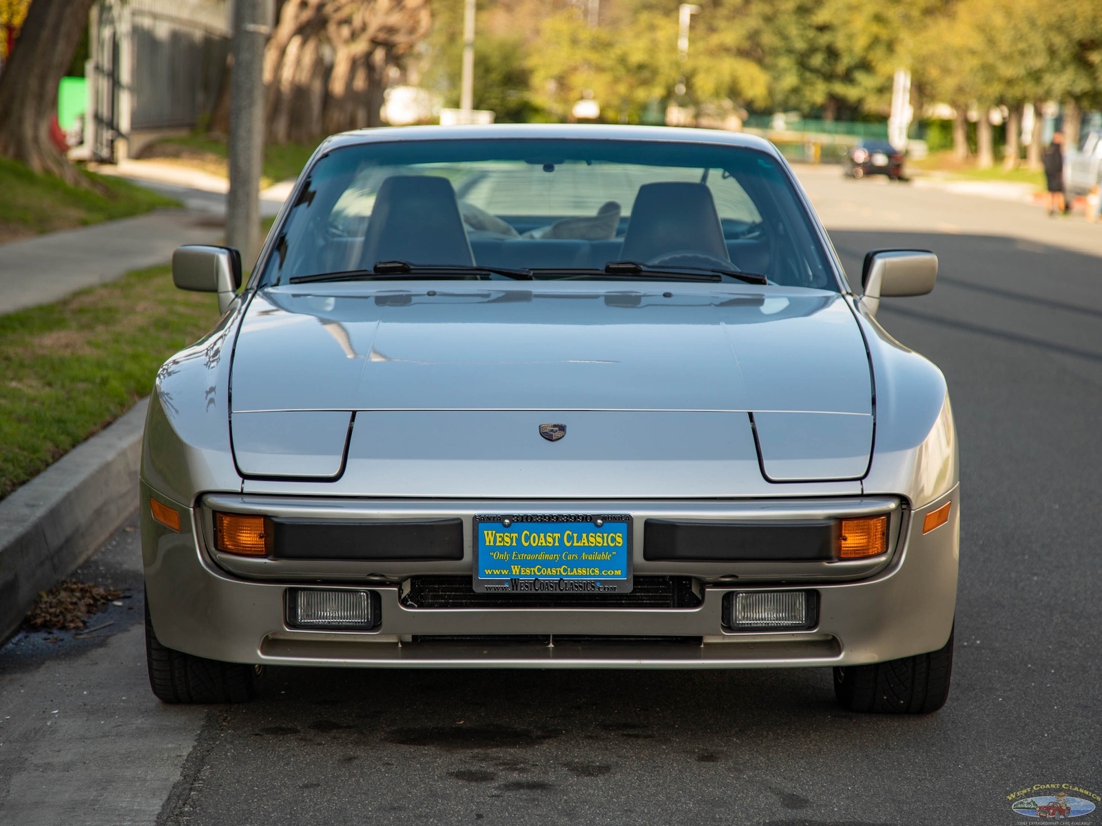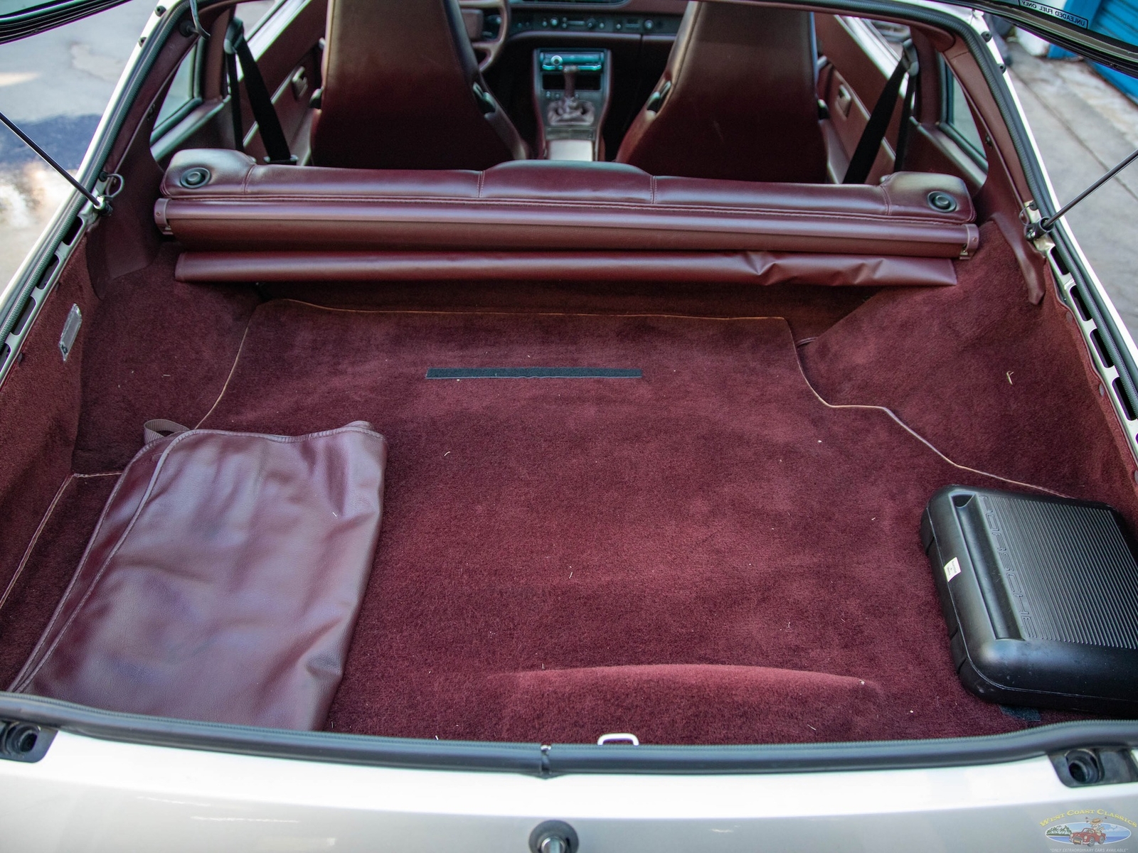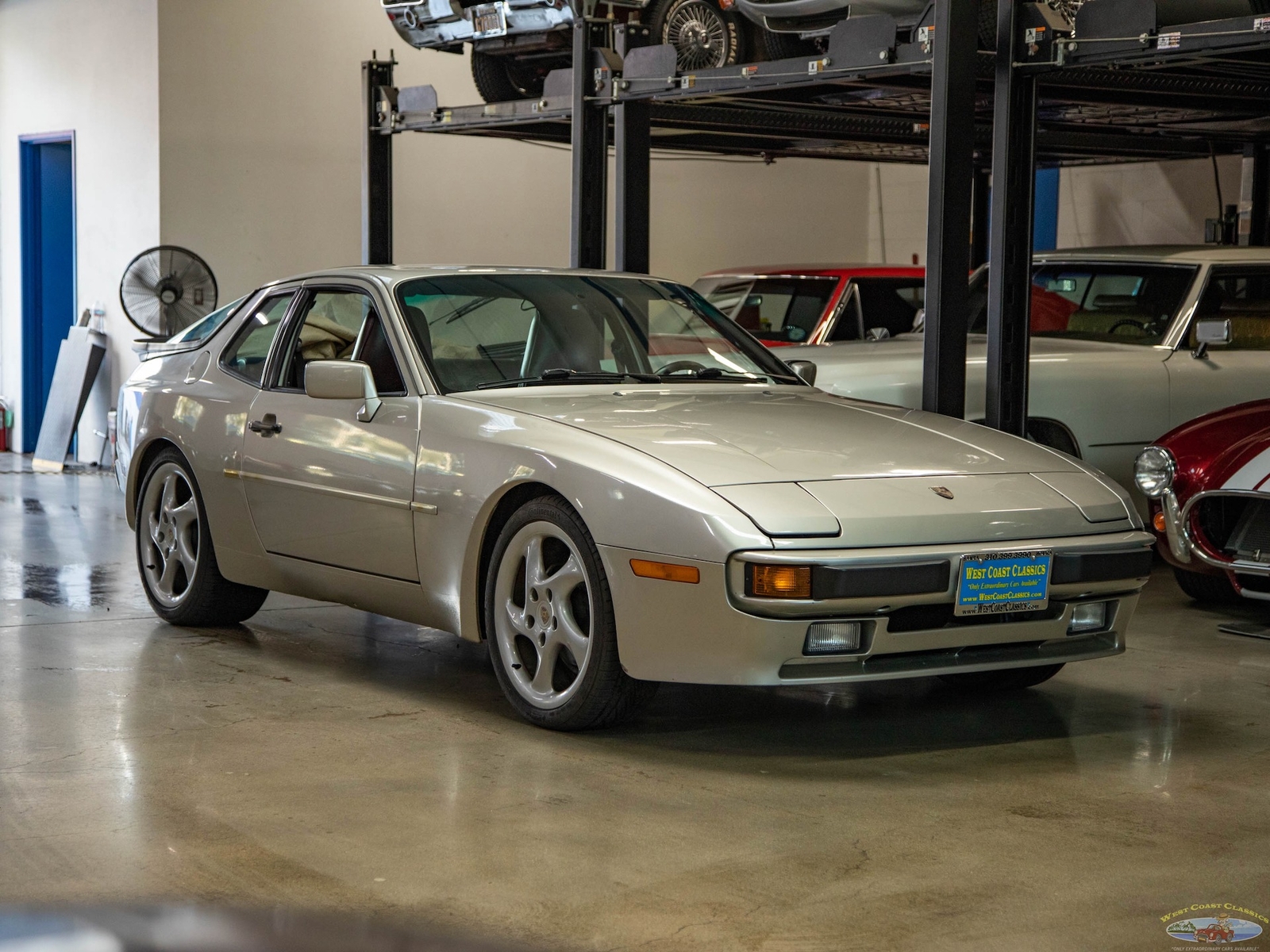West Coast Classics are proud to present an absolutely exceptional example of this 1987 Porsche 'late model' 944 2.5L 4 cylinder 5 speed manual Coupe! Finished in the beautiful color combination of its original 'Zermatt Silver Metallic' factory paint with its all original 'Burgundy/Maroon' leather interior and purchased with rare factory options including the 5 speed manual transmission, air conditioning, removable large sunroof, desirable 15x7 and 15x8 turbo wheels, stabilizer bars, protective side moldings, leather steering wheel, power windows, power driver seat, rear window wiper, automatic speed control and rear anti roll bar!