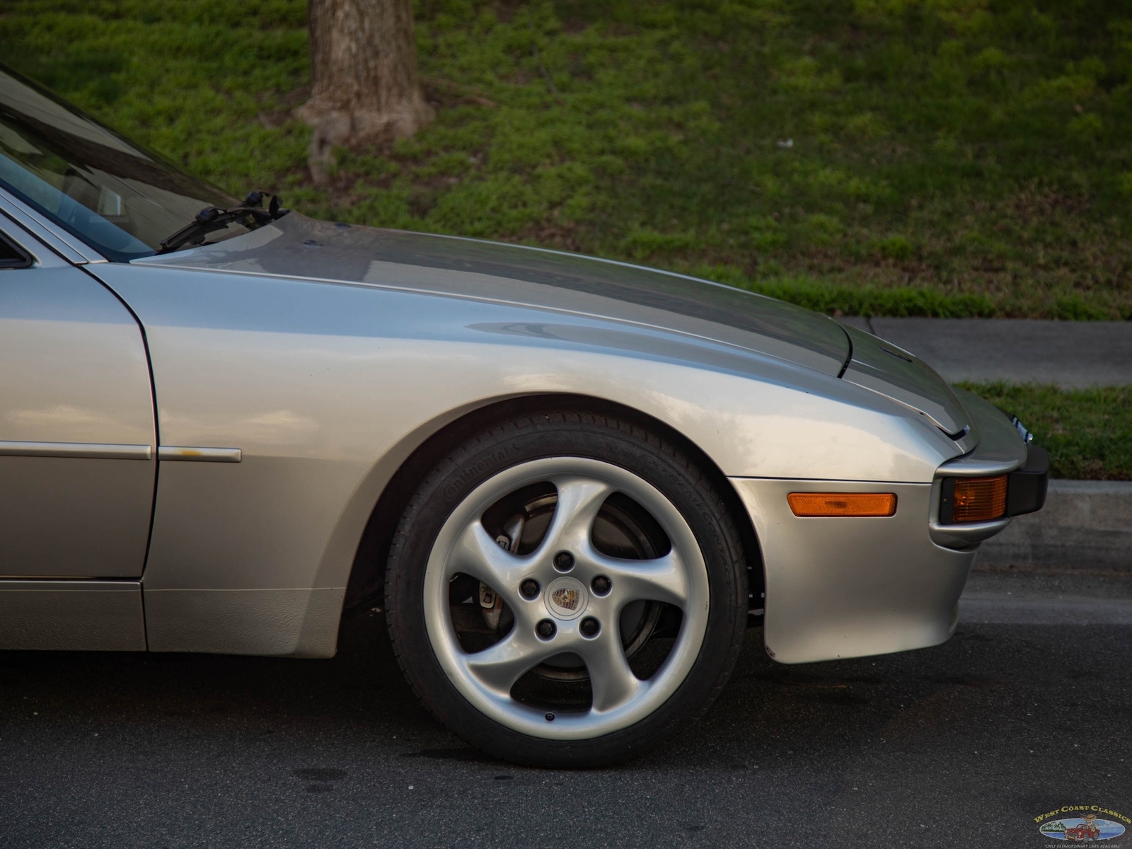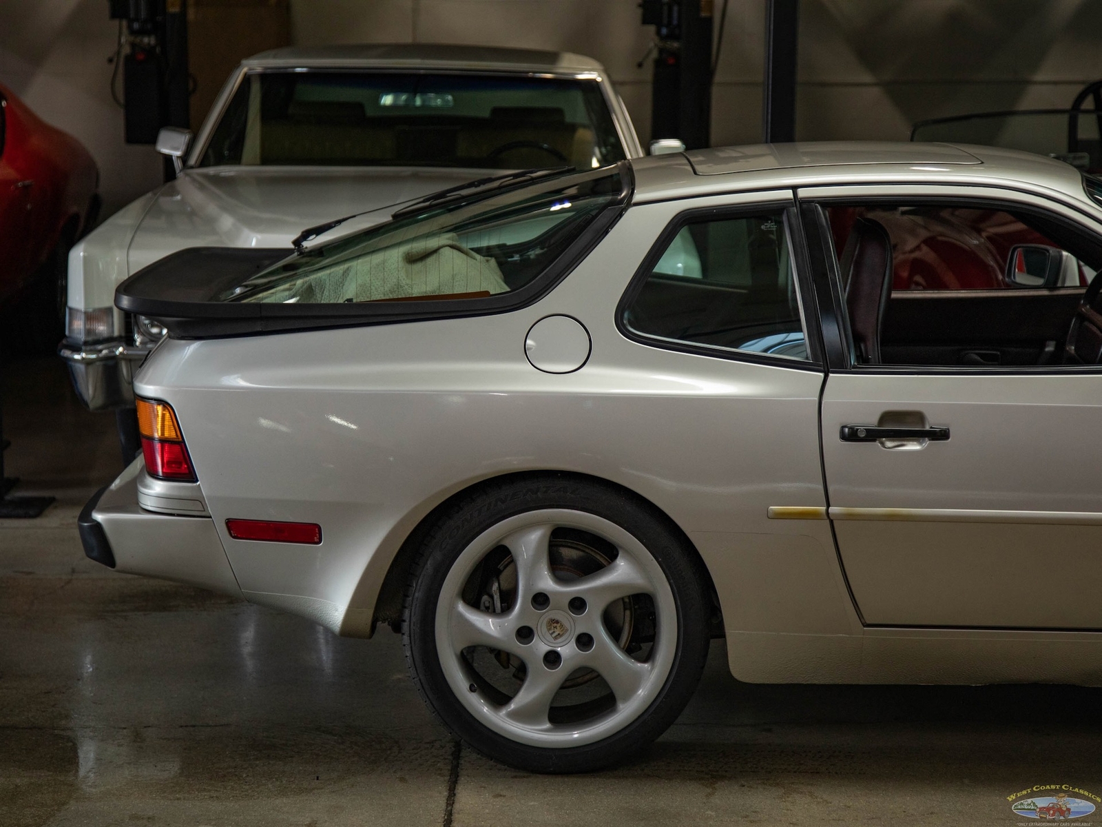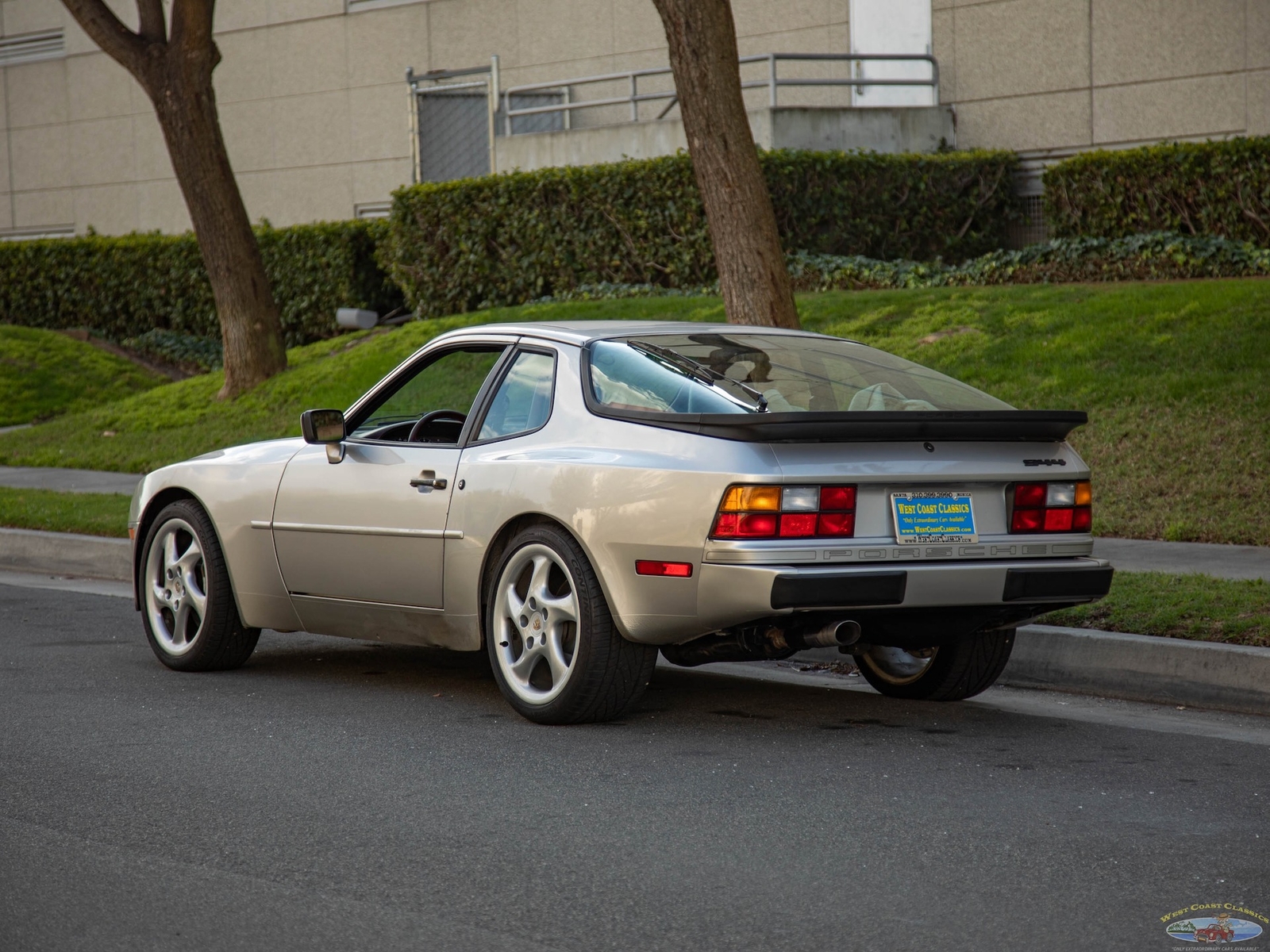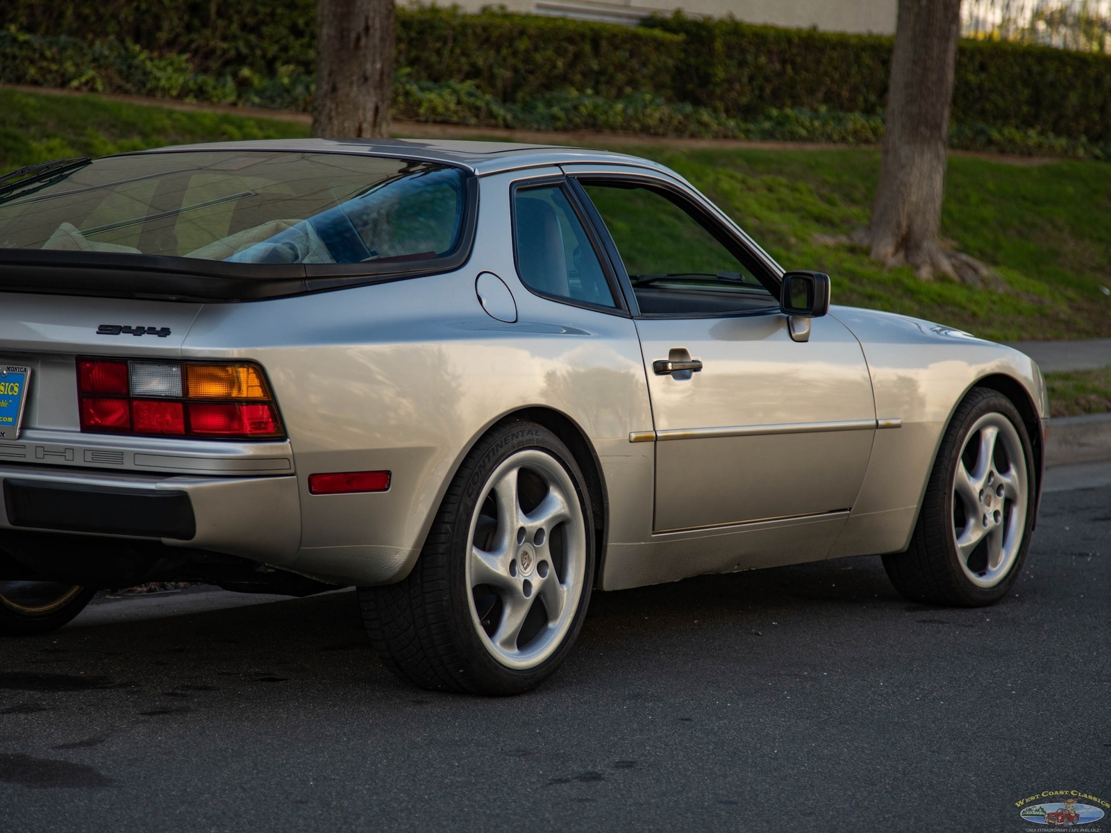 West Coast Classics are proud to present an absolutely exceptional example of this 1987 Porsche 'late model' 944 2.5L 4 cylinder 5 speed manual Coupe! Finished in the beautiful color combination of its original 'Zermatt Silver Metallic' factory paint with its all original 'Burgundy/Maroon' leather interior and purchased with rare factory options including the 5 speed manual transmission, air conditioning, removable large sunroof, desirable 15x7 and 15x8 turbo wheels, stabilizer bars, protective side moldings, leather steering wheel, power windows, power driver seat, rear window wiper, automatic speed control and rear anti roll bar!