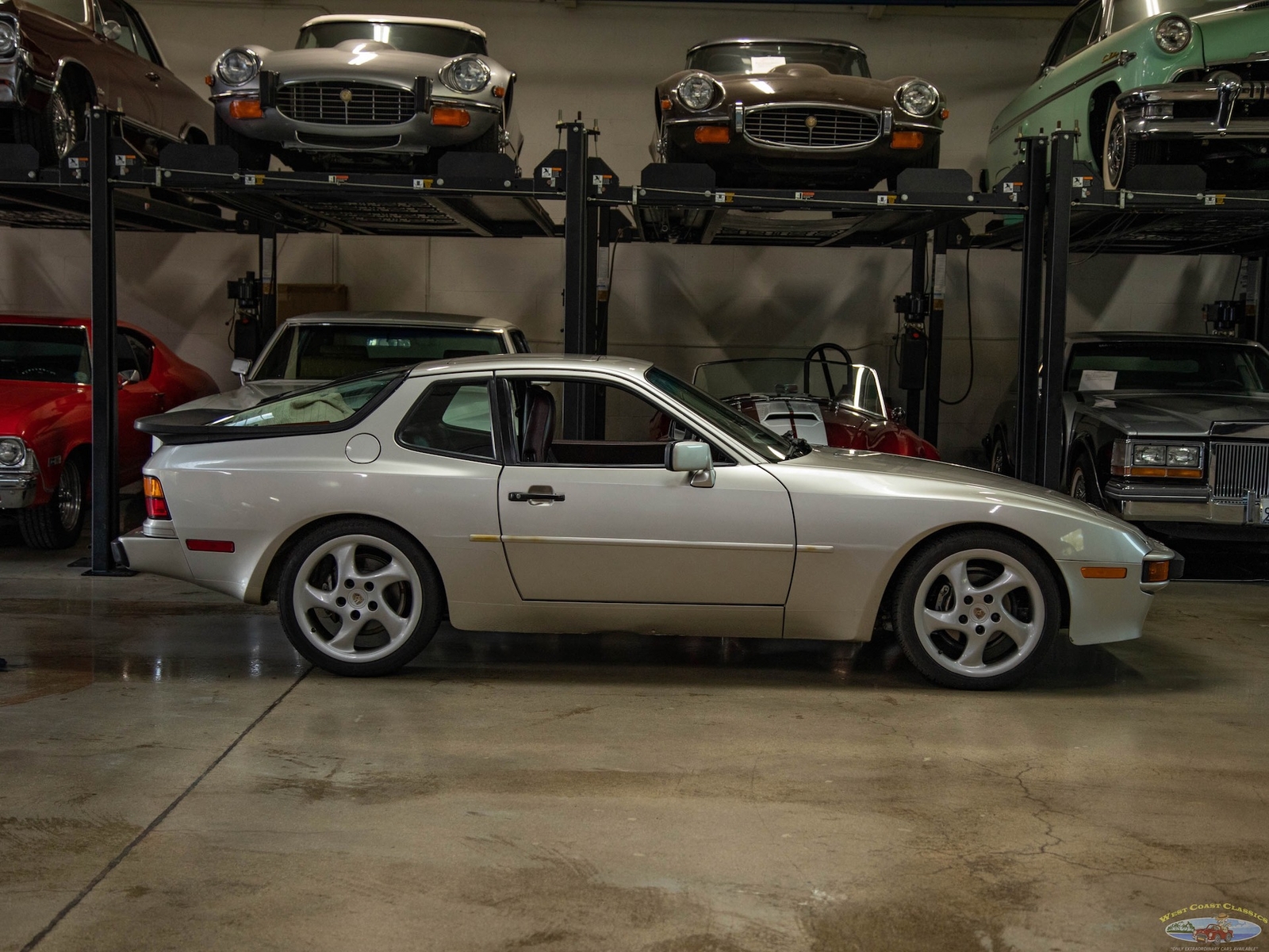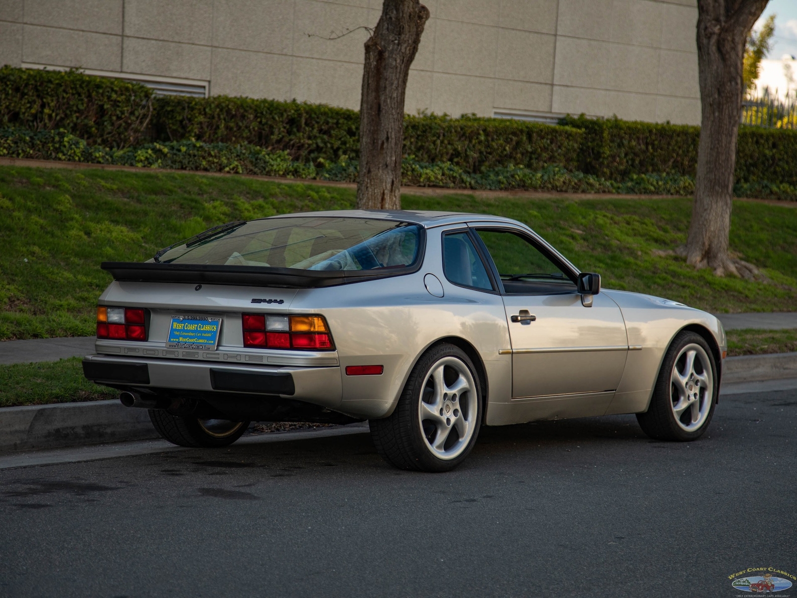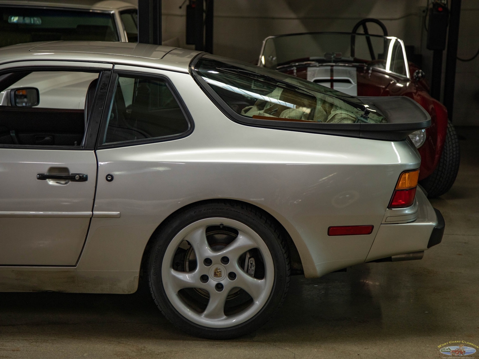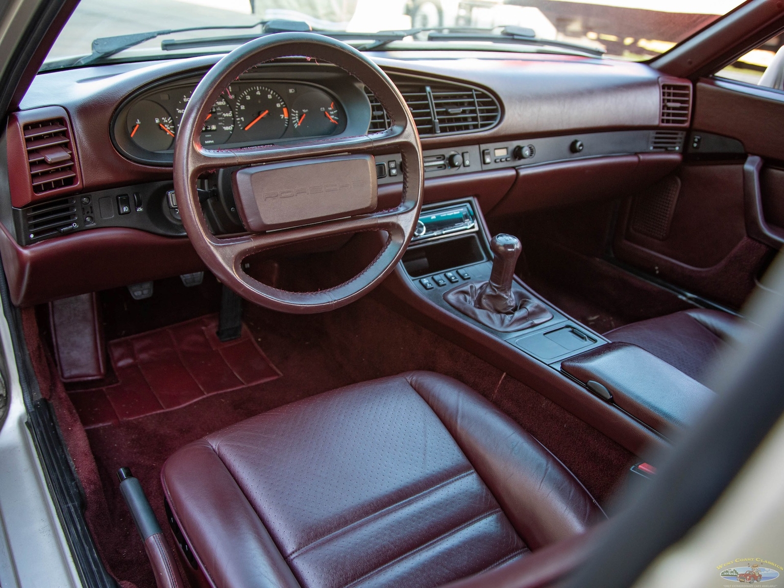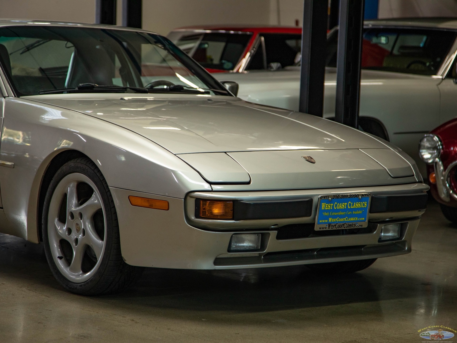 West Coast Classics are proud to present an absolutely exceptional example of this 1987 Porsche 'late model' 944 2.5L 4 cylinder 5 speed manual Coupe! Finished in the beautiful color combination of its original 'Zermatt Silver Metallic' factory paint with its all original 'Burgundy/Maroon' leather interior and purchased with rare factory options including the 5 speed manual transmission, air conditioning, removable large sunroof, desirable 15x7 and 15x8 turbo wheels, stabilizer bars, protective side moldings, leather steering wheel, power windows, power driver seat, rear window wiper, automatic speed control and rear anti roll bar!