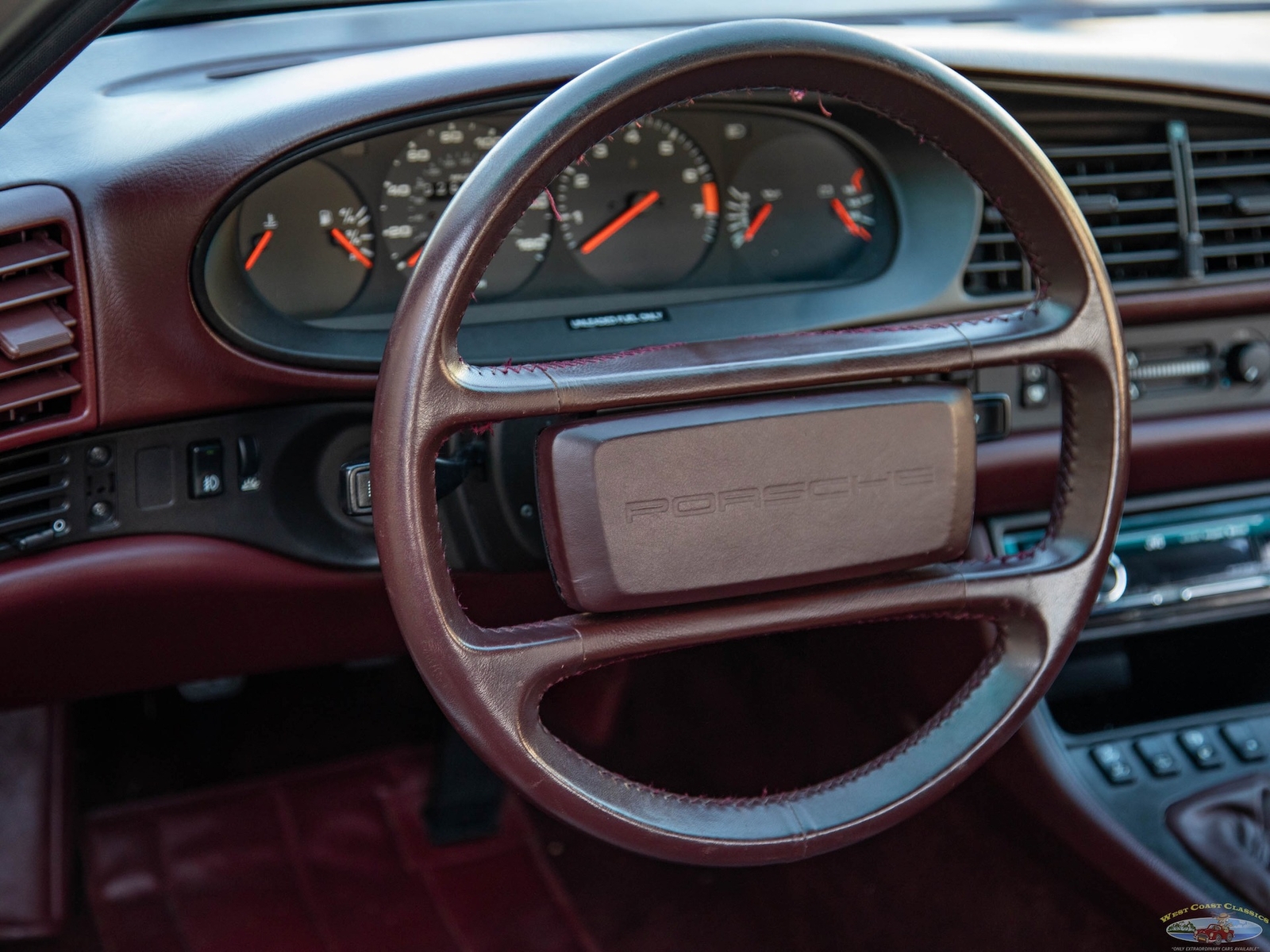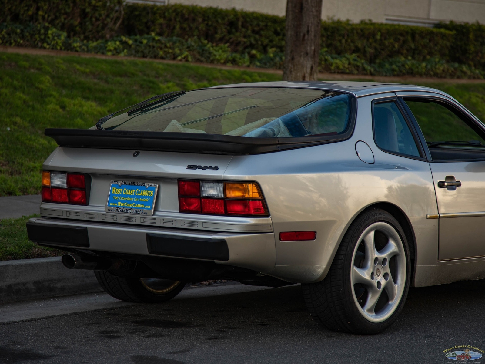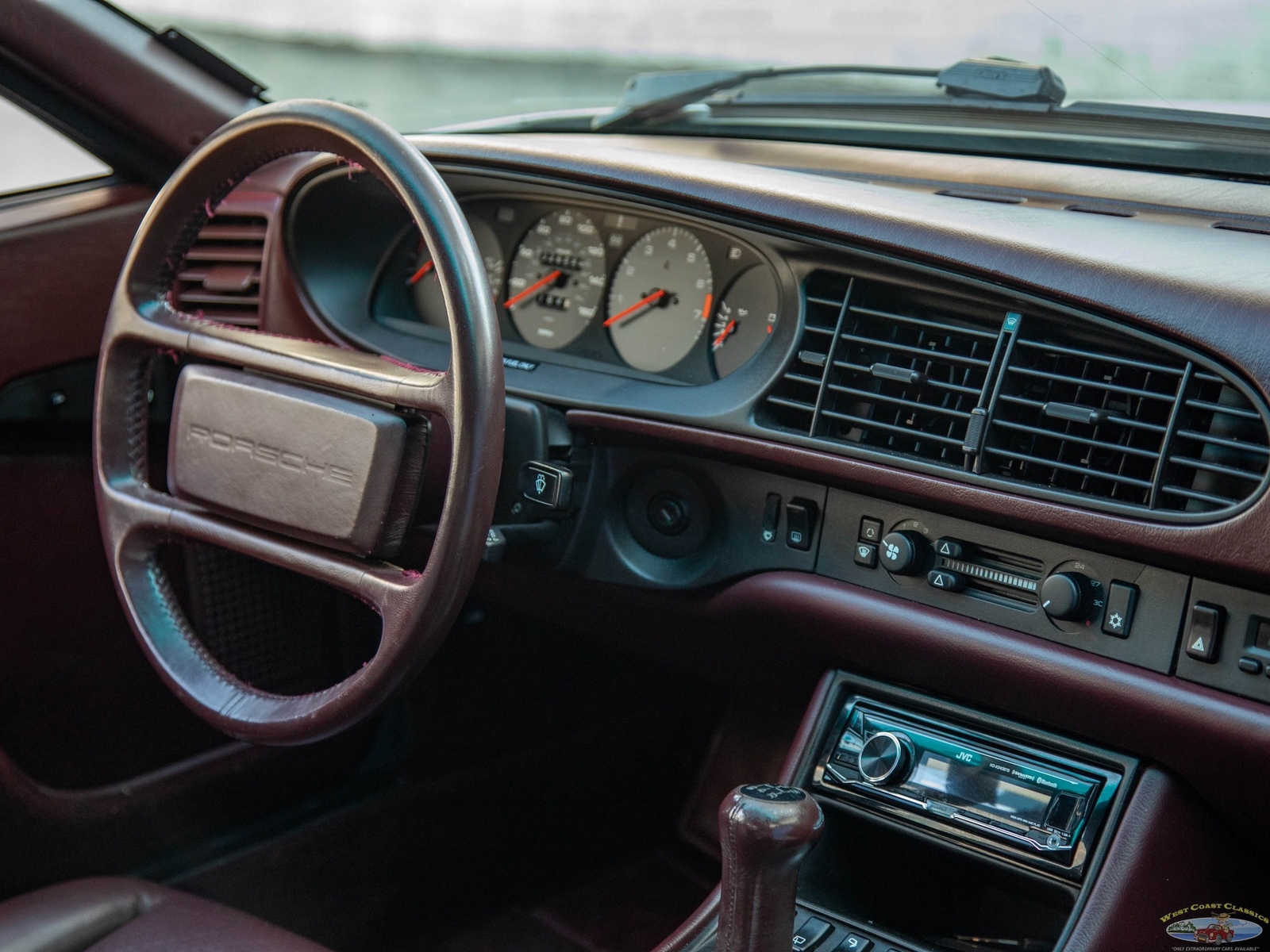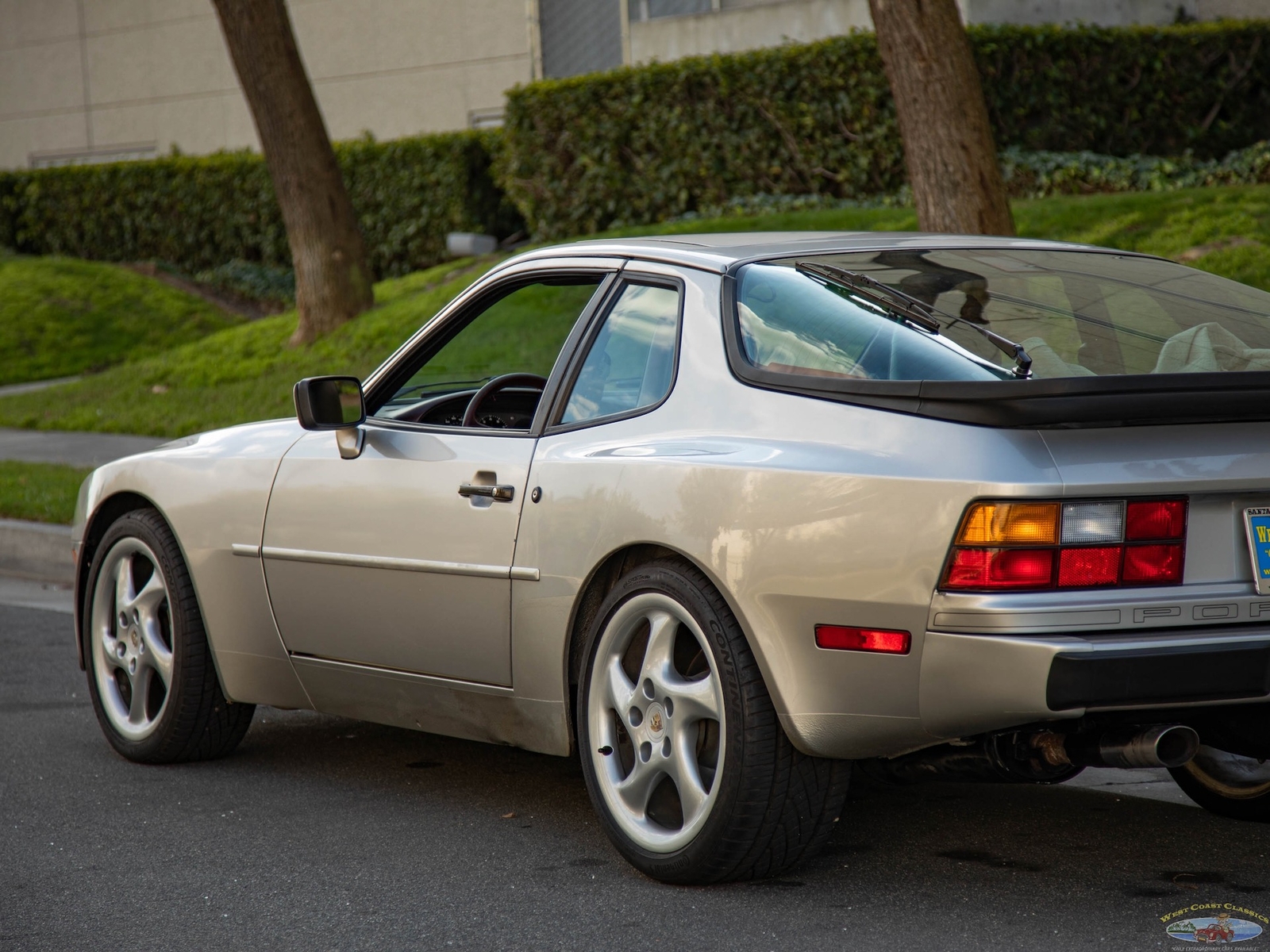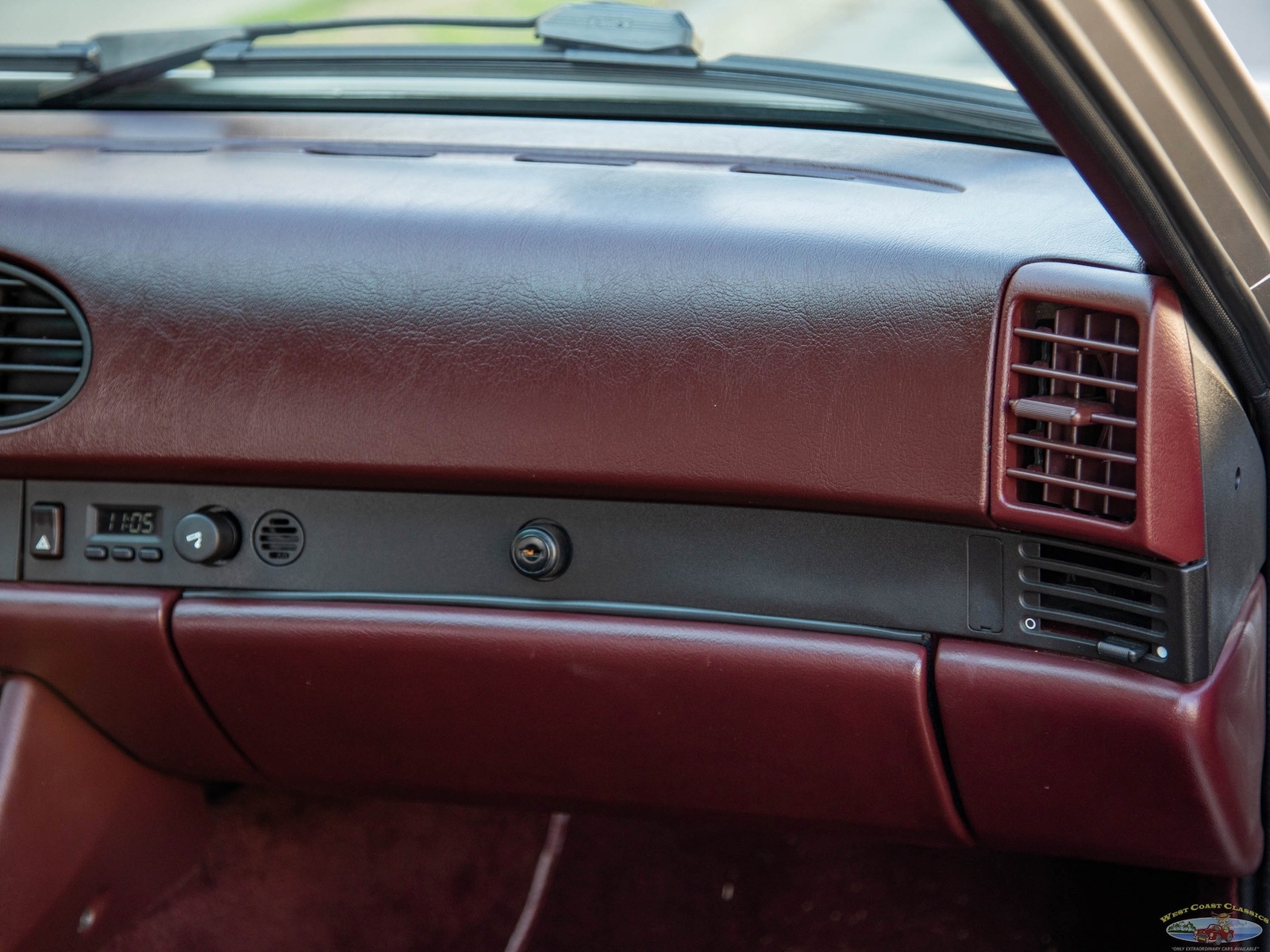 West Coast Classics are proud to present an absolutely exceptional example of this 1987 Porsche 'late model' 944 2.5L 4 cylinder 5 speed manual Coupe! Finished in the beautiful color combination of its original 'Zermatt Silver Metallic' factory paint with its all original 'Burgundy/Maroon' leather interior and purchased with rare factory options including the 5 speed manual transmission, air conditioning, removable large sunroof, desirable 15x7 and 15x8 turbo wheels, stabilizer bars, protective side moldings, leather steering wheel, power windows, power driver seat, rear window wiper, automatic speed control and rear anti roll bar!
