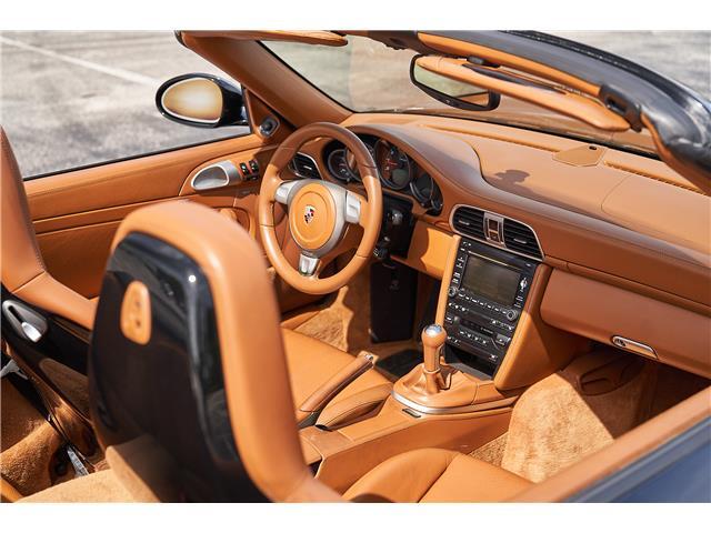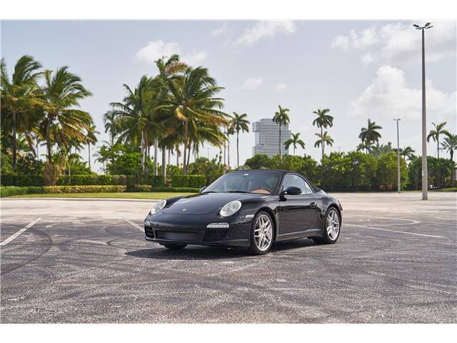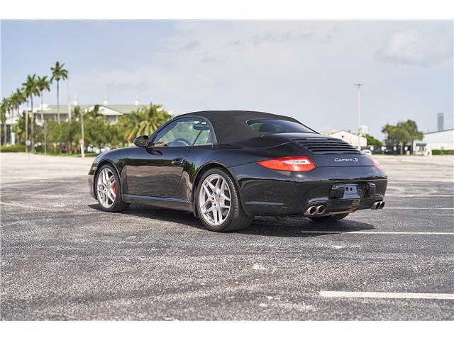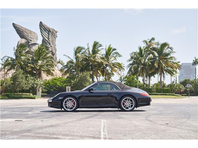 This 2009 Porsche 911 S Convertible was ordered in Black body over a Brown Leather interior and black cabriolet top.