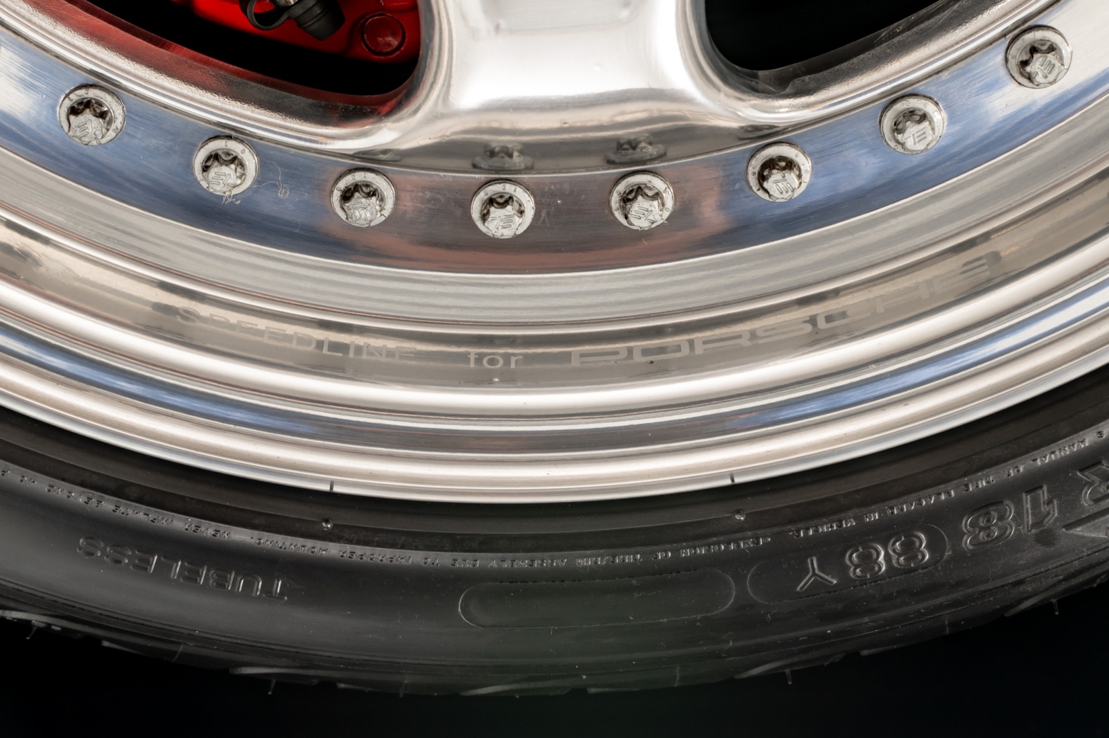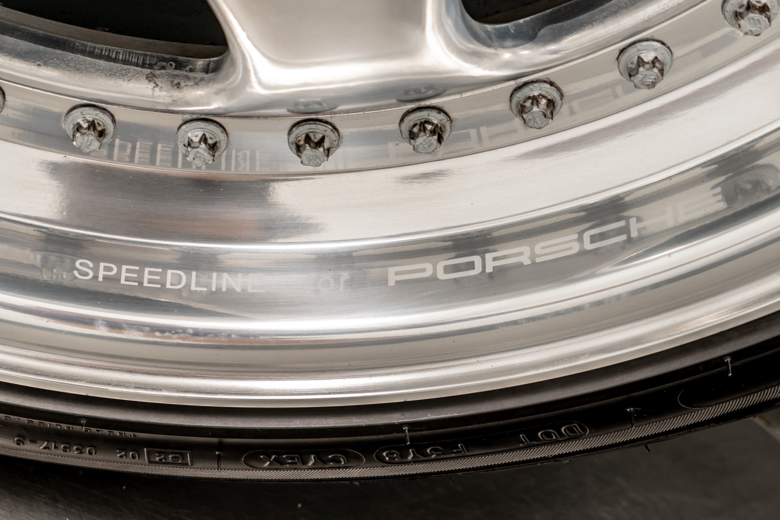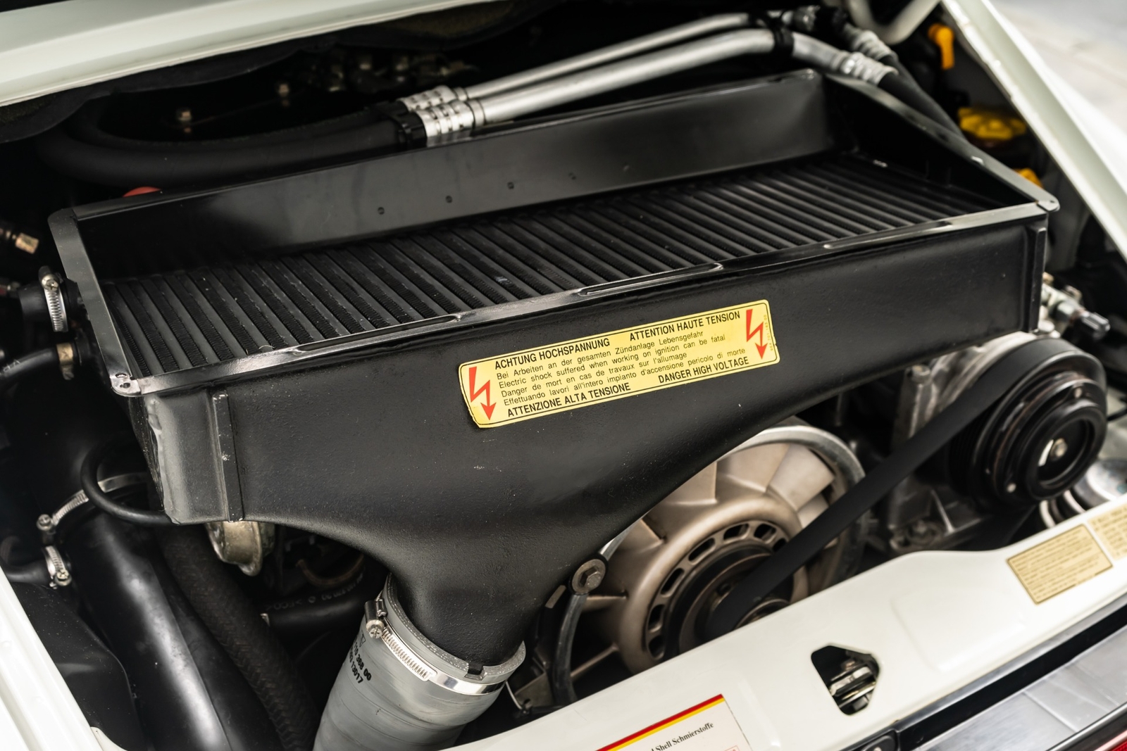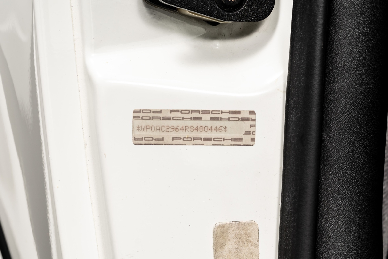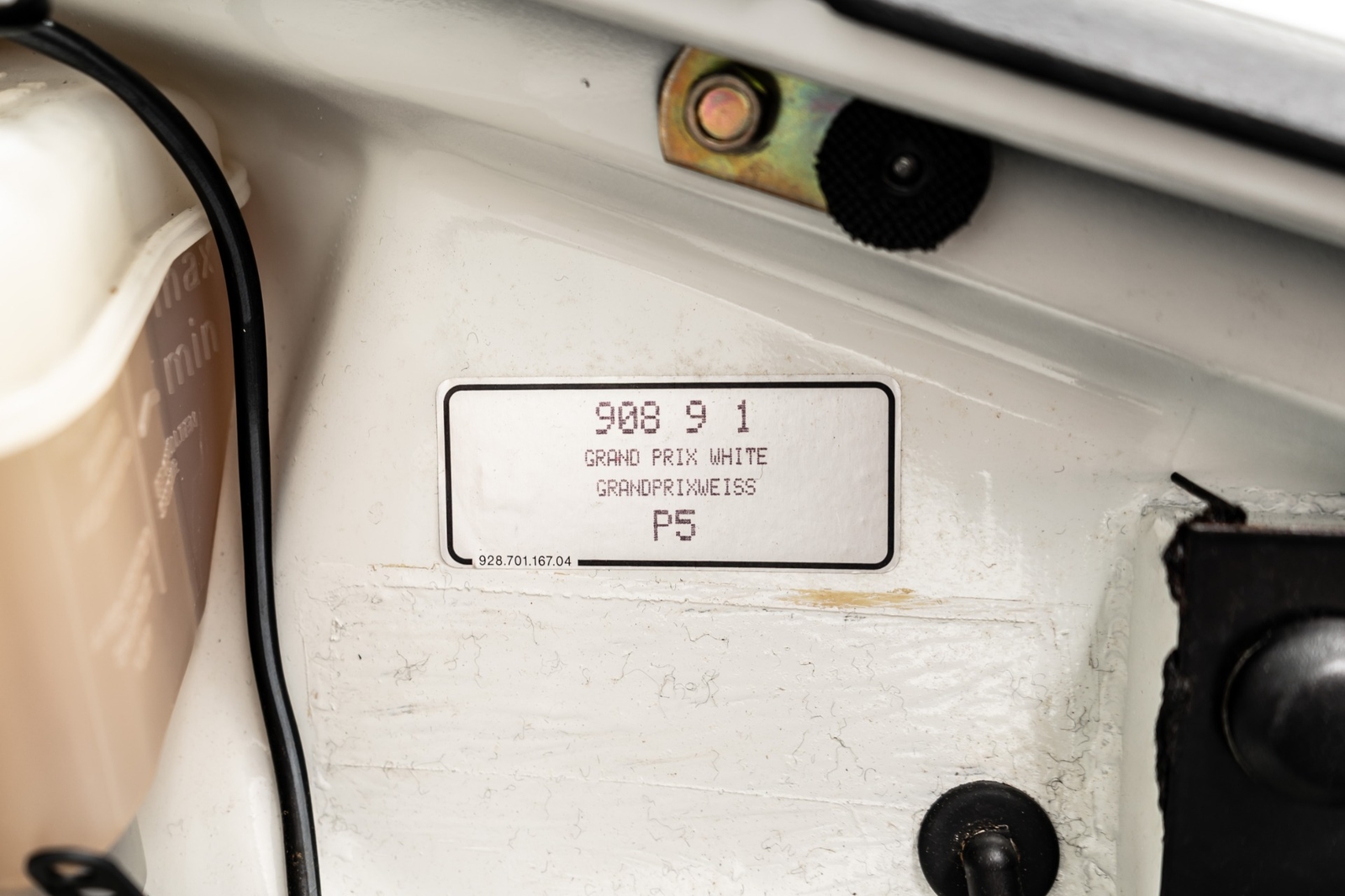 We have just added to our extensive exotic car inventory a beautiful 1994 Porsche 911 Turbo S Flatnose in Grand Prix White over Black leather interior and only 18,311 miles. This Turbo is loaded with: Turbo S package (3.6 liter turbocharged flat six with higher flow turbo, cylinder heads with ported intake ports, ported injector blocks, ported intake manifold and larger camshafts, flatnose conversion with pop-up headlamps, front bumper cooling scoops, quarter panel scoops, rear wing with integrated lip, quad exhaust tips), 5 speed manual transmission, 18 inch Speedline wheels with polished centers, center caps with colored Porsche crests, 12 way power driver and passenger seats with heating, RARE factory cellular telephone with optional console, SUPER RARE Studio cloth seat and door panel inserts (a whopping $141 option!), sunroof, AM/FM/cassette with 6 CD changer, dark rootwood shifter and handbrake handles, dark rootwood dash inserts, full leather interior, velour floor mats, leather gauge trim rings, rear window wiper, electric sunroof, the original window sticker, all books, the original salesman's business card, tools, inflator and more. All of the original markings are on the glass and all body tags are in place. There were only 76 of these built for the world and this is one of the nicest and most unusual ever built.