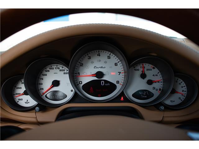 The cabin features power-adjustable front sport seats trimmed in Sand Beige leather, interior is impeccable.All touch points are in excellent condition, buttons and switches operate as they should. Optional wood trim provides a touch of refinement to the interior and is also in excellent condition. The three-spoke steering wheel features wood grain accents and fronts white-dialed instrumentation consisting of a central tachometer, a 225-mph speedometer, and gauges for oil temperature, coolant temperature, oil pressure, and fuel level. The digital odometer indicates 9,700 miles.