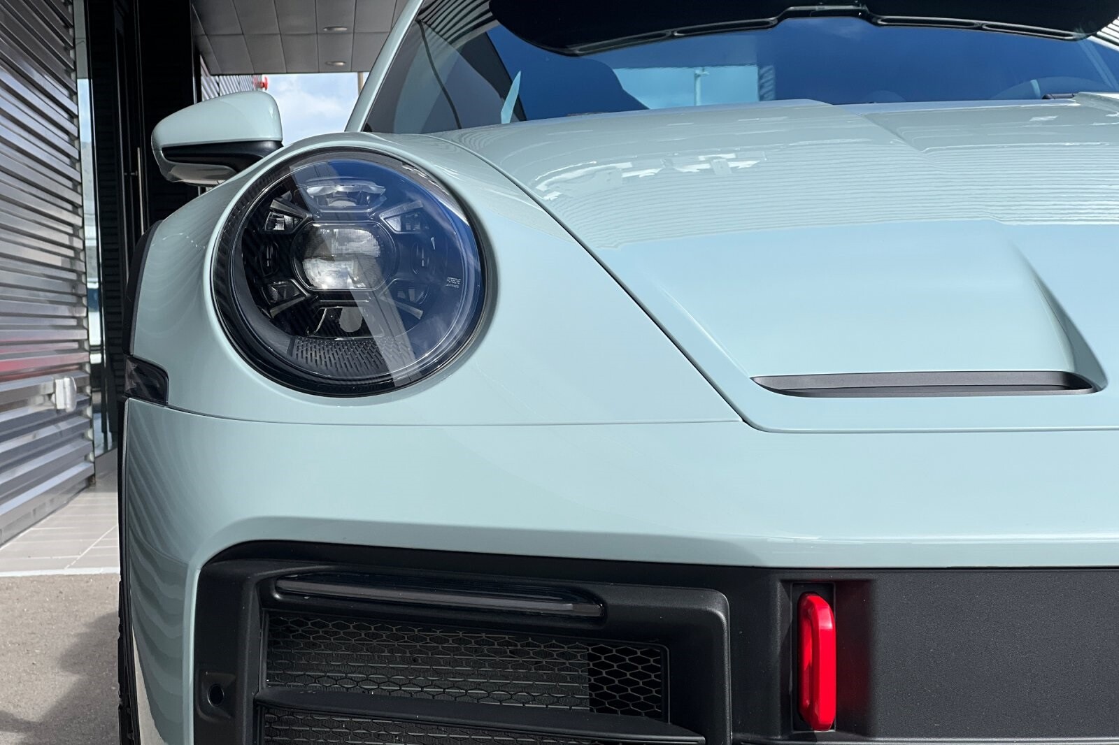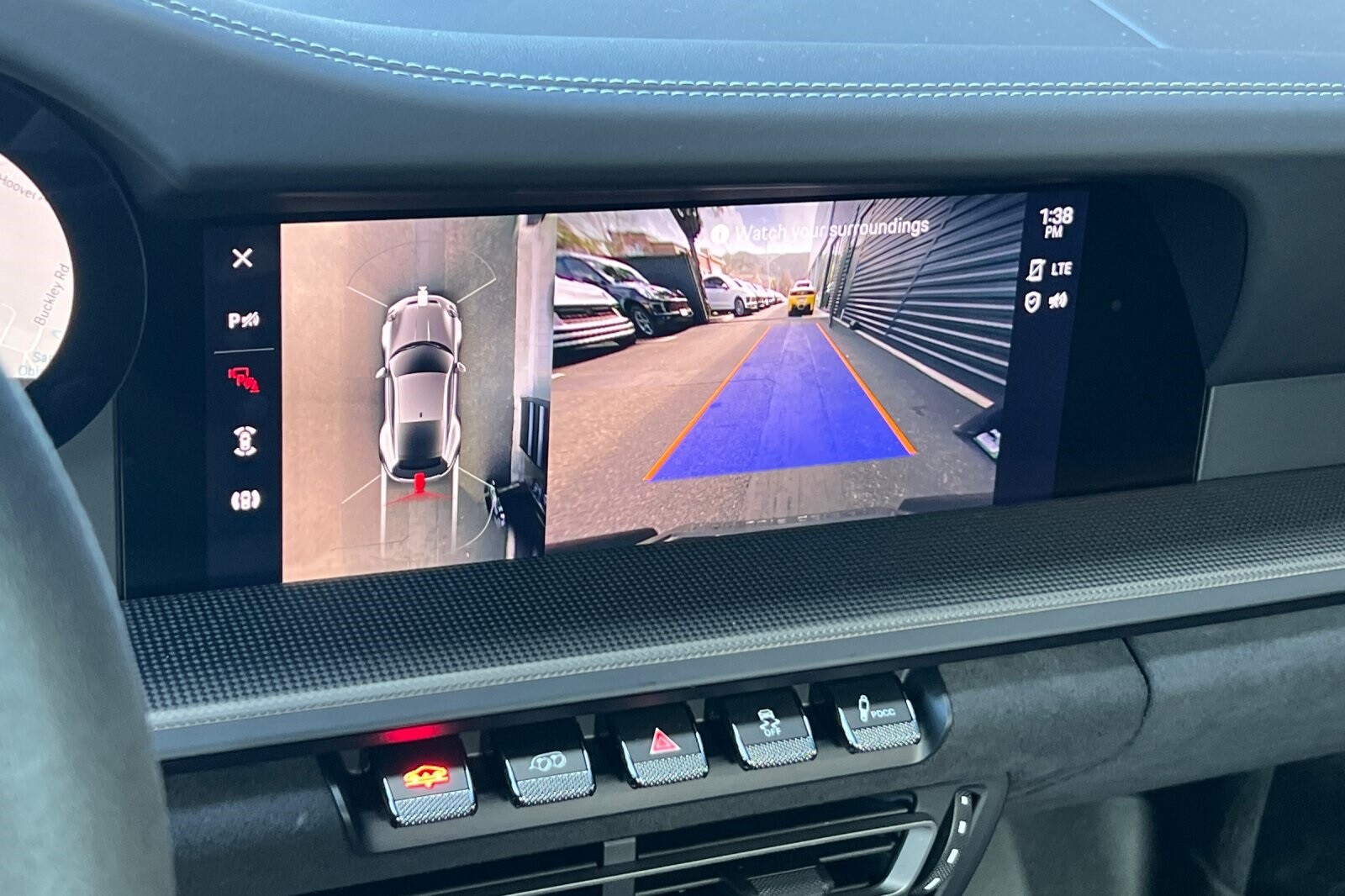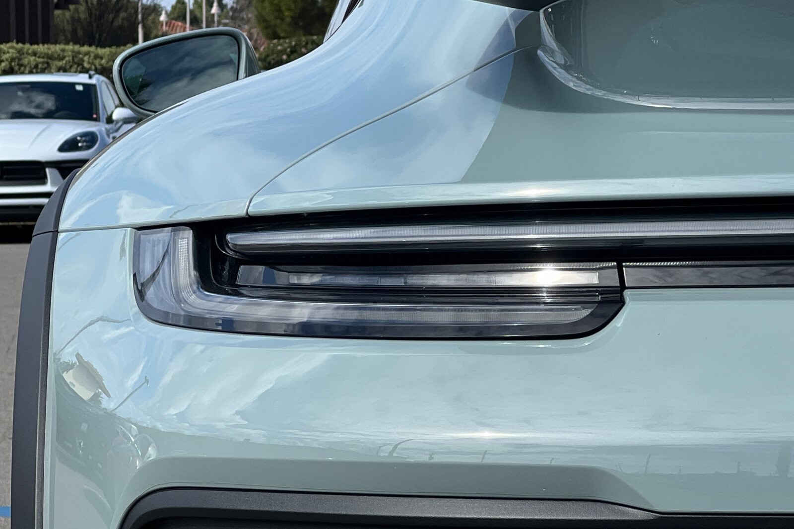 This Porsche San Luis Obispo 2023 Green Porsche 911 Dakar is well equipped and includes these features and benefits: 4-Wheel Disc Brakes, ABS brakes, Adaptive suspension, Air Conditioning, Alloy wheels, Auto-dimming door mirrors, Auto-dimming Rear-View mirror, Automatic temperature control, Brake assist, Bumpers: body-color, Delay-off headlights, Driver door bin, Driver vanity mirror, Dual front impact airbags, Dual front side impact airbags, Electronic Stability Control, Exterior Parking Camera Rear, Four wheel independent suspension, Front anti-roll bar, Front Bucket Seats, Front Center Armrest, Front dual zone A/C, Front reading lights, Fully automatic headlights, Garage door transmitter: HomeLink, Heated door mirrors, Illuminated entry, Low tire pressure warning, Navigation system: Porsche Communication Management (PCM), Occupant sensing airbag, Outside temperature display, Overhead airbag, Overhead console, Passenger door bin, Passenger vanity mirror, Porsche Communication Management, Power door mirrors, Power driver seat, Power passenger seat, Power steering, Power windows, Radio data system, Rain sensing wipers, Rear anti-roll bar, Rear fog lights, Rear window defroster, Remote keyless entry, Security system, Speed control, Spoiler, Sport steering wheel, Steering wheel mounted audio controls, Tachometer, Telescoping steering wheel, Tilt steering wheel, Traction control, Trip computer, and Variably intermittent wipers.