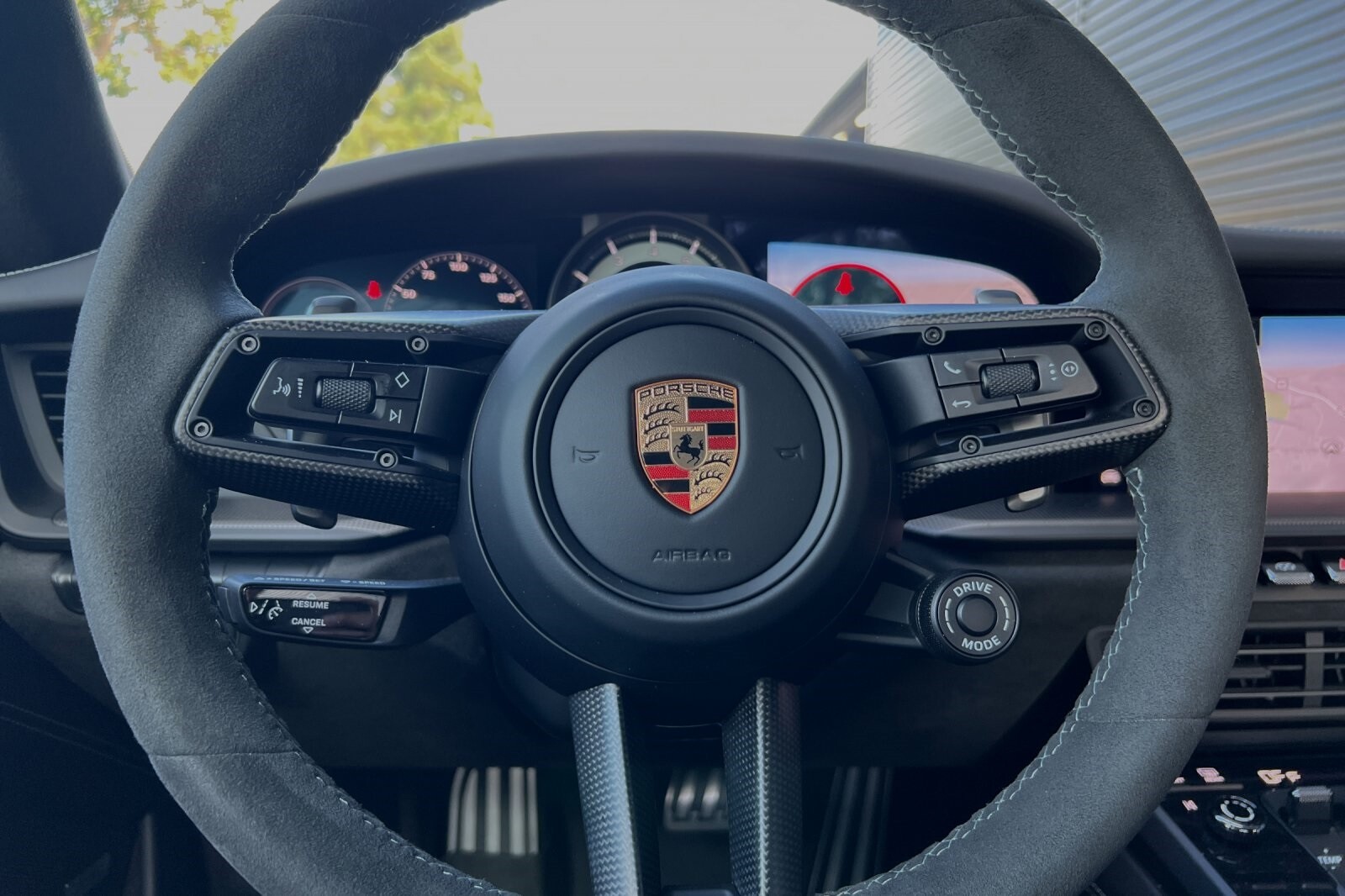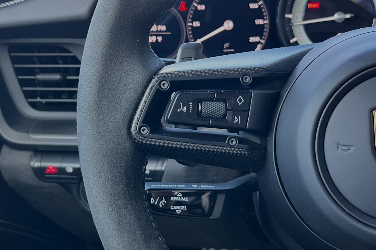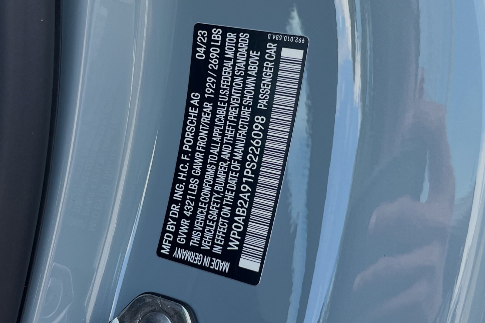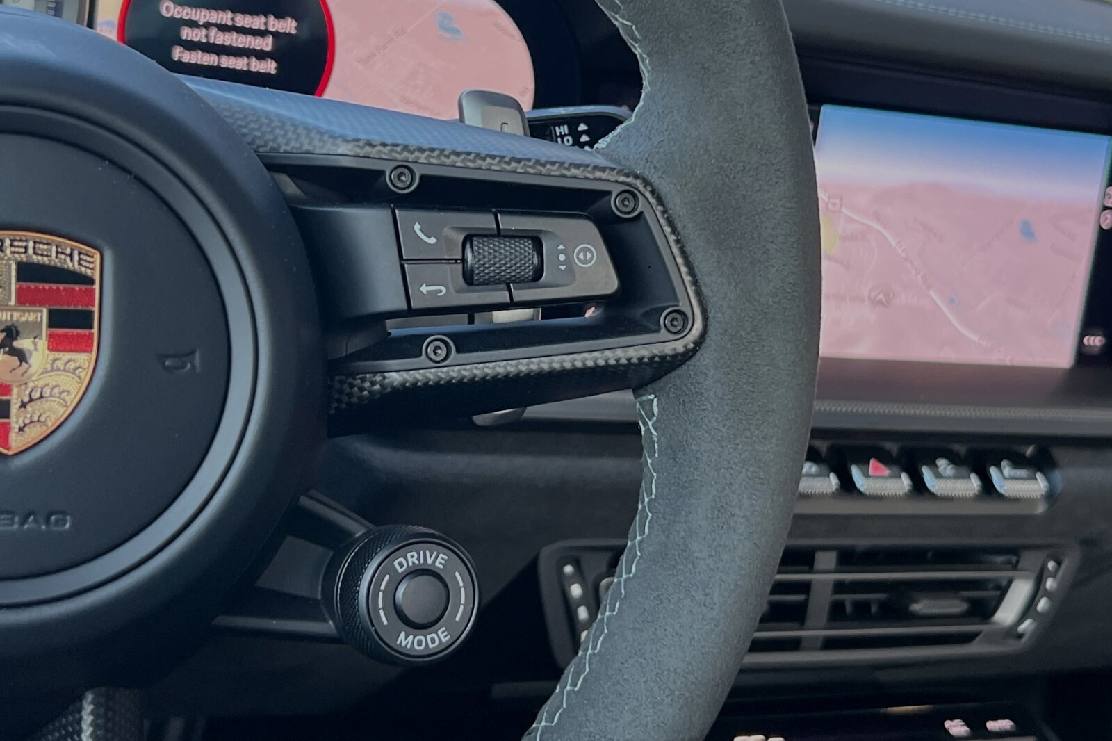 This Porsche San Luis Obispo 2023 Green Porsche 911 Dakar is well equipped and includes these features and benefits: 4-Wheel Disc Brakes, ABS brakes, Adaptive suspension, Air Conditioning, Alloy wheels, Auto-dimming door mirrors, Auto-dimming Rear-View mirror, Automatic temperature control, Brake assist, Bumpers: body-color, Delay-off headlights, Driver door bin, Driver vanity mirror, Dual front impact airbags, Dual front side impact airbags, Electronic Stability Control, Exterior Parking Camera Rear, Four wheel independent suspension, Front anti-roll bar, Front Bucket Seats, Front Center Armrest, Front dual zone A/C, Front reading lights, Fully automatic headlights, Garage door transmitter: HomeLink, Heated door mirrors, Illuminated entry, Low tire pressure warning, Navigation system: Porsche Communication Management (PCM), Occupant sensing airbag, Outside temperature display, Overhead airbag, Overhead console, Passenger door bin, Passenger vanity mirror, Porsche Communication Management, Power door mirrors, Power driver seat, Power passenger seat, Power steering, Power windows, Radio data system, Rain sensing wipers, Rear anti-roll bar, Rear fog lights, Rear window defroster, Remote keyless entry, Security system, Speed control, Spoiler, Sport steering wheel, Steering wheel mounted audio controls, Tachometer, Telescoping steering wheel, Tilt steering wheel, Traction control, Trip computer, and Variably intermittent wipers.