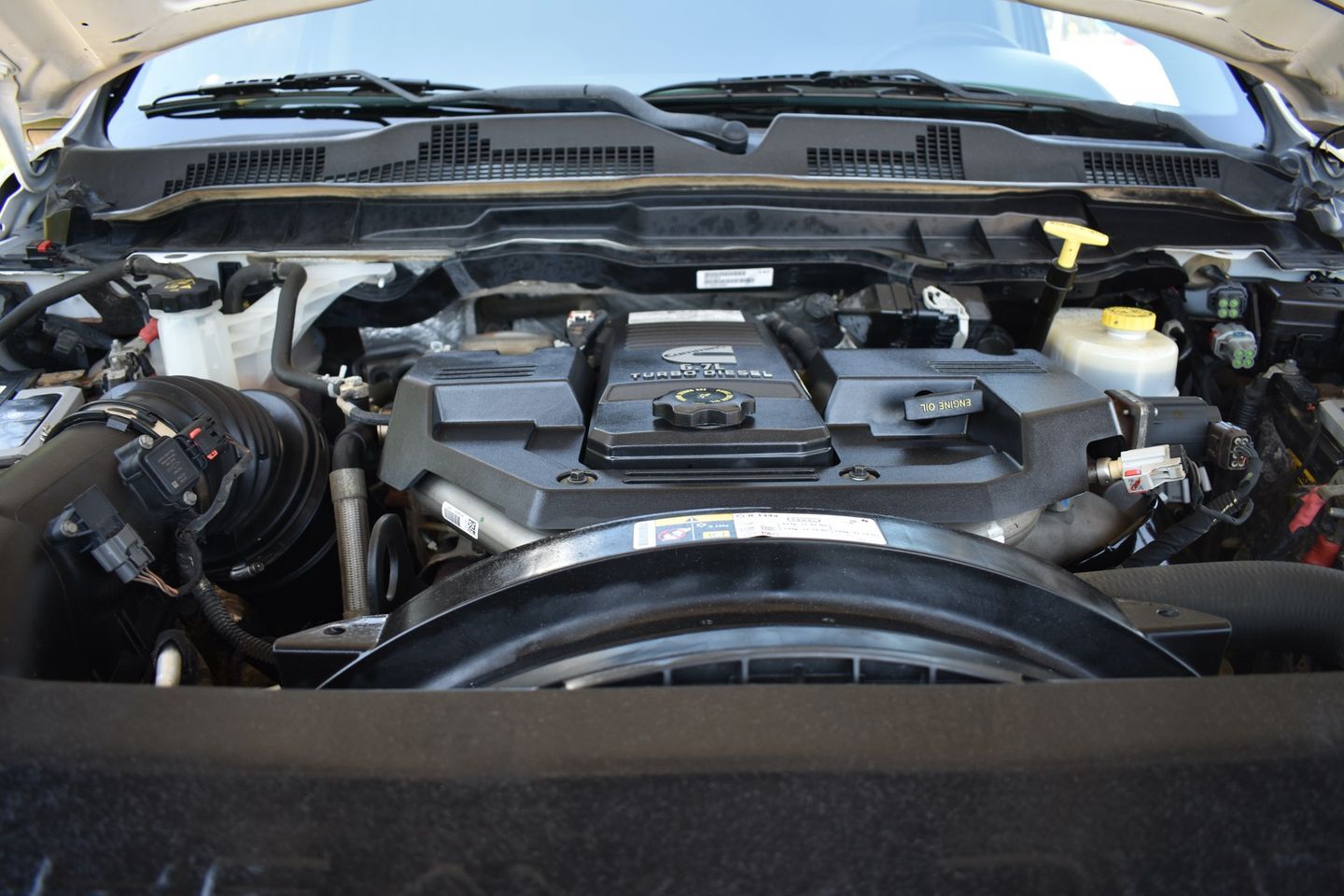 You are looking at a 2018 Dodge Ram 3500 Crew Cab 4x4. It is powered with a 6.7L Cummins Diesel I-6 and Aisin automatic transmission. It is equipped with power trailer mirrors, power windows, power locks, tilt, cruise, receiver hitch, gooseneck hitch, and am/fm radio. Also included are the owner's manuals and one keyless remote.