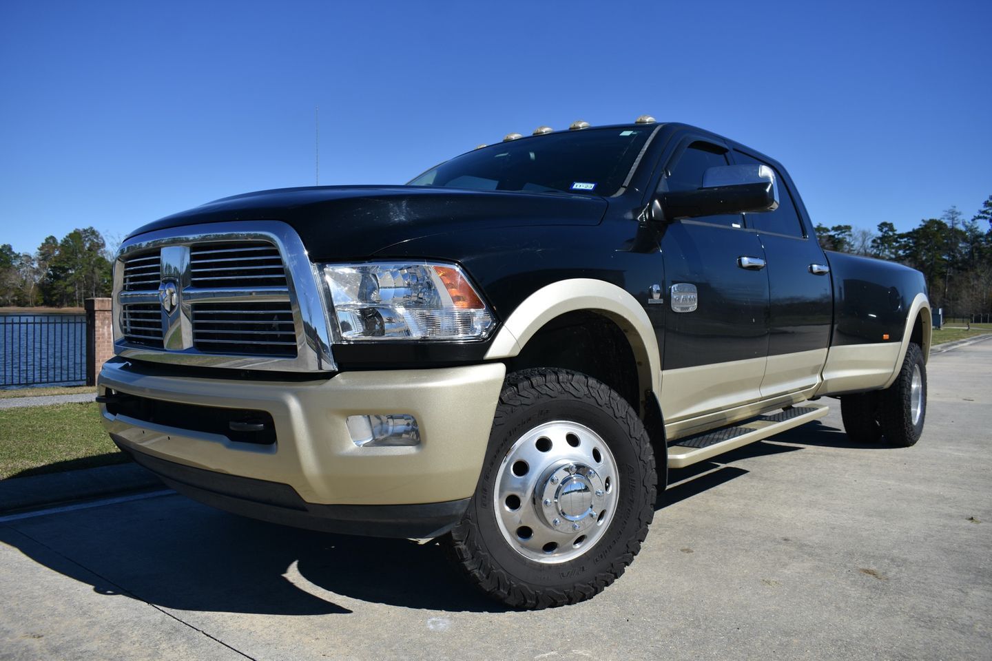 You are looking at a 2012 Dodge Ram 3500 Crew Cab Laramie Longhorn 4X4. It is powered with a 6.7L Cummins Diesel I-6 and six speed automatic transmission. It is equipped with dual power heated/cooled seats, power sunroof, power trailer mirrors, power windows, power locks, tilt, cruise, receiver hitch, spray in bed liner, and am/fm radio with factory navigation . Also included are the owner's manuals and one keyless remote.