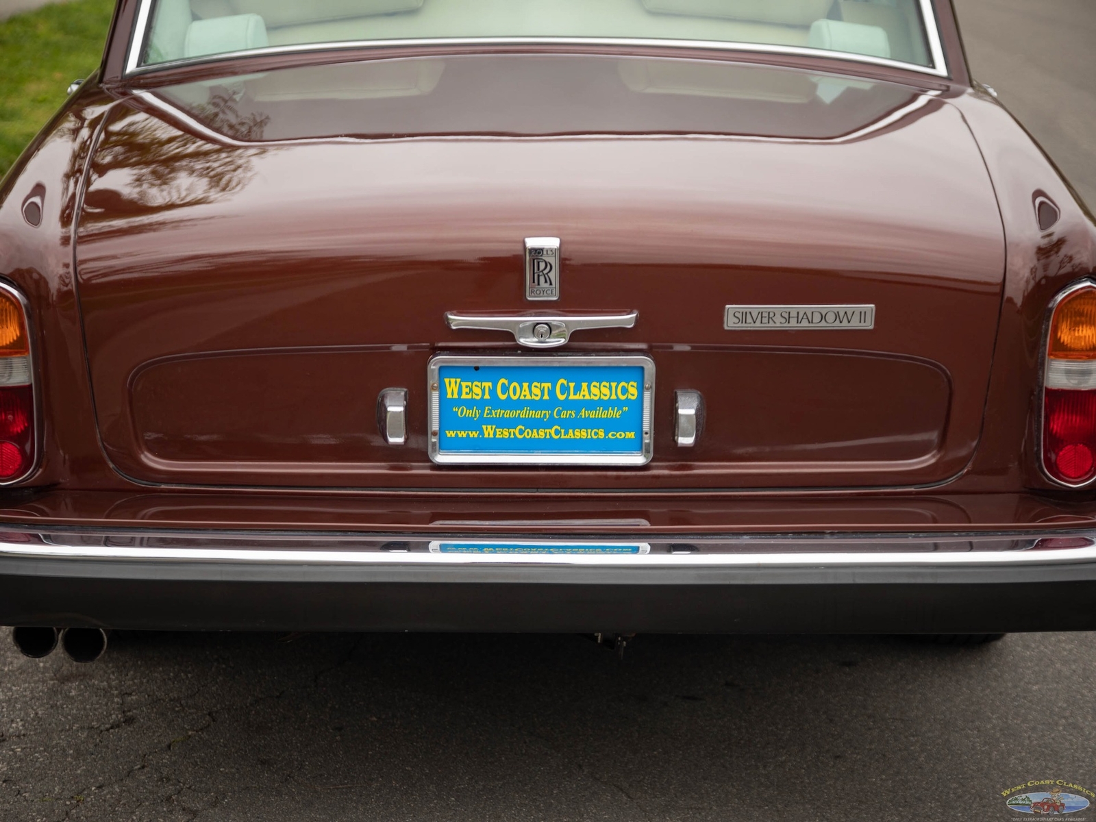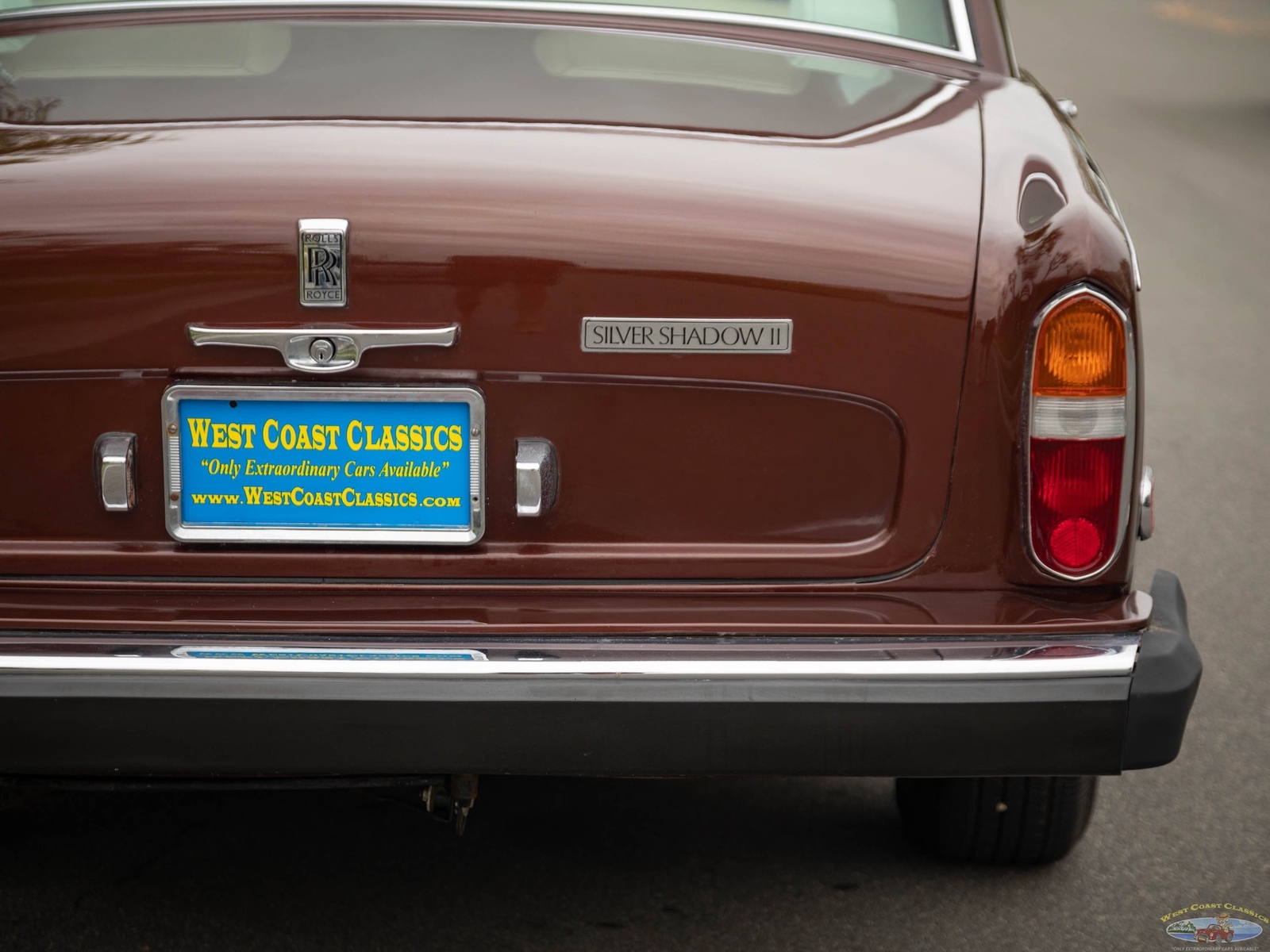 West Coast Classics are proud to present an exceptionally well maintained and very rare and collectible example of this original owner 1979 Rolls Royce Silver Shadow II with only 45K original miles and finished in a gorgeous and very striking 'Horse Chestnut Metallic' (9510315) factory color paint with painted pin stripes and with a beautiful all original 'Beige' (VM3234) Connolly leather hides interior and matching carpeting with original factory sheepskin rugs and footrests!