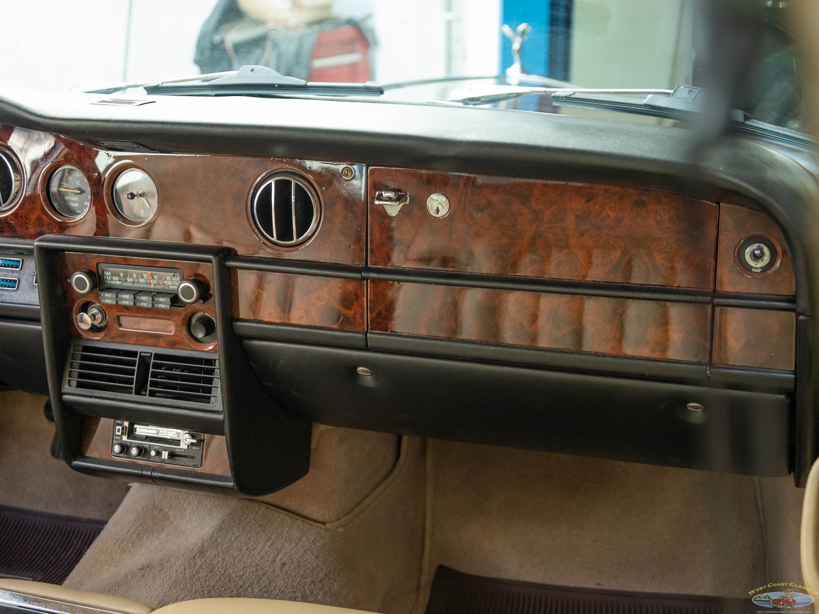 The paintwork is in superb condition and the chrome-work, including the Rolls Royce grille and both bumpers, is also in absolutely outstanding condition. The Tan leather interior is virtually flawless and in truly superb all original condition with the original mohair headliner is also in exceptional condition. The original and magnificent burled walnut woodwork is also in very fine condition throughout and all the power options and electric windows are working as they should, as is the air conditioning.